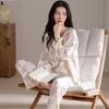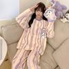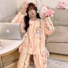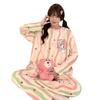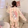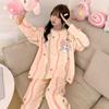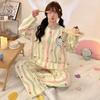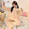 Pijama Nuevo de Primavera y Otoño para Mujer Algodón Puro Manga Larga Pantalón Largo Conjunto Dulce Estudiante Cuello Redondo Pulóver Ropa para el Hogar Se Puede Usar Afuera
