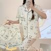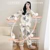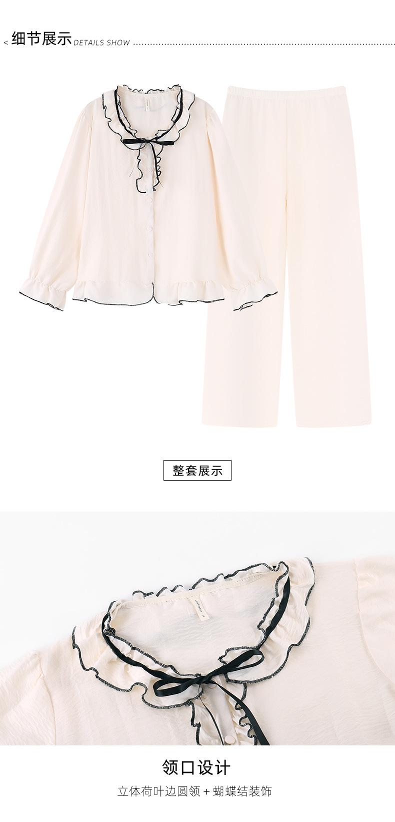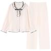 Pijama estilo crema para mujer, conjunto de dos piezas de primavera y otoño, cárdigan con lazo, floral, pantalones largos, se puede usar fuera, ropa de casa delgada