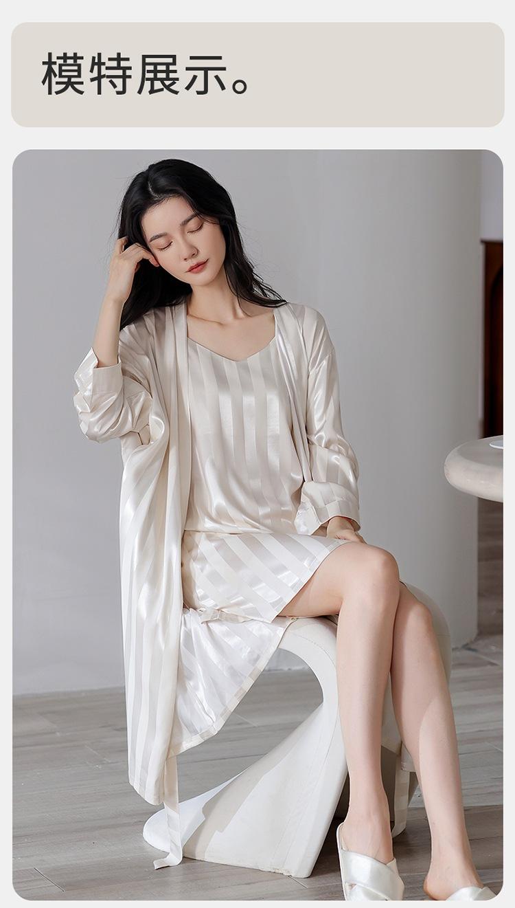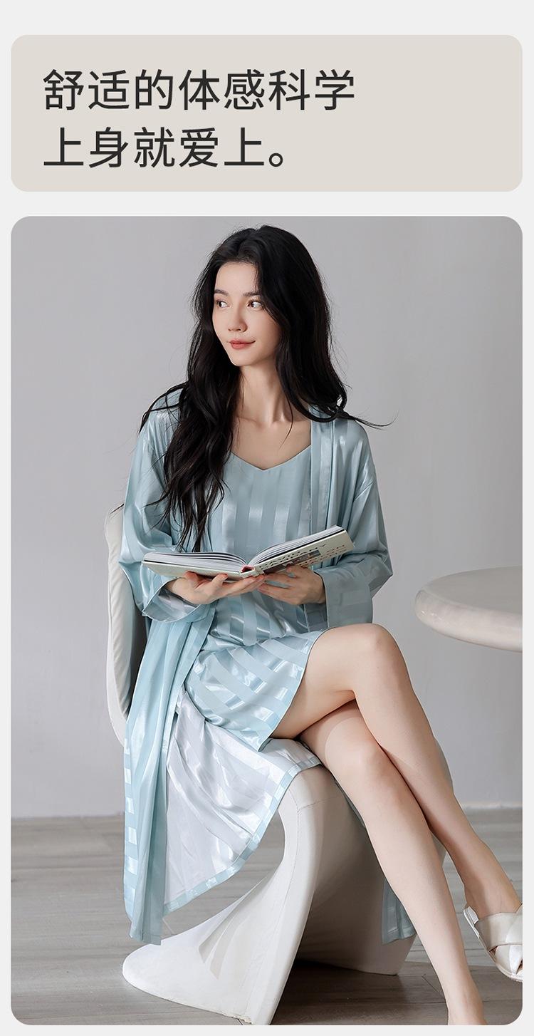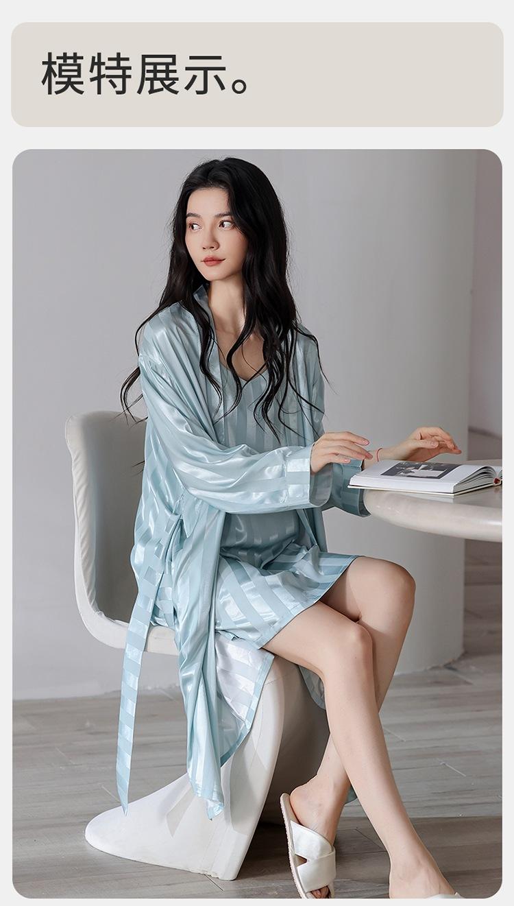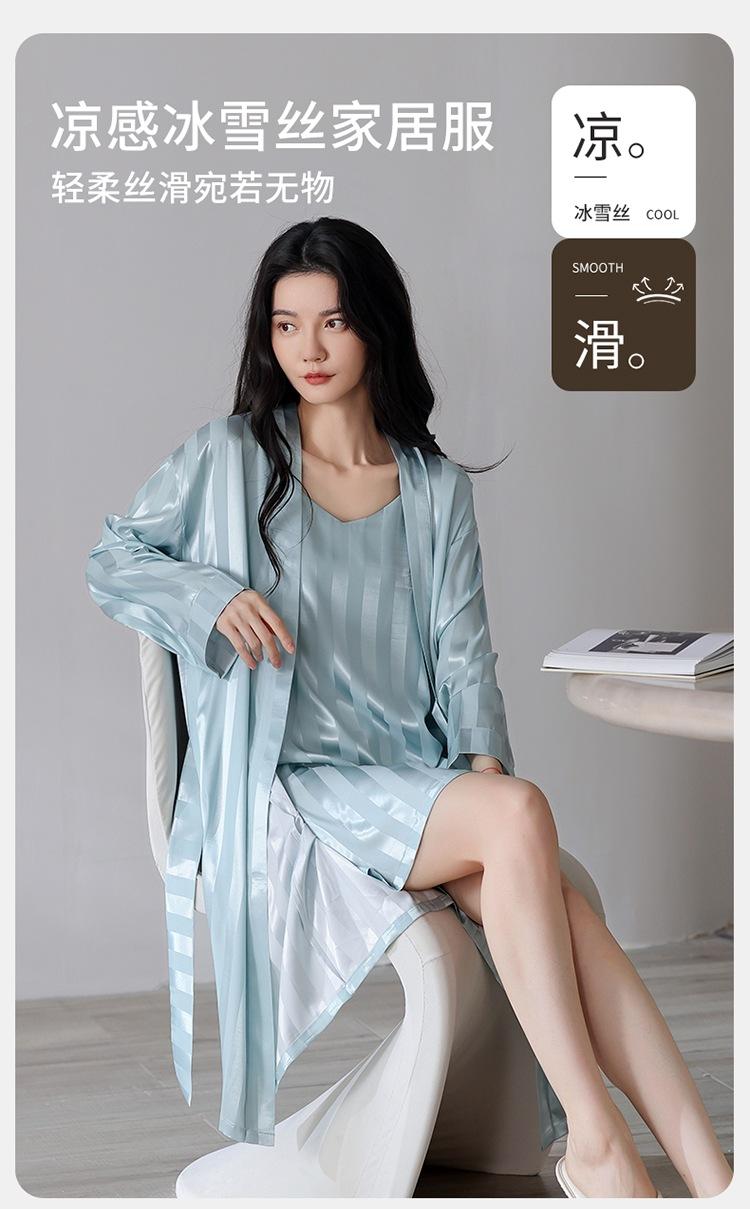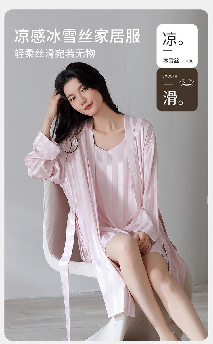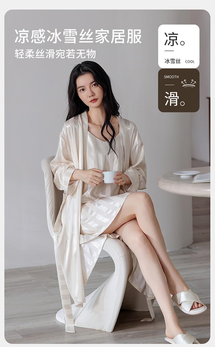 Entrega física al por mayor en el acto Camisola de seda de hielo camisón bata de baño para mujer otoño nuevo camisón de manga larga sensación fresca ropa para el hogar