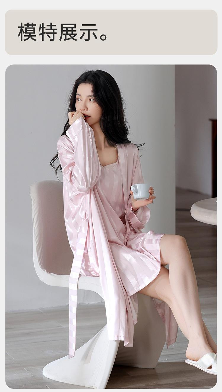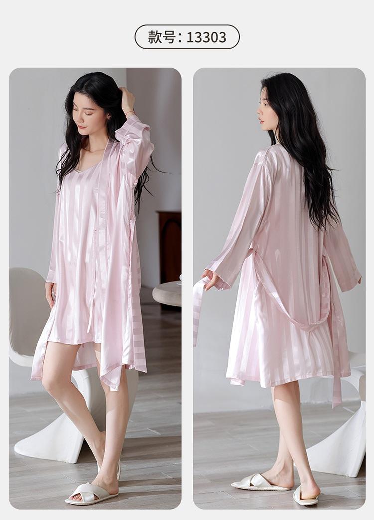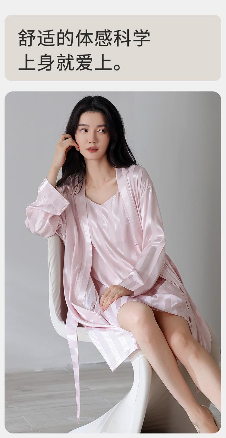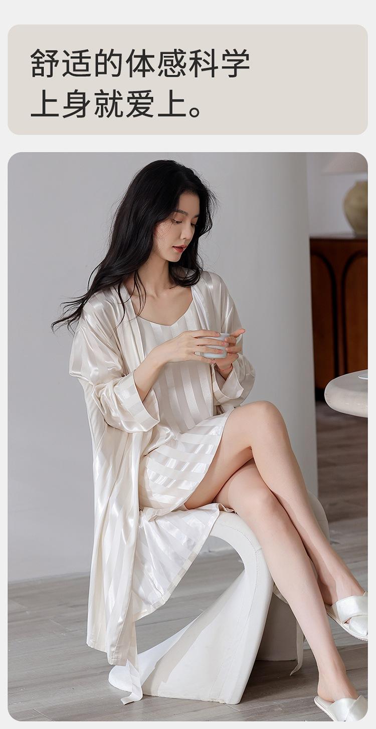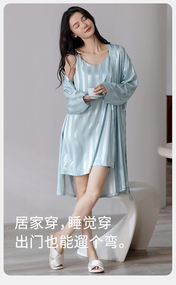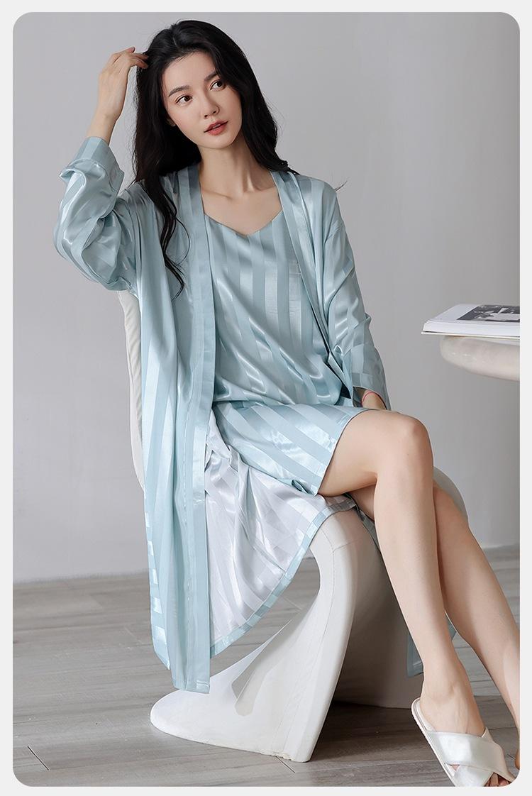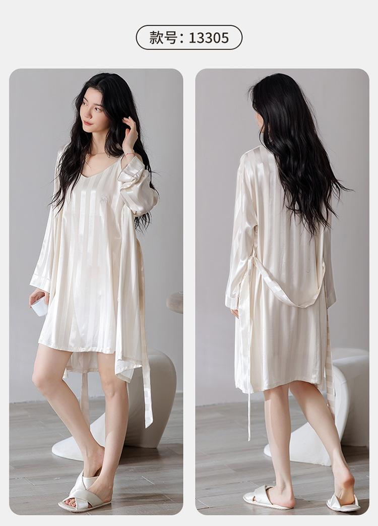 Entrega física al por mayor en el acto Camisola de seda de hielo camisón bata de baño para mujer otoño nuevo camisón de manga larga sensación fresca ropa para el hogar