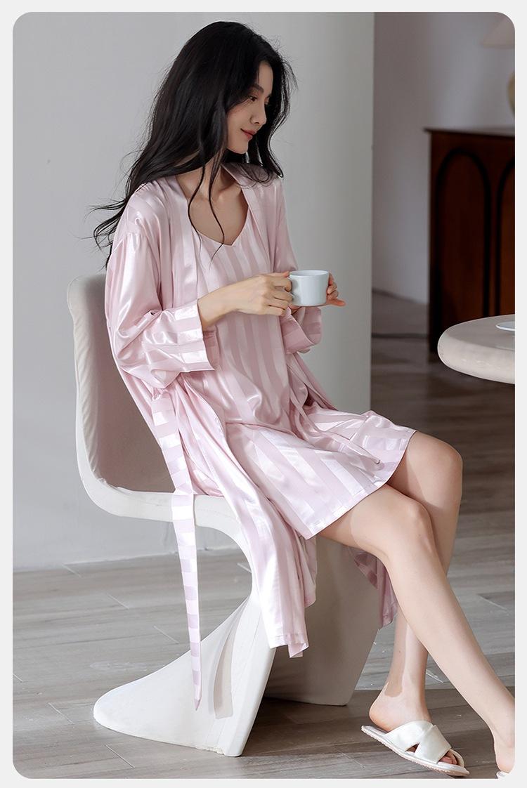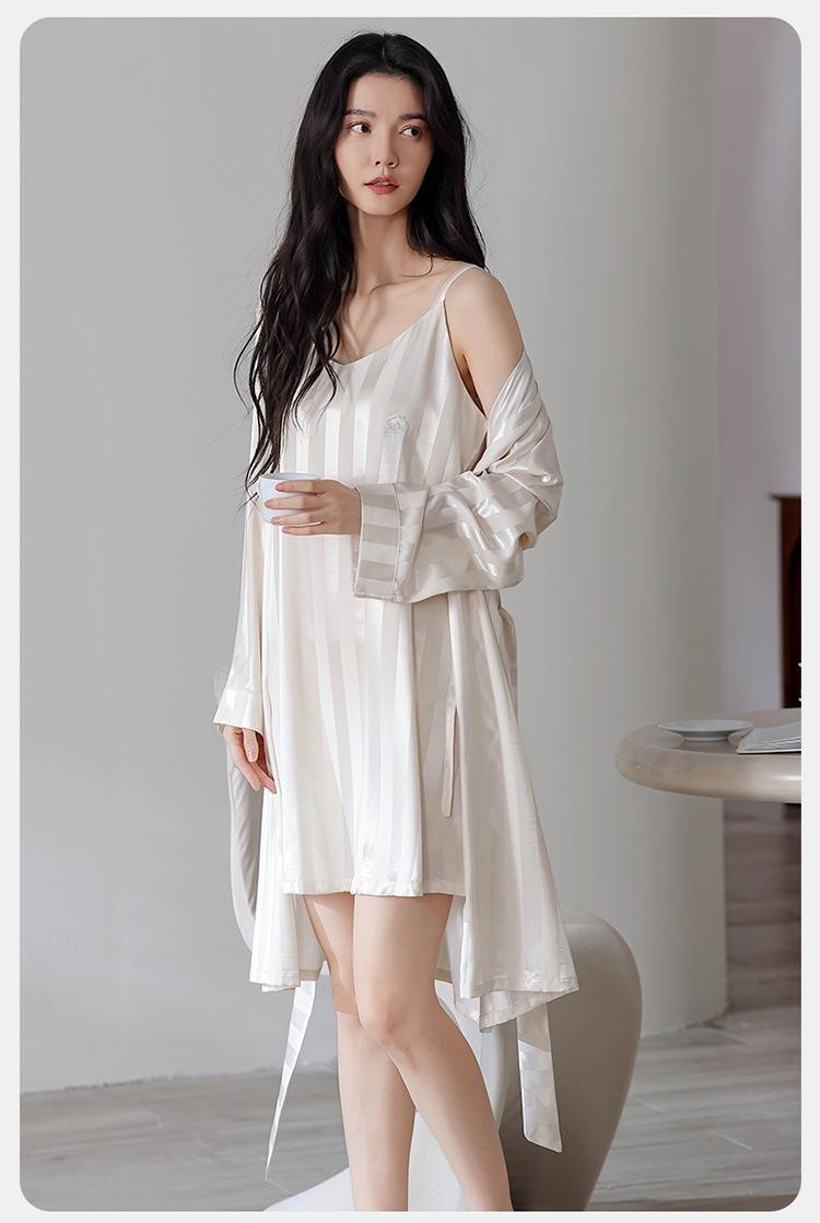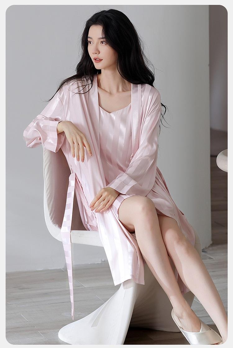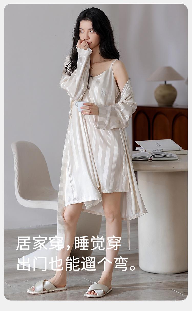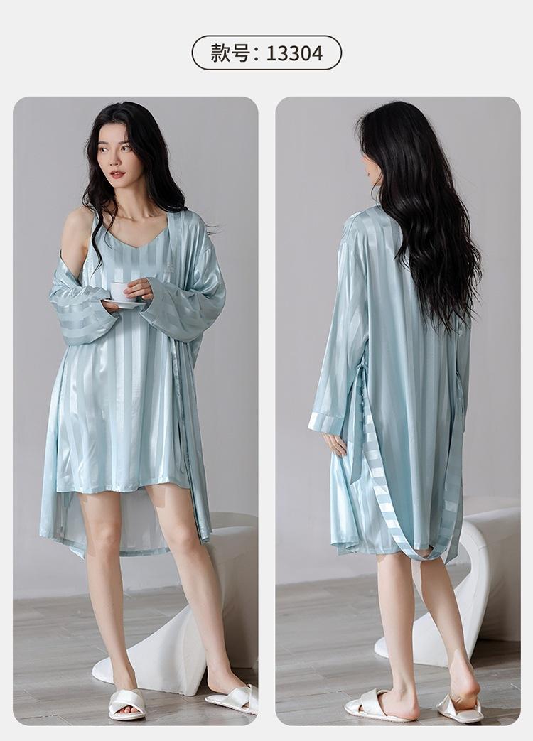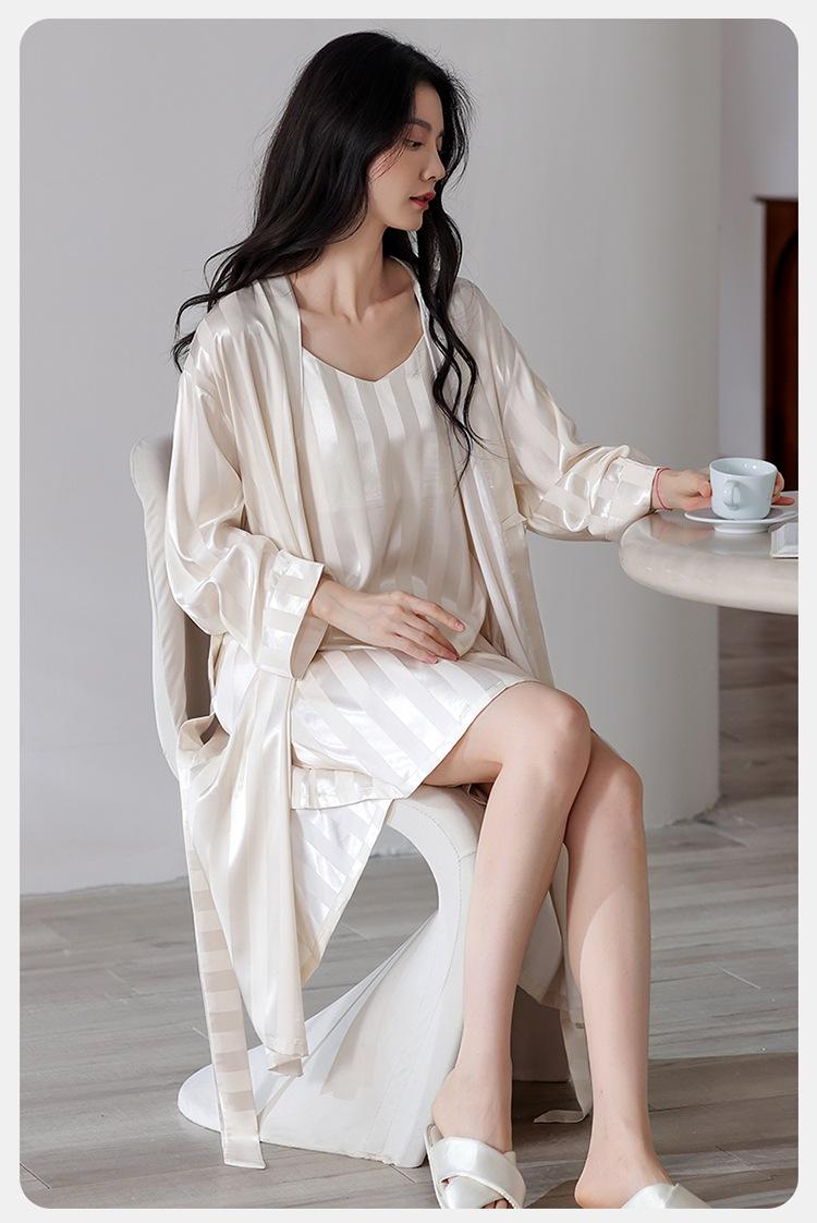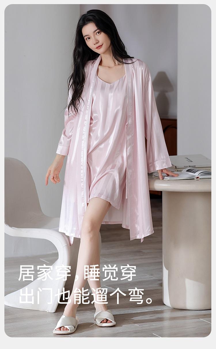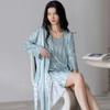 Entrega física al por mayor en el acto Camisola de seda de hielo camisón bata de baño para mujer otoño nuevo camisón de manga larga sensación fresca ropa para el hogar