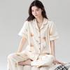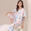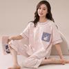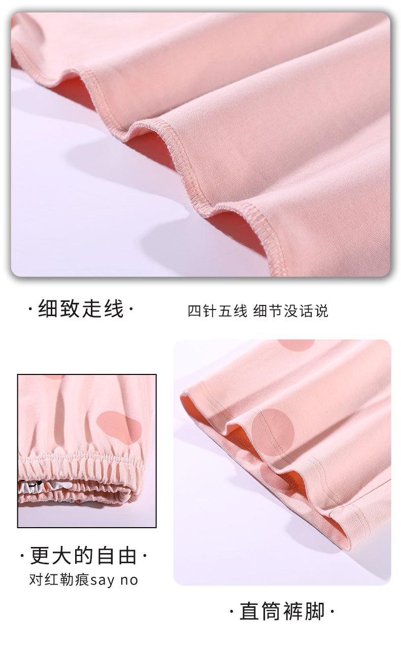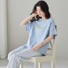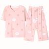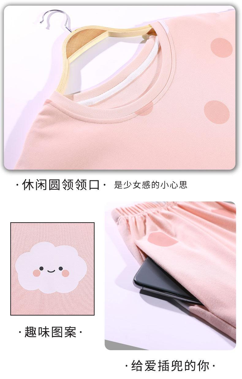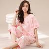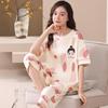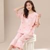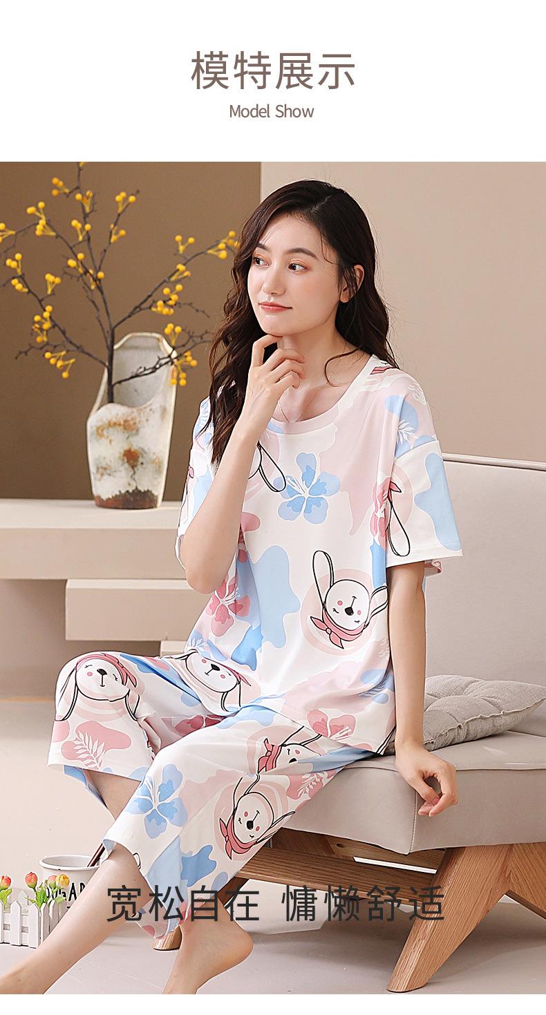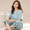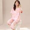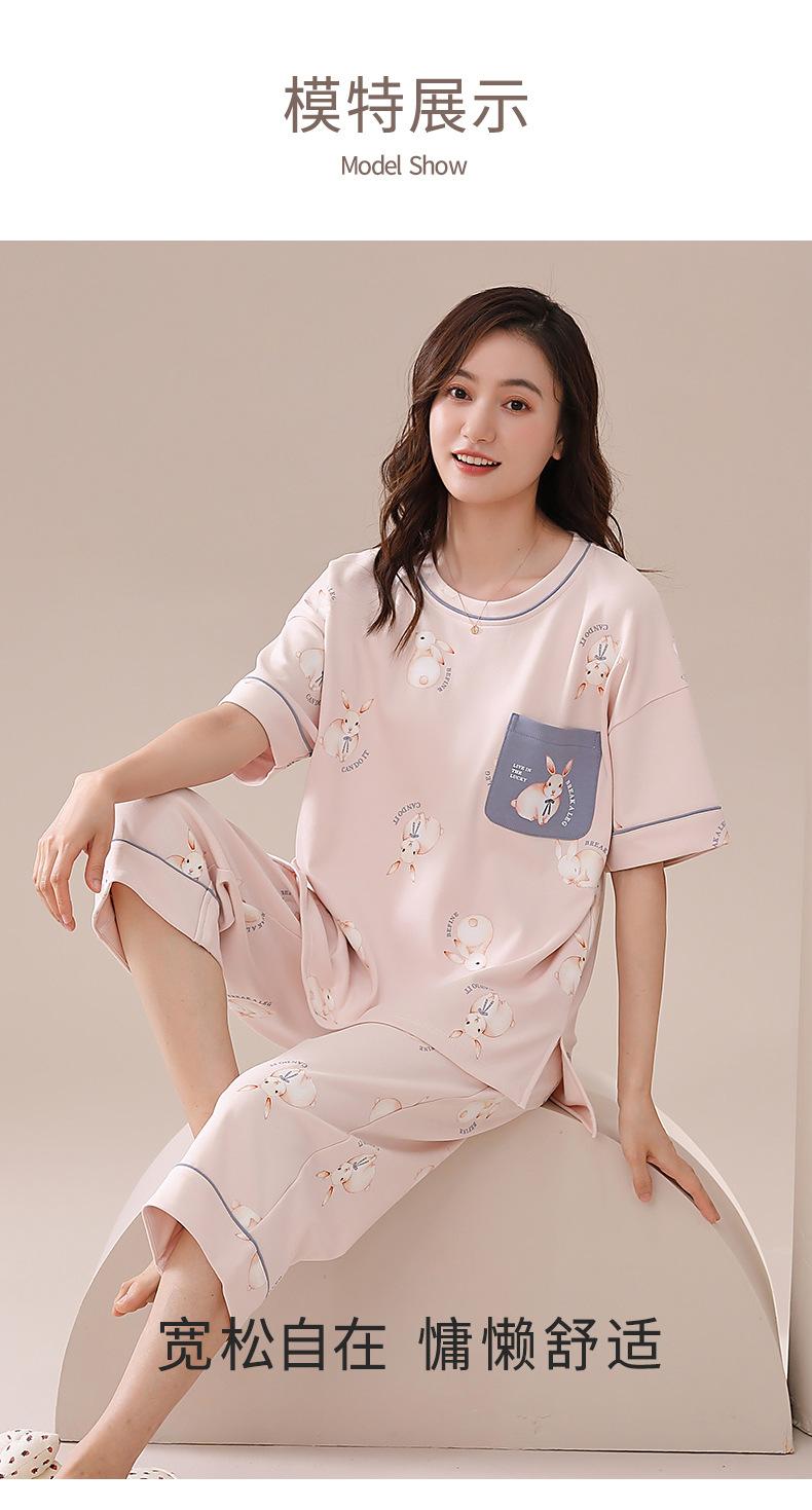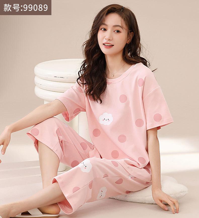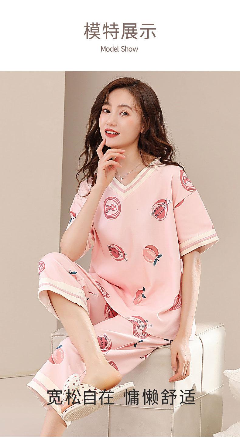 Pijama de Verano para Mujer Algodón Manga Corta Pantalón Capri Cuello Redondo Jersey Ropa para el Hogar Algodón Ropa Exterior Traje Dulce Lindo