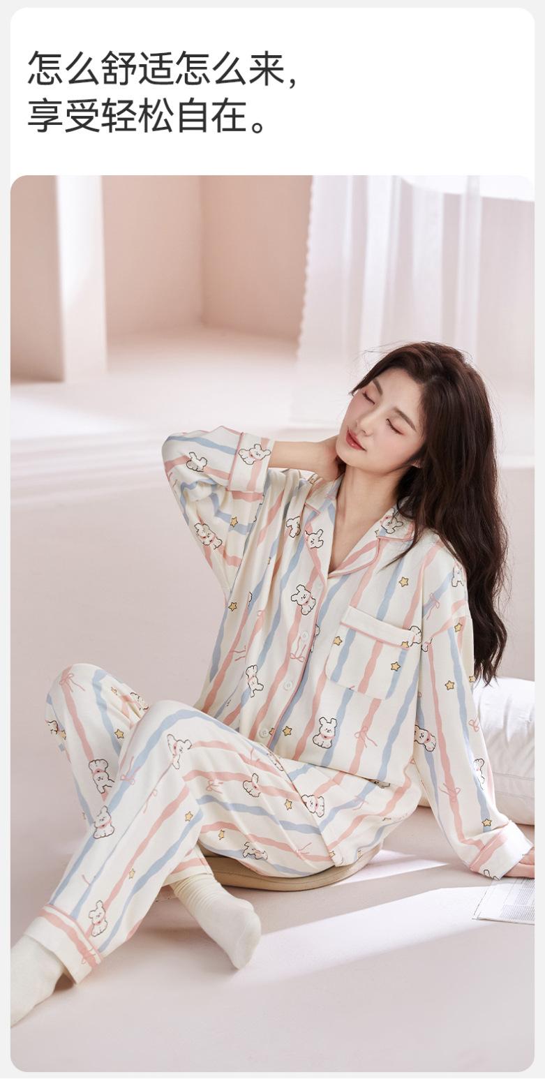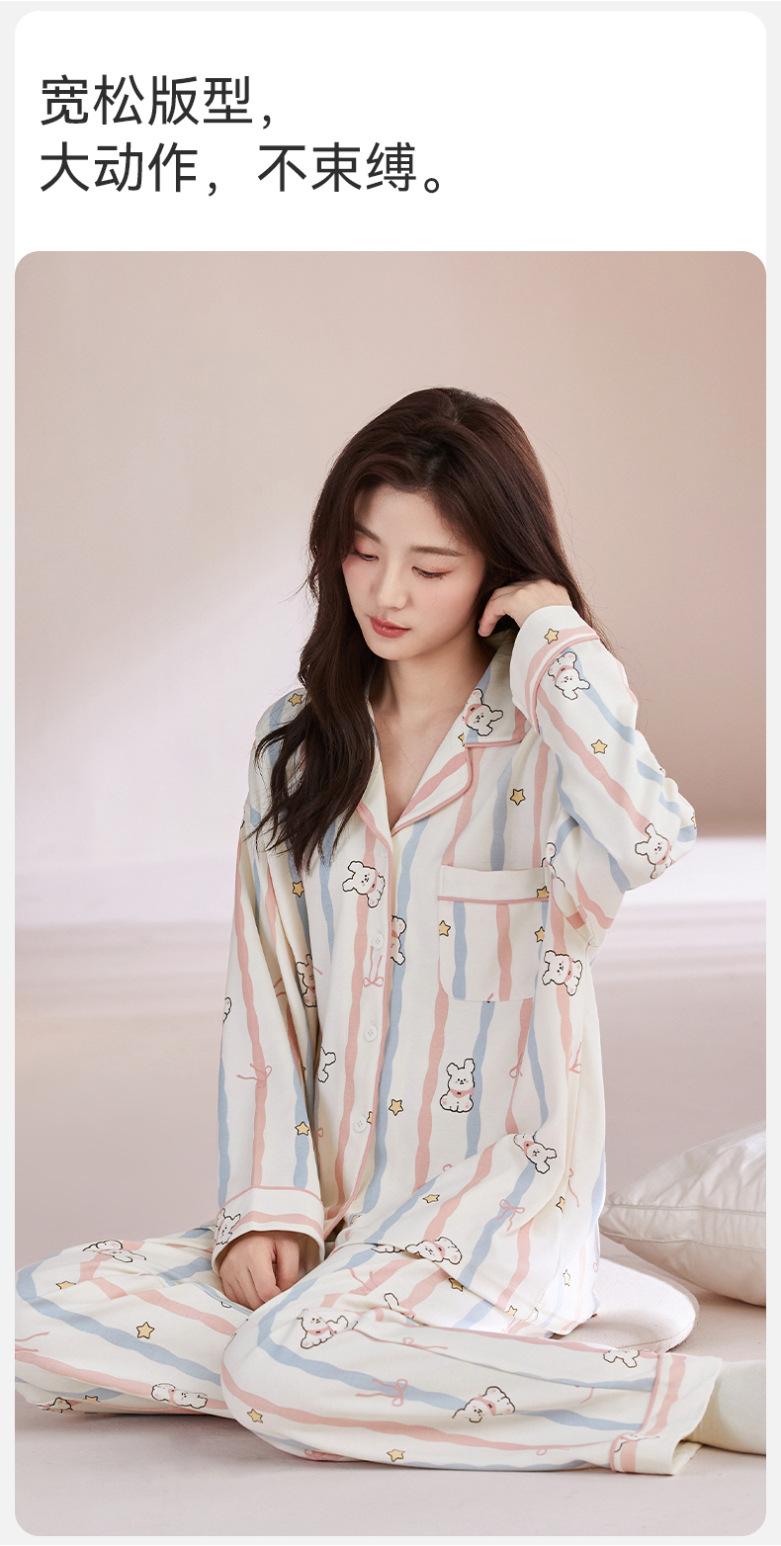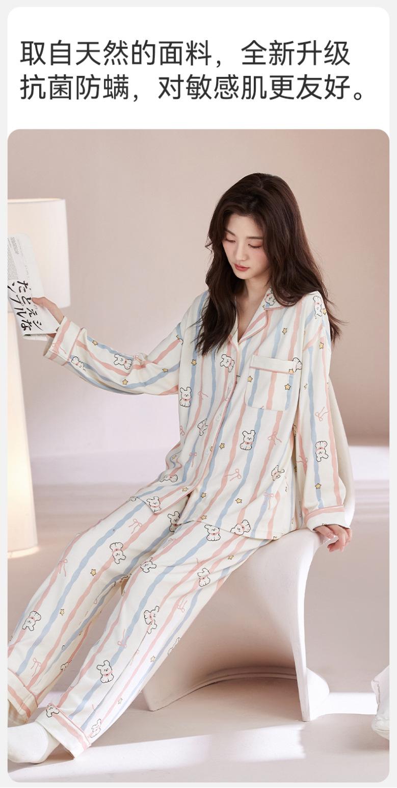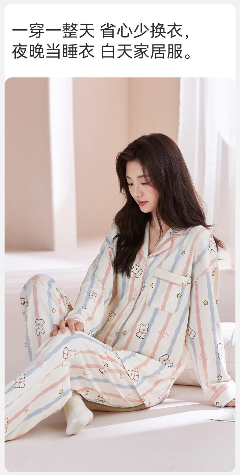 Pijama de Algodón Puro para Mujer Primavera y Otoño Manga Larga Nuevo 2025 Invierno Simple Holgado Talla Extra Se Puede Usar Fuera Ropa de Casa