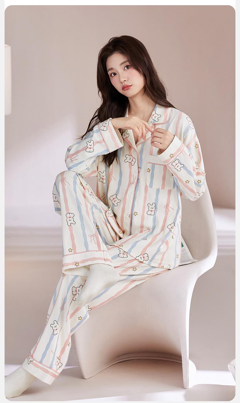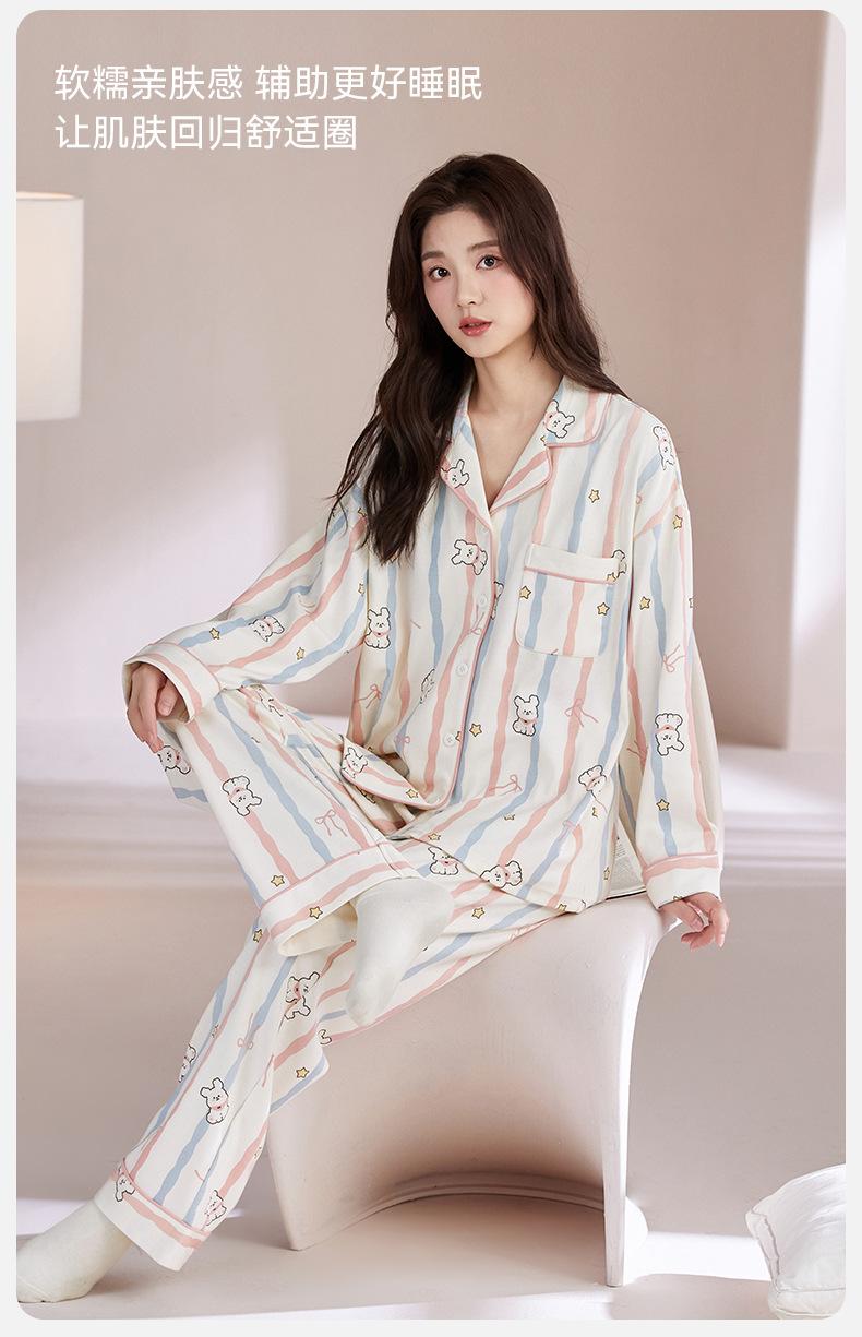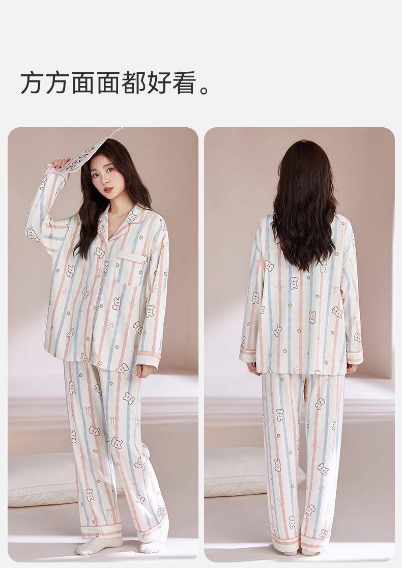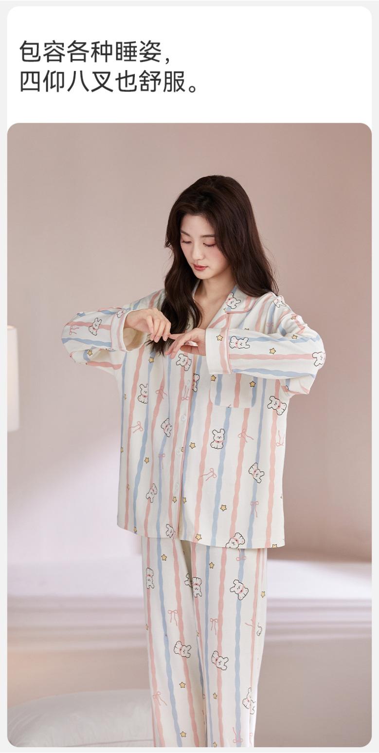 Pijama de Algodón Puro para Mujer Primavera y Otoño Manga Larga Nuevo 2025 Invierno Simple Holgado Talla Extra Se Puede Usar Fuera Ropa de Casa