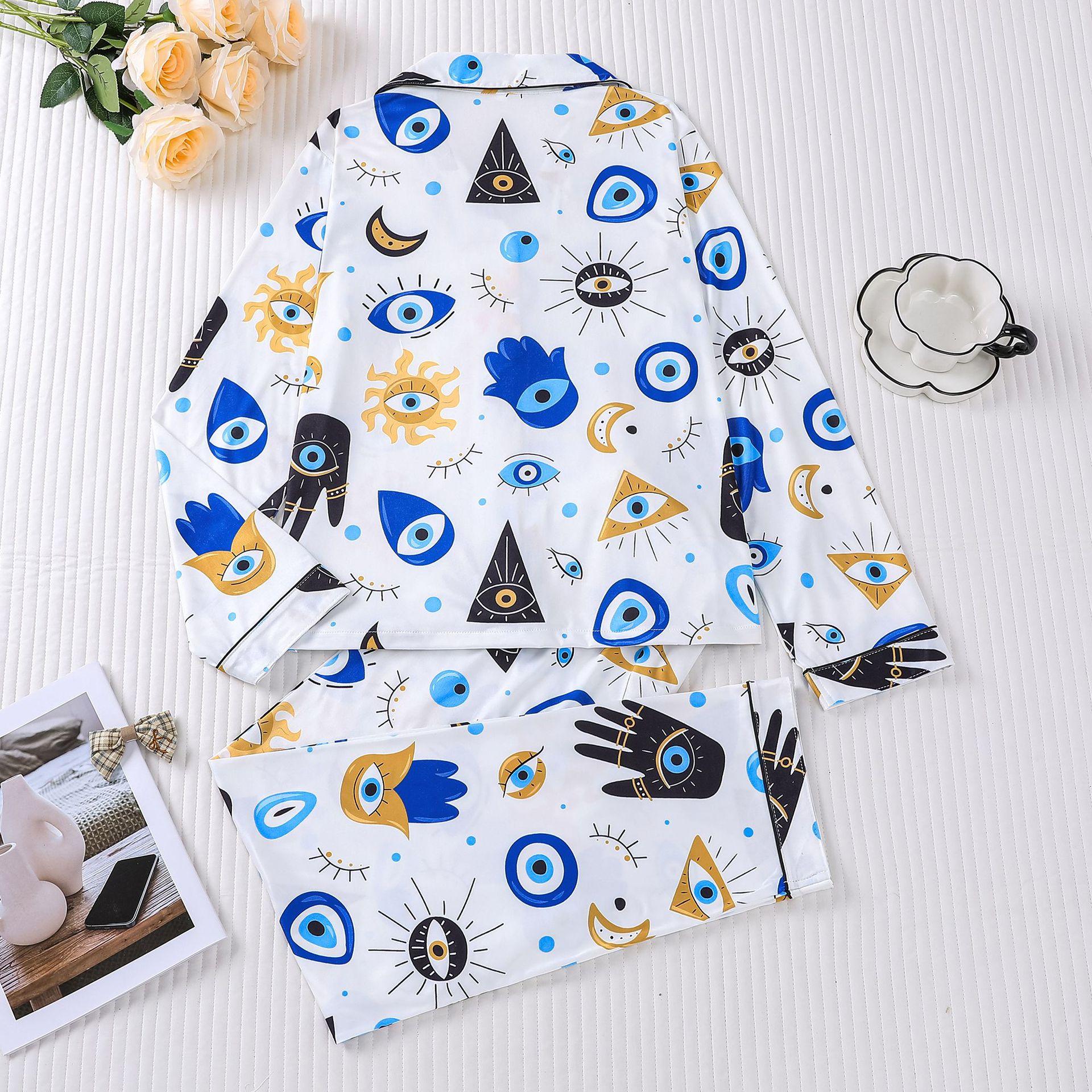 Pijama Nuevo para Mujer Estampado Cuello Vuelto Manga Larga Pantalón Largo Ropa de Casa Europea y Americana pijama mujer