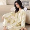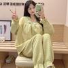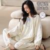 Conjunto de Pijama Casual Cómodo para Mujer Algodón Licra Otoño Jersey Pantalón Largo Manga Larga Holgado Conjunto de Ropa de Casa Mujer