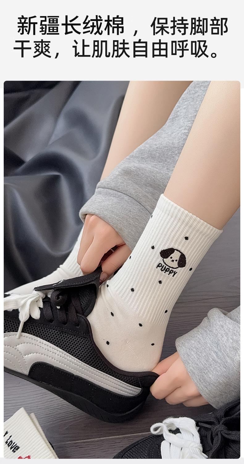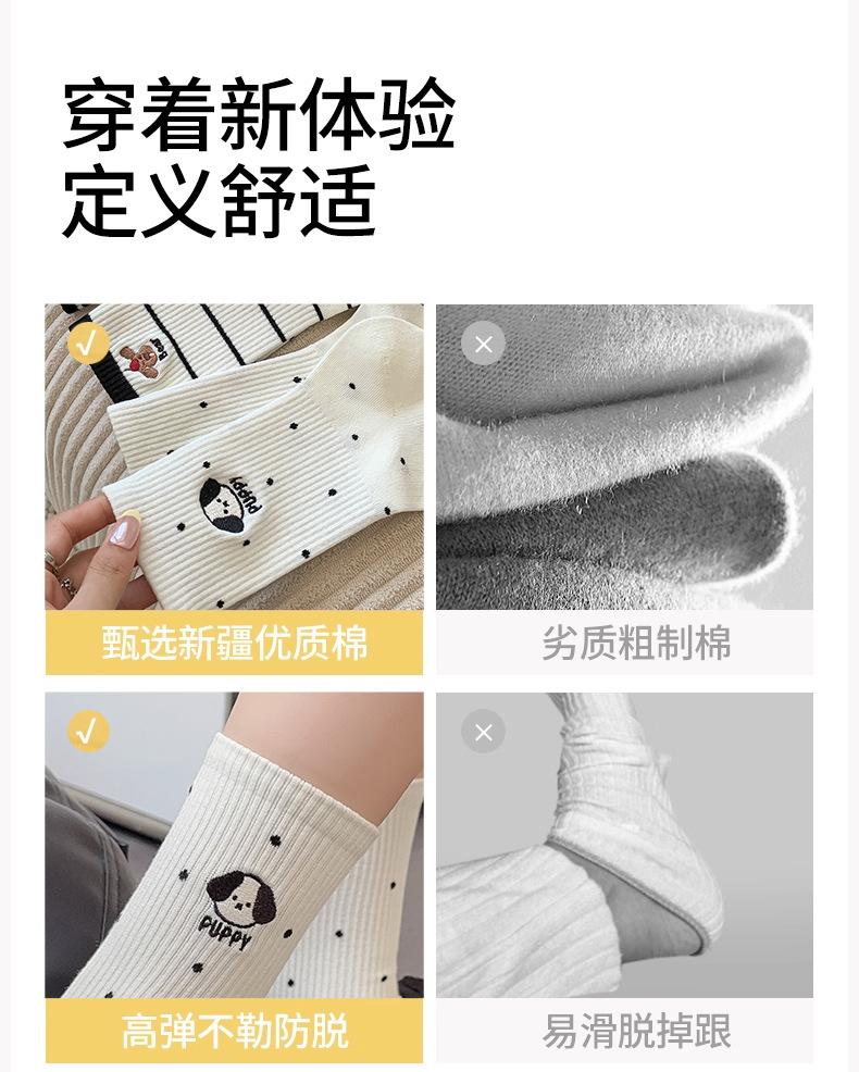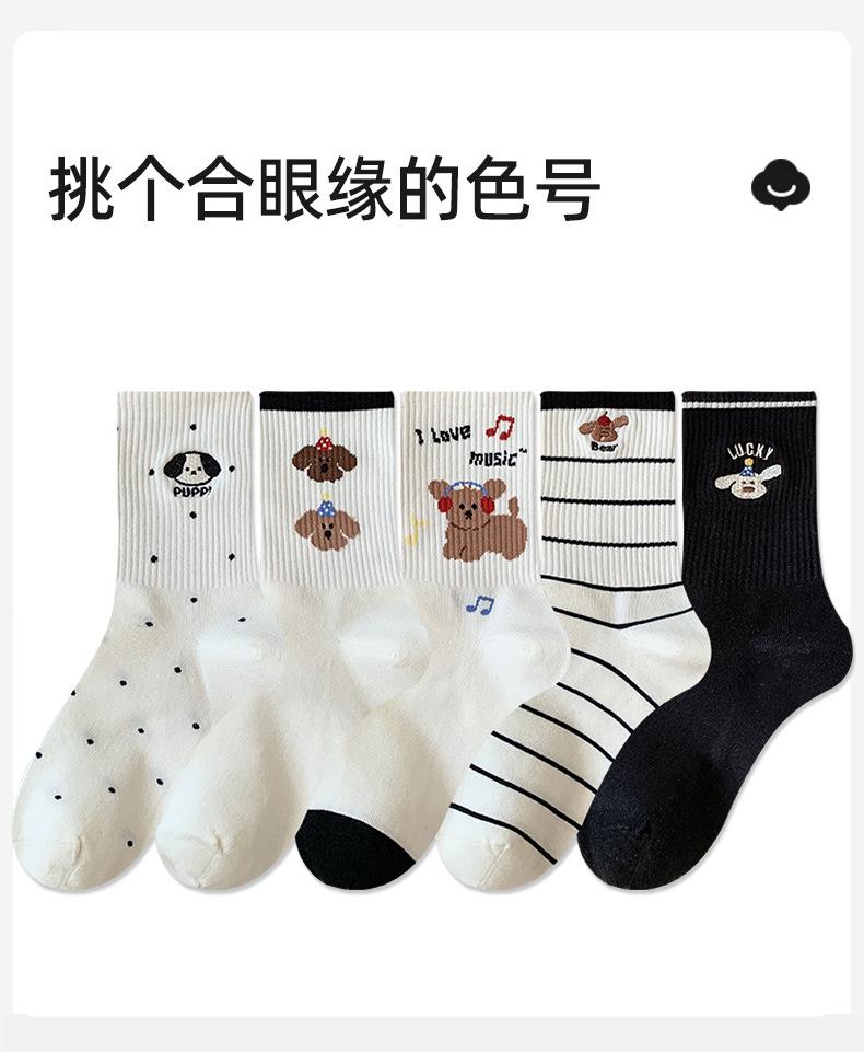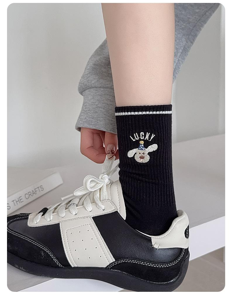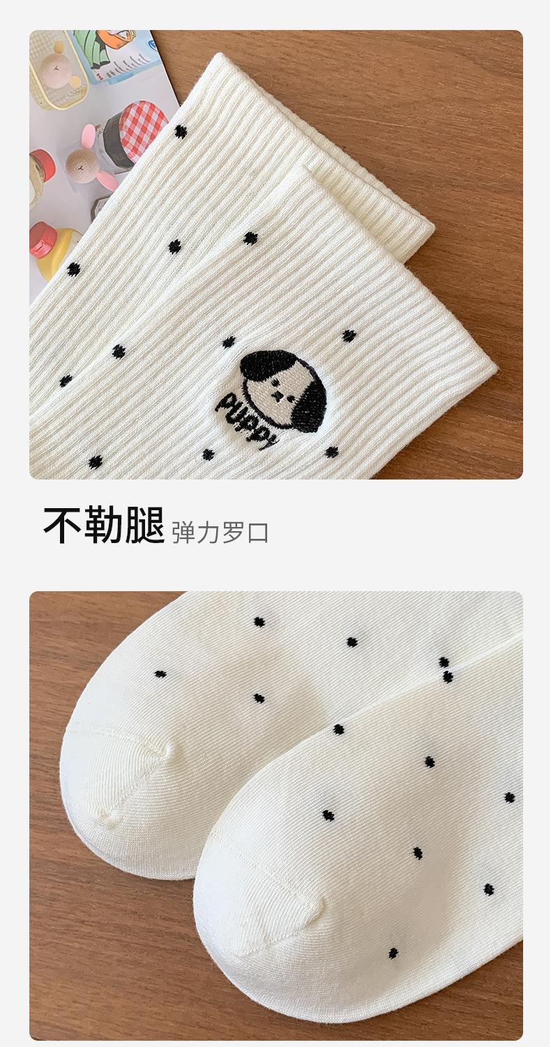 Calcetines de Media Caña para Mujer de Algodón Puro Estilo Coreano Estilo Academia Rayados Lunares Bordado Anime de Dibujos Animados Cachorro Sin Costuras Arrugados