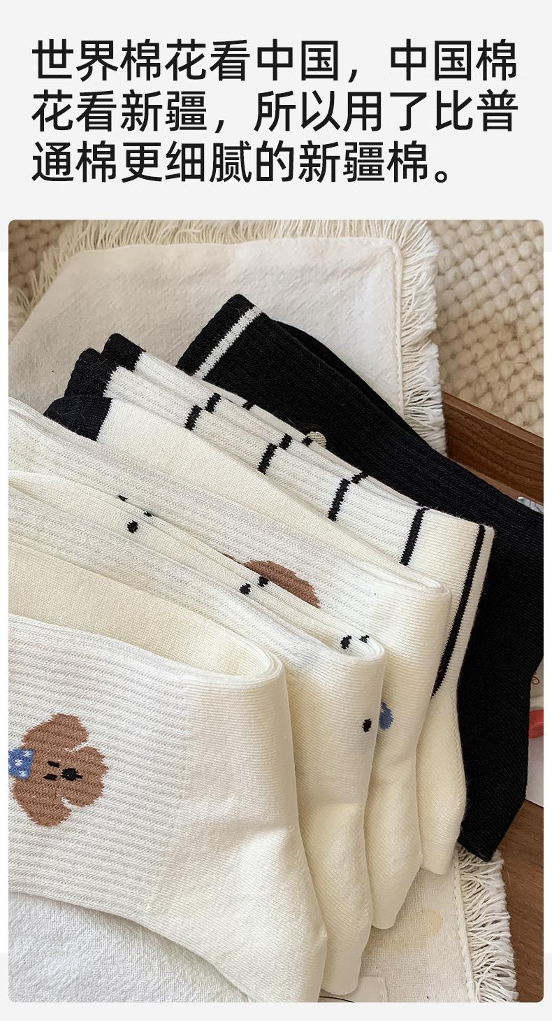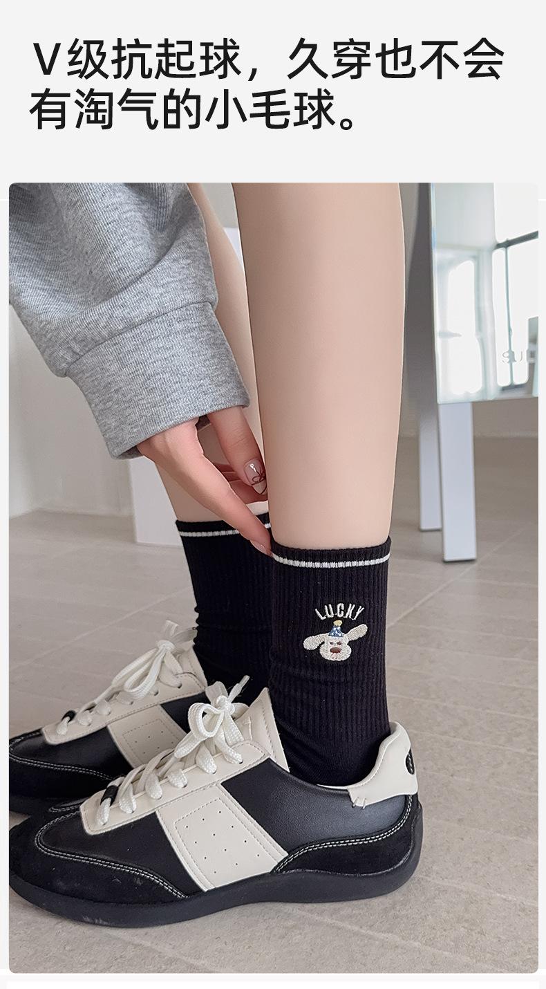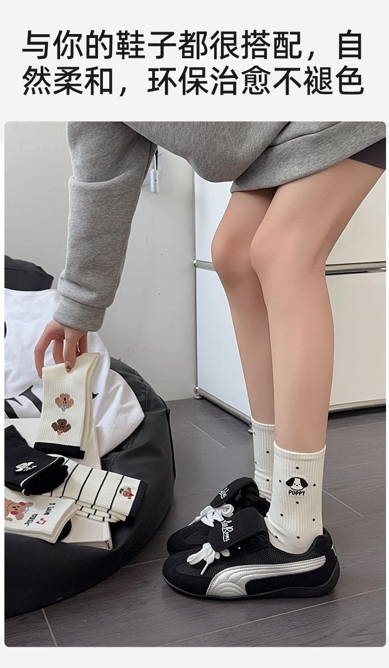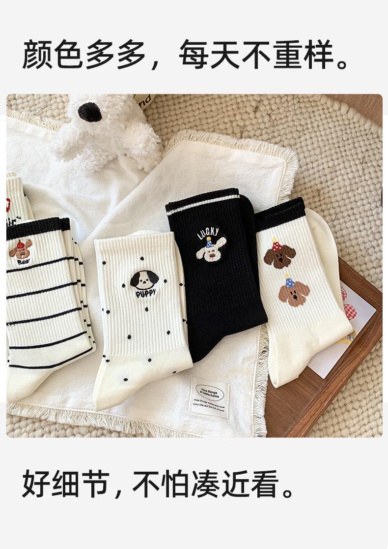 Calcetines de Media Caña para Mujer de Algodón Puro Estilo Coreano Estilo Academia Rayados Lunares Bordado Anime de Dibujos Animados Cachorro Sin Costuras Arrugados