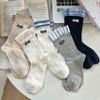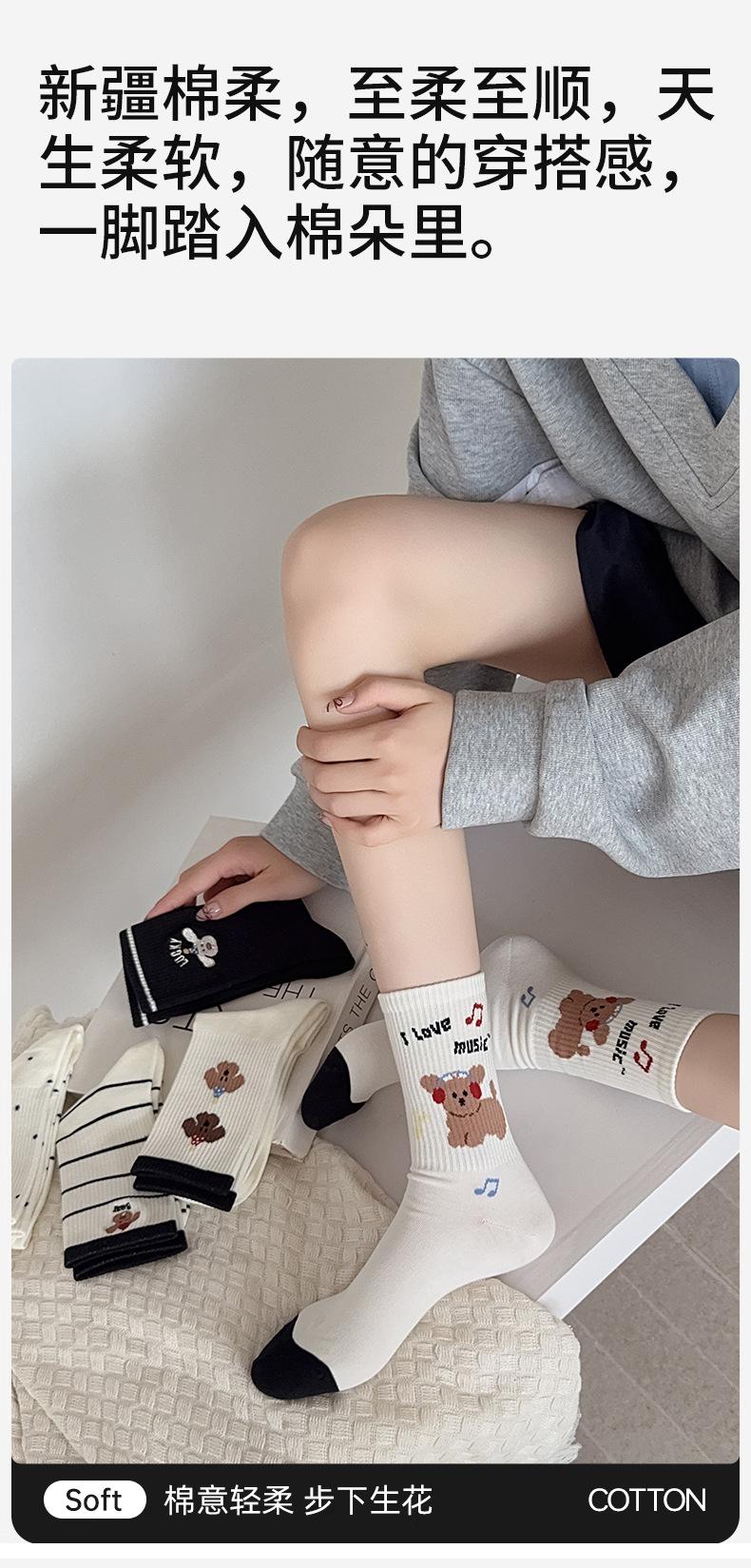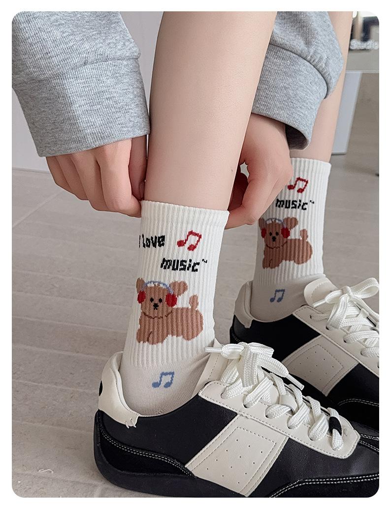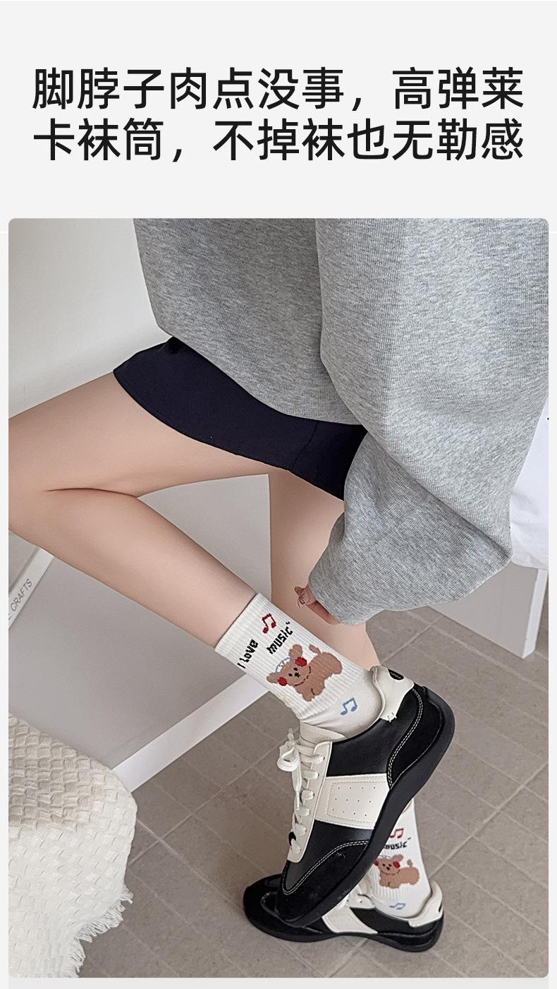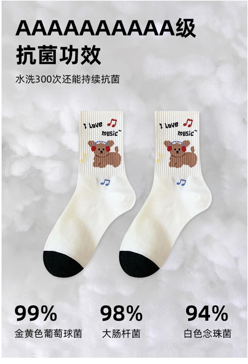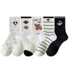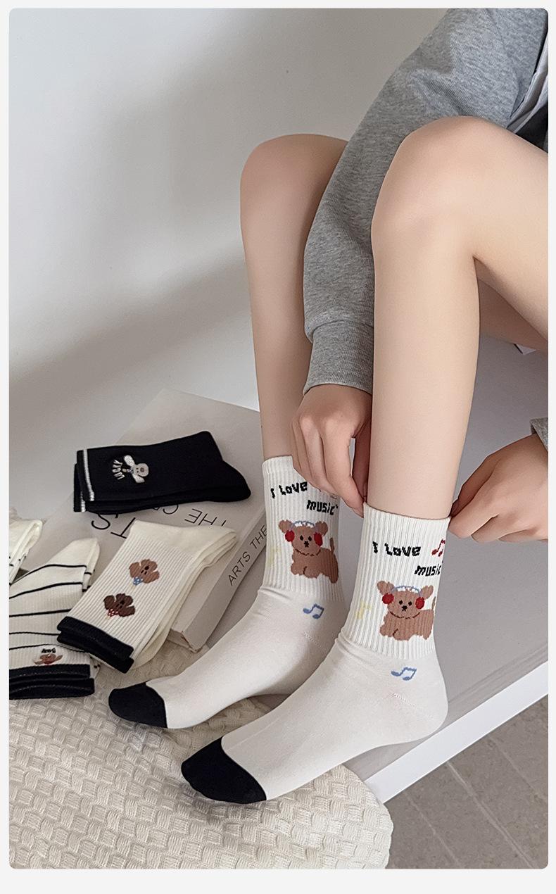 Calcetines de Media Caña para Mujer de Algodón Puro Estilo Coreano Estilo Academia Rayados Lunares Bordado Anime de Dibujos Animados Cachorro Sin Costuras Arrugados