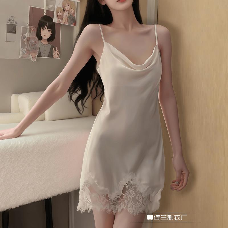 Pijama Sexy con Copas Acolchadas Camisola de Encaje Camisón Seda de Hielo Deseo Puro Pijama Sexy Mujer Adelgazante 357
