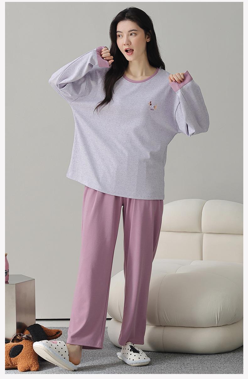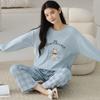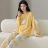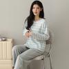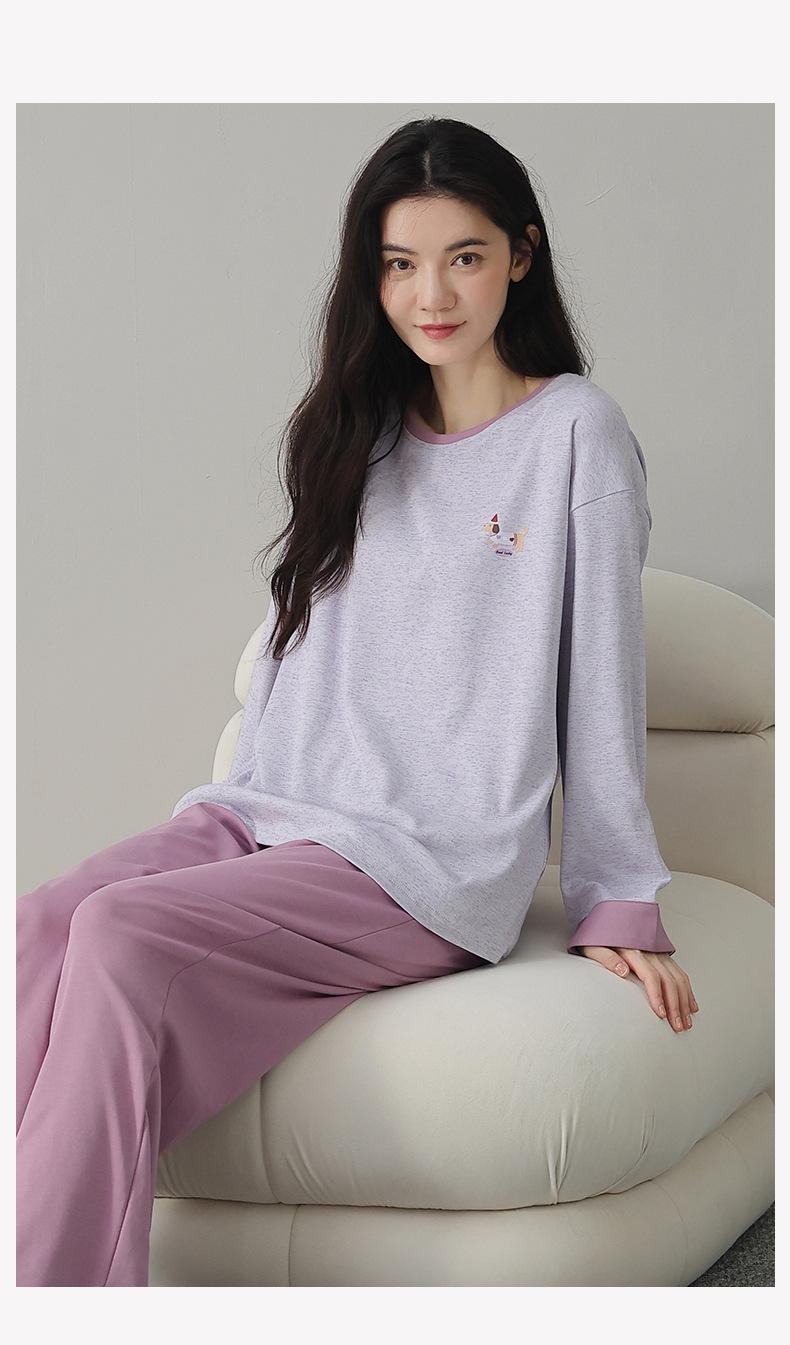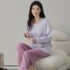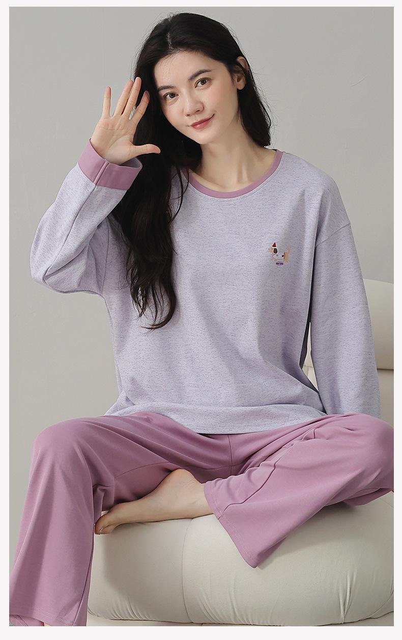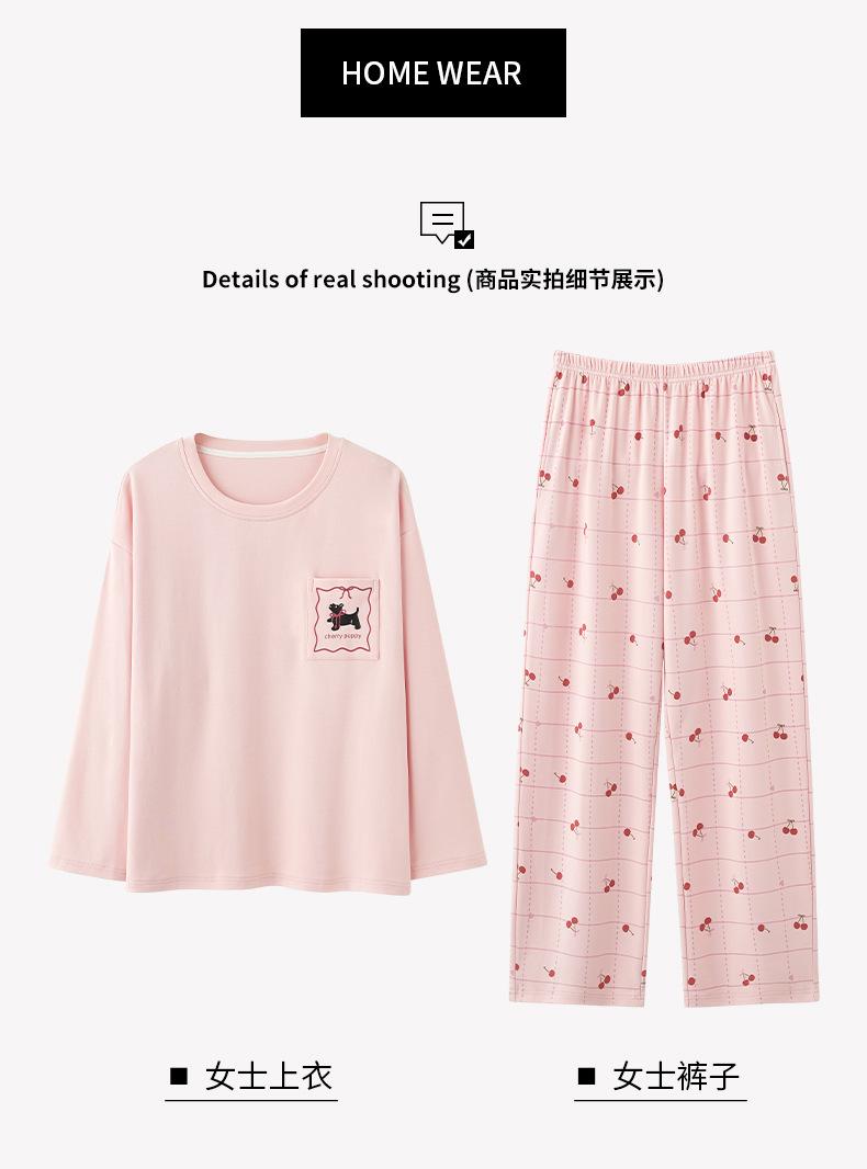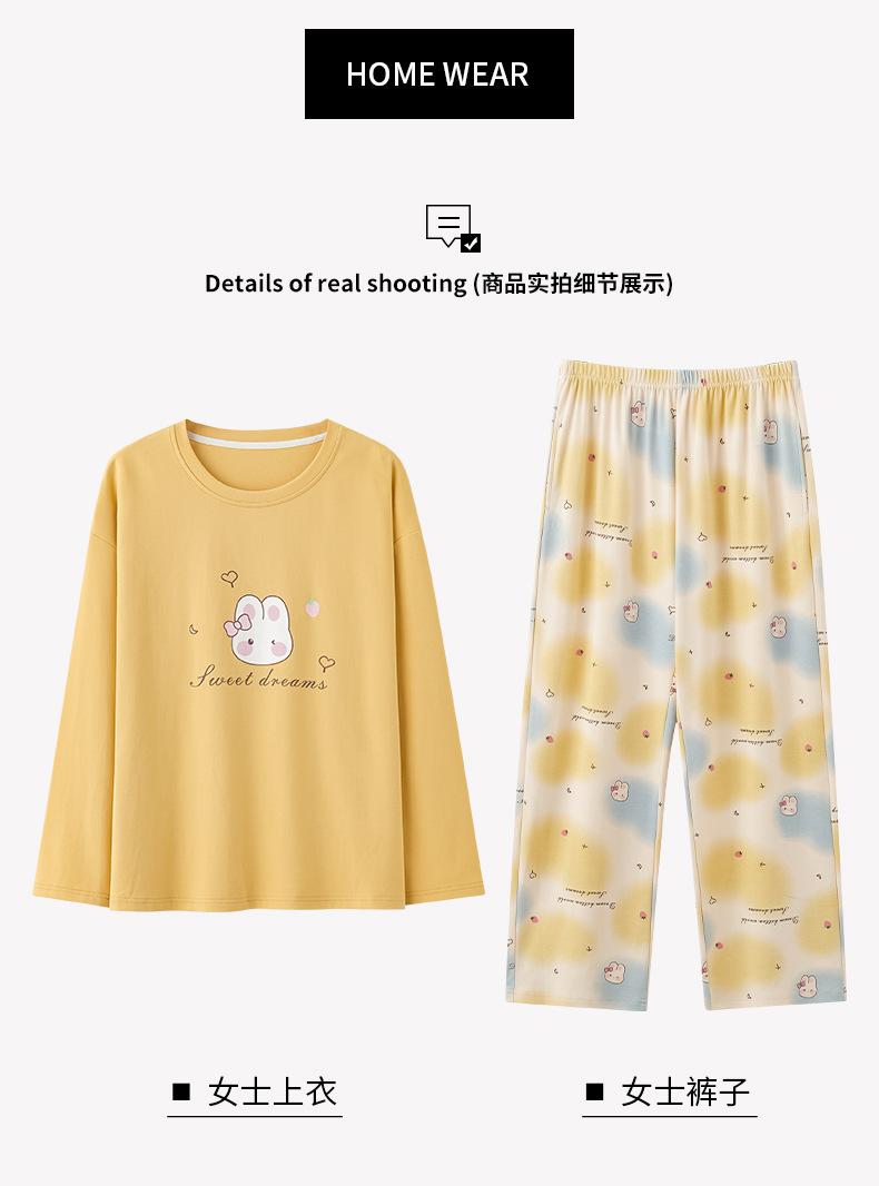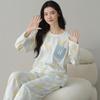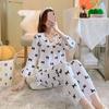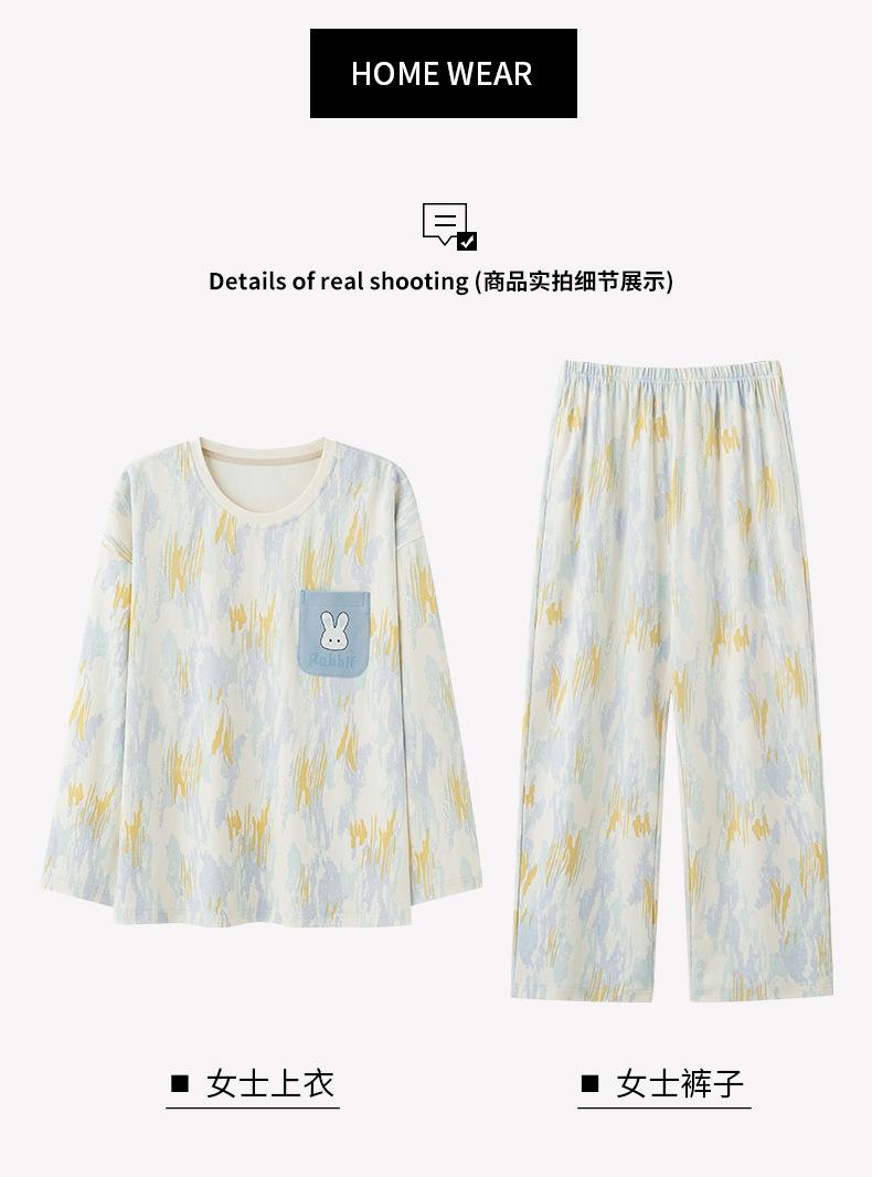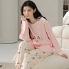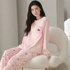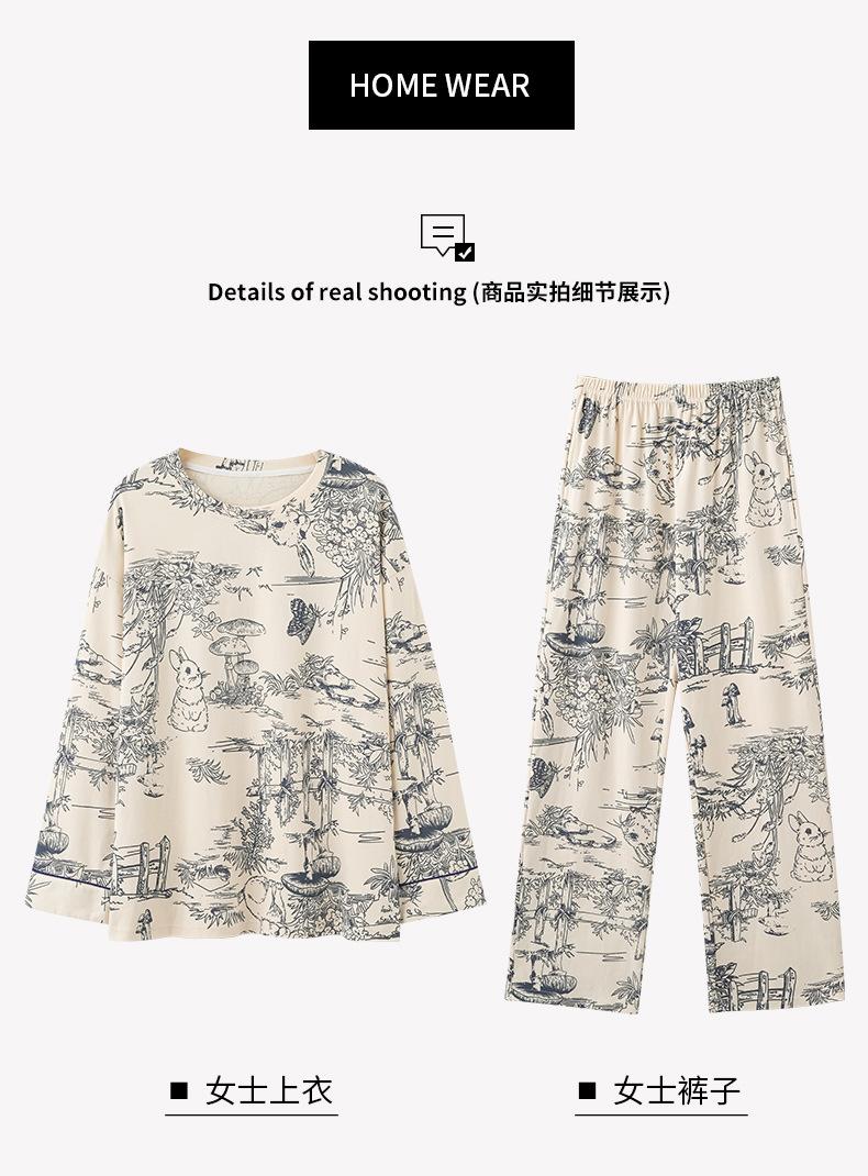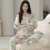 Pijama Nuevo de Primavera y Otoño para Mujer, Amigable con la Piel, Transpirable, Algodón Puro, Cuello Redondo, Manga Larga, Estampado de Moda, Puede Usarse Fuera, Conjunto de Ropa para el Hogar