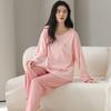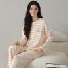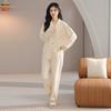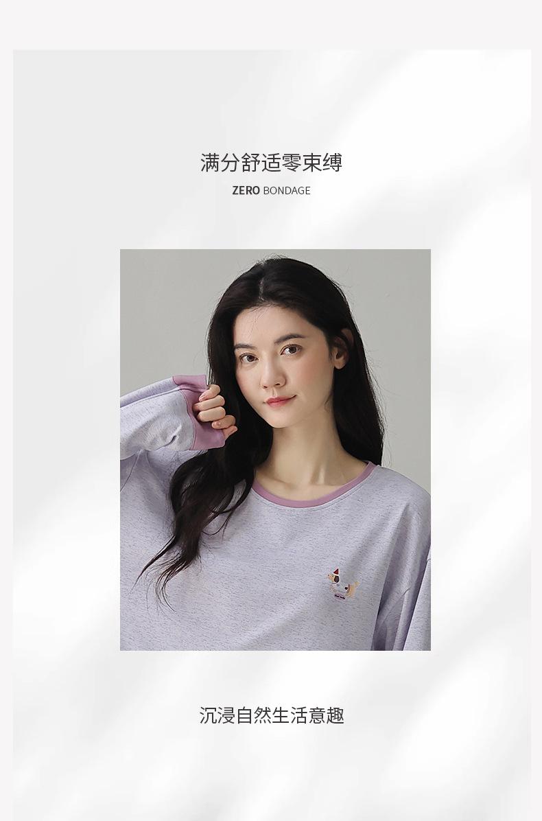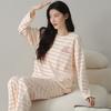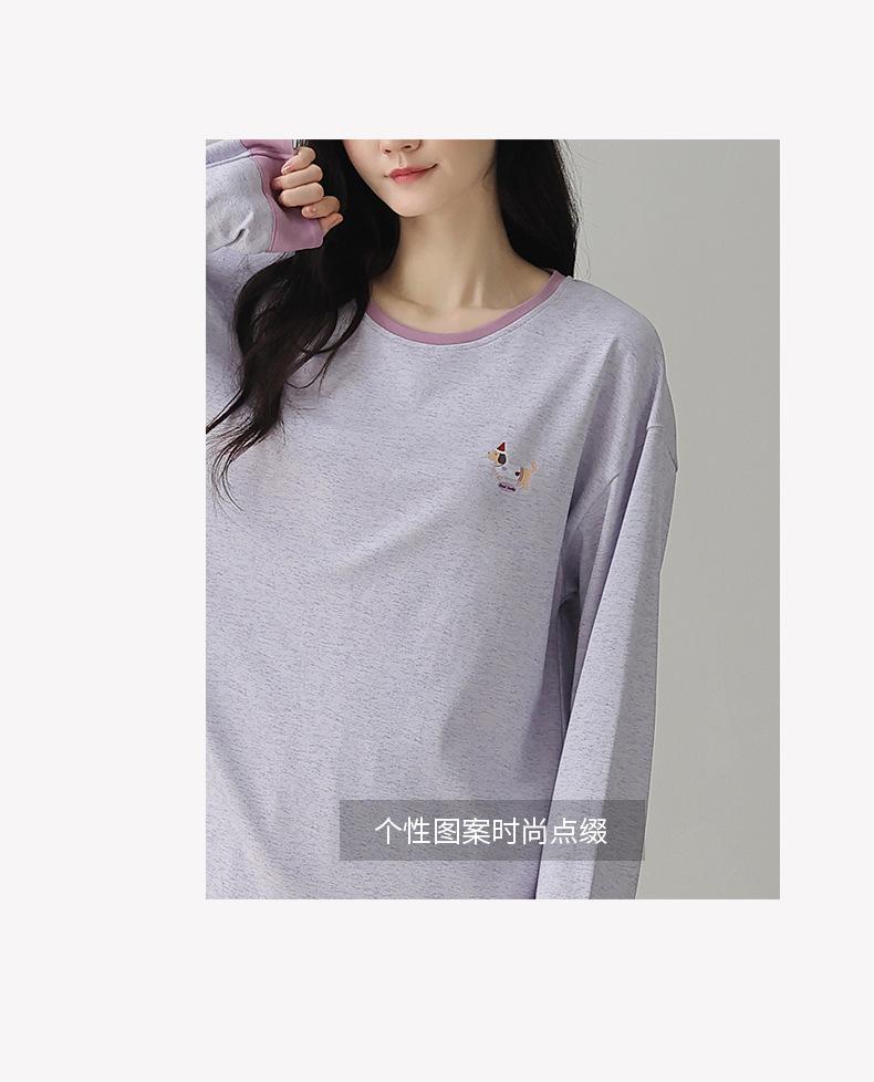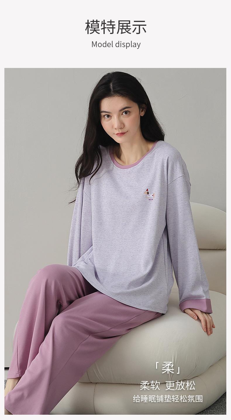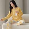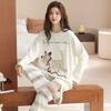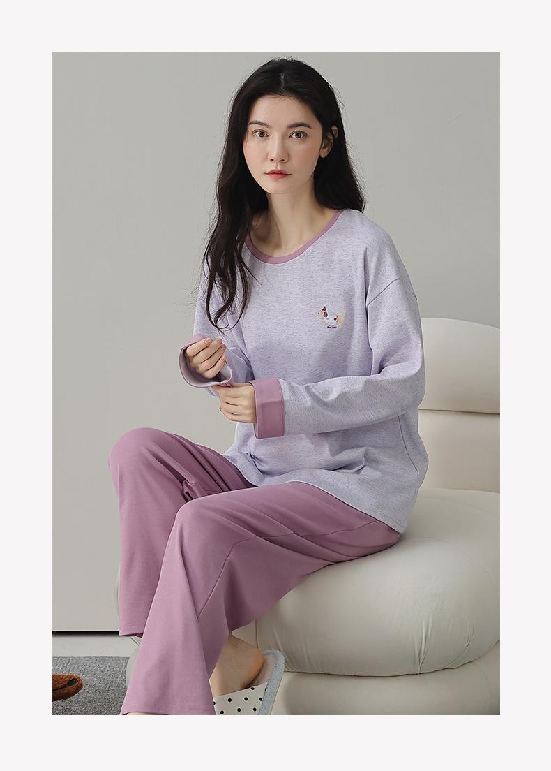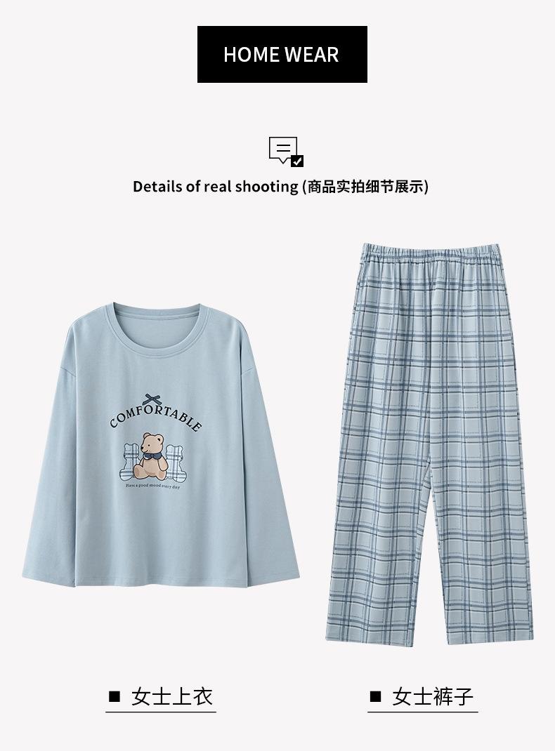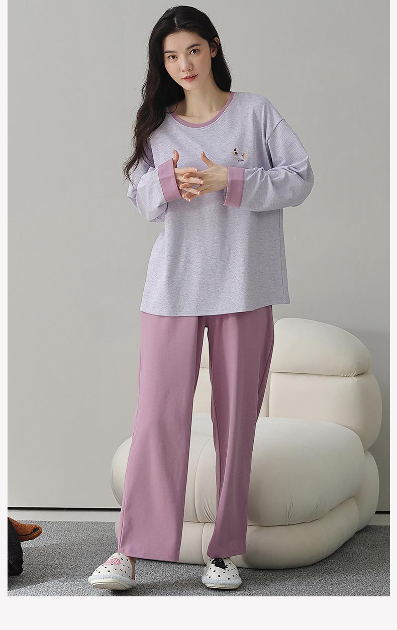 Pijama Nuevo de Primavera y Otoño para Mujer, Amigable con la Piel, Transpirable, Algodón Puro, Cuello Redondo, Manga Larga, Estampado de Moda, Puede Usarse Fuera, Conjunto de Ropa para el Hogar