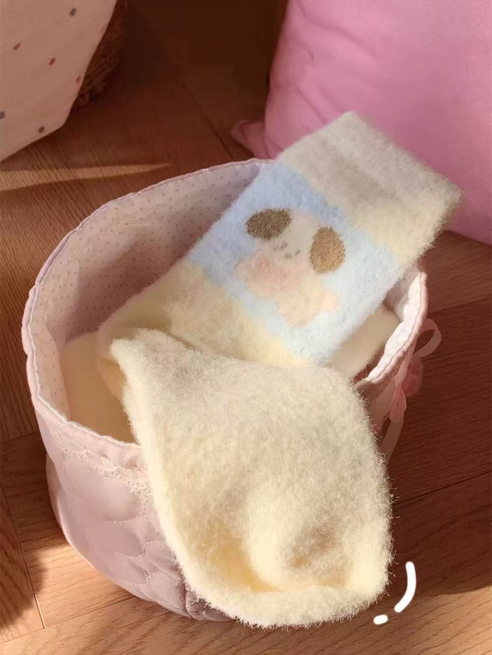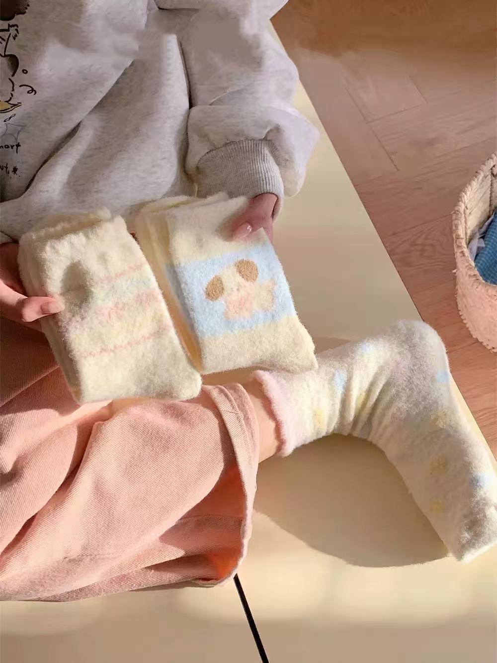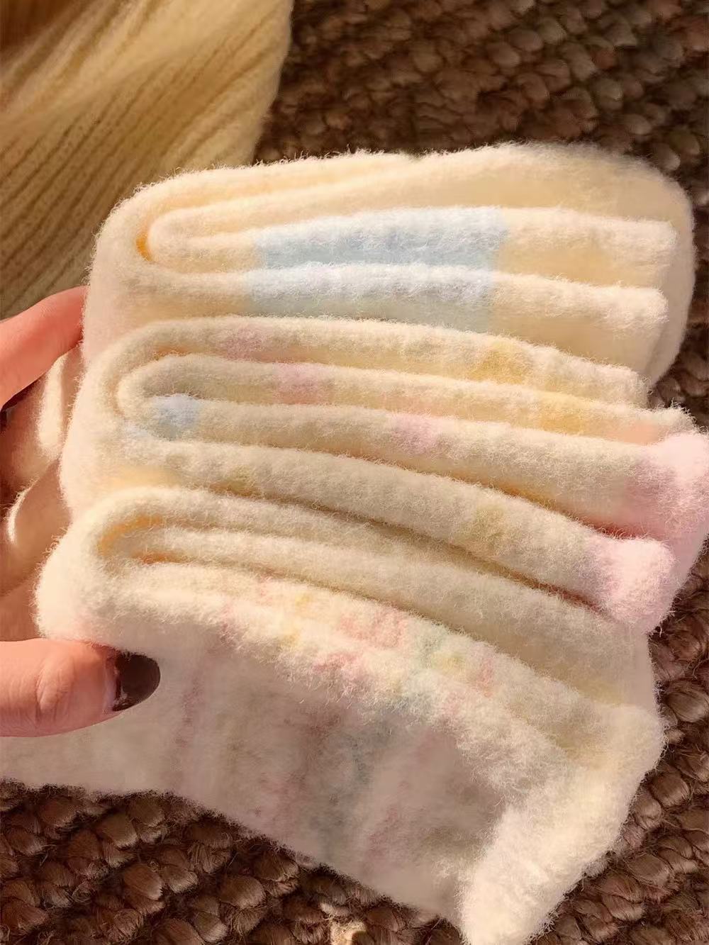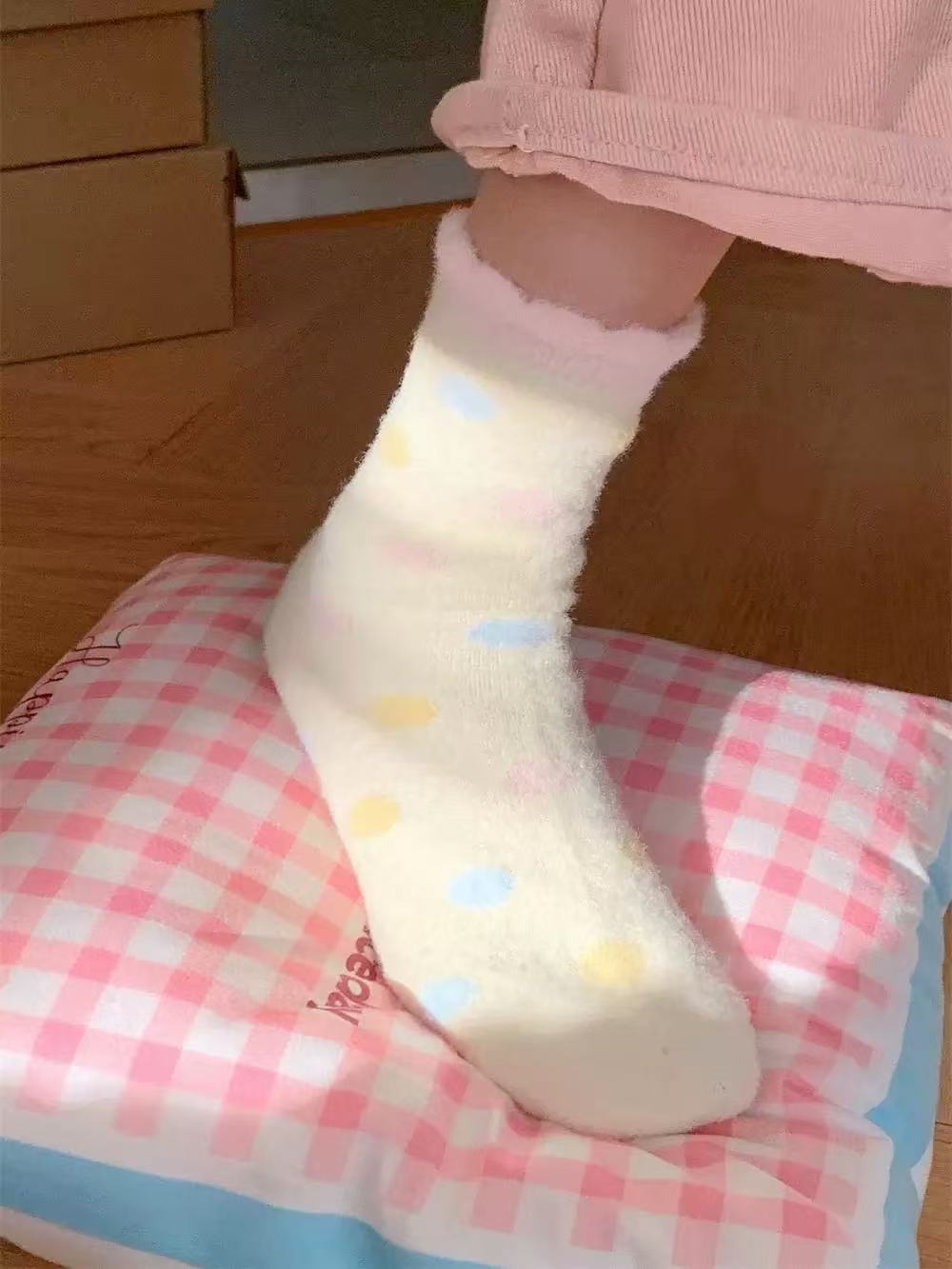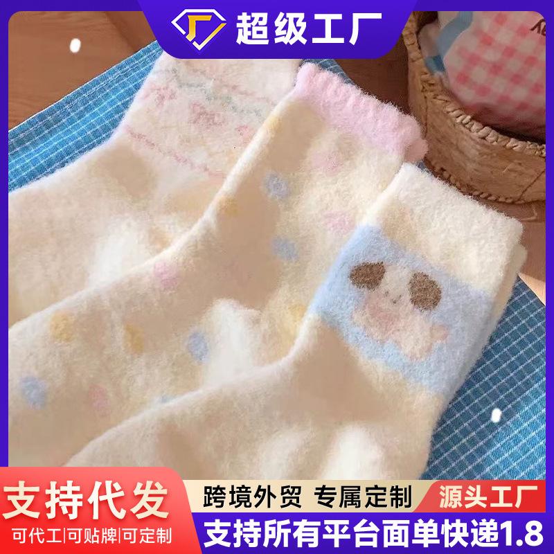 Calcetines Delgados de Invierno Lindos Esponjosos para Mujer Calcetines Gruesos Cálidos de Piso hasta Media Pantorrilla Calcetines Postparto Calcetines para Dormir ins