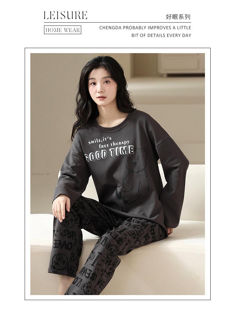 Pijama de Algodón Puro Estilo Nuevo 2025 para Mujer Primavera y Otoño Manga Larga Pantalón Largo Talla Extra Casual Conjunto de Ropa de Casa de Otoño e Invierno para Salir