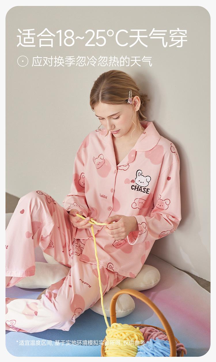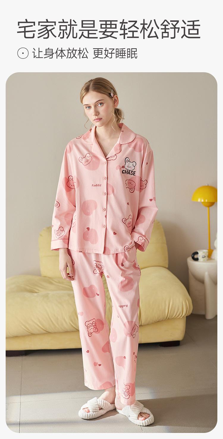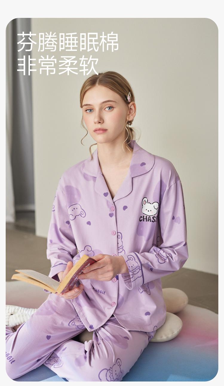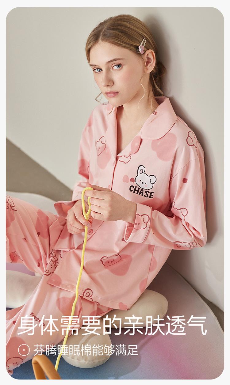 Fenteng [Algodón para Dormir Antiestático] Pijama para Mujer Primavera y Otoño Algodón Puro Manga Larga Conjunto Lindo Se Puede Usar Fuera Ropa de Casa