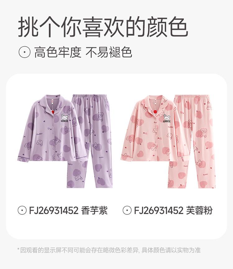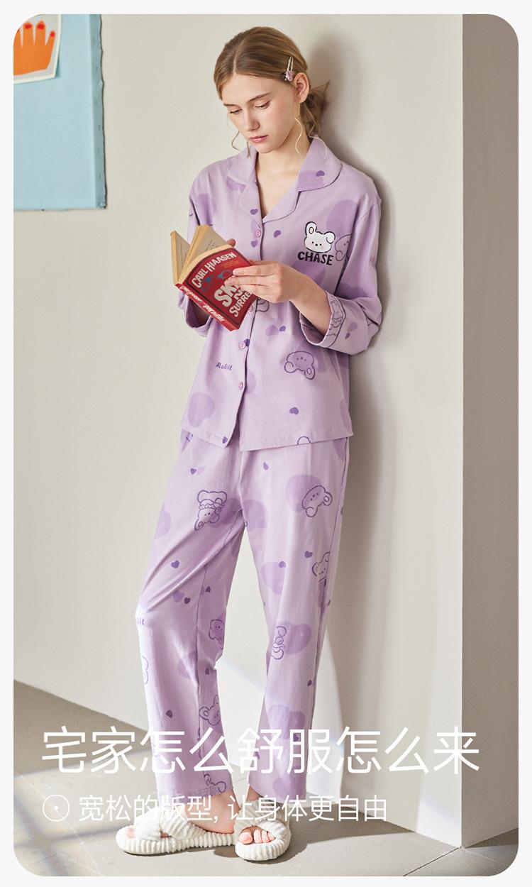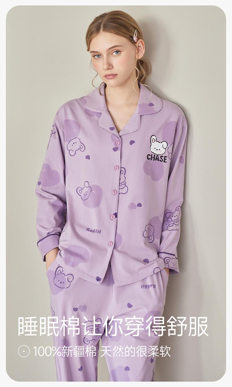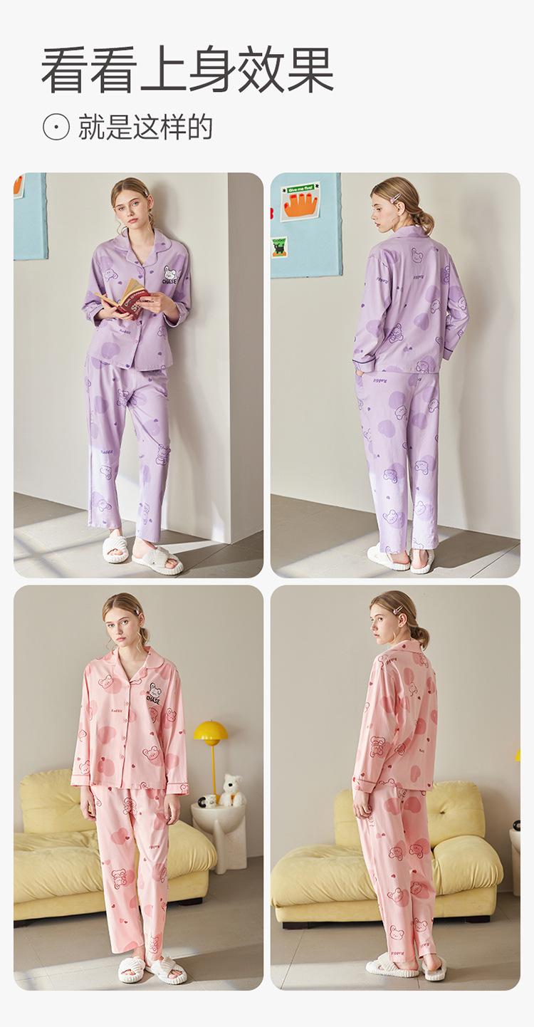 Fenteng [Algodón para Dormir Antiestático] Pijama para Mujer Primavera y Otoño Algodón Puro Manga Larga Conjunto Lindo Se Puede Usar Fuera Ropa de Casa