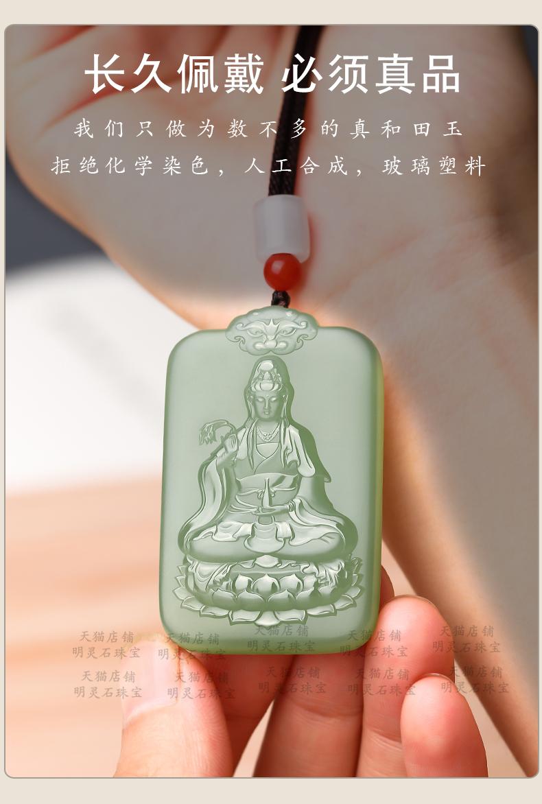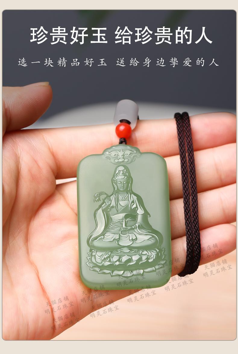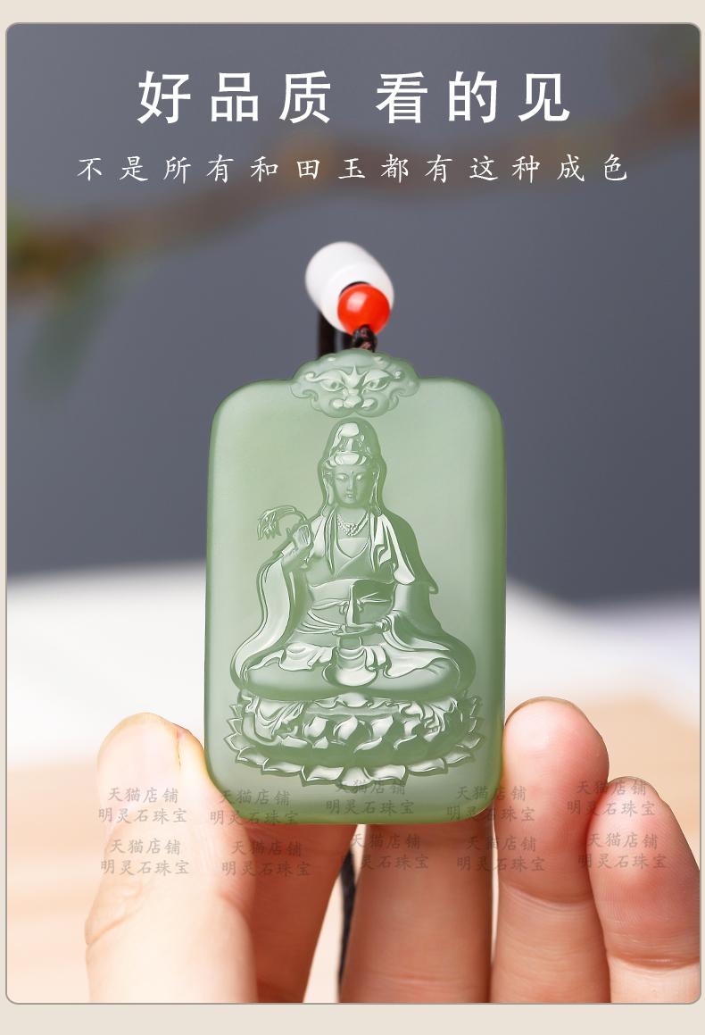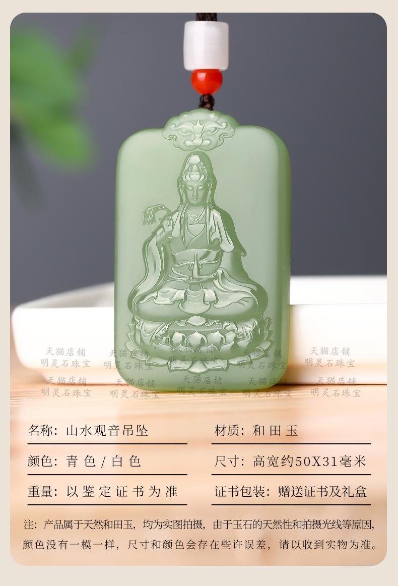 Colgante de Jade Hetian Guanyin Colgante de Jade Masculino Jade Paisaje Rama de Sauce Guanyin Bodhisattva Yu Pei Colgante Benmingnian Collar