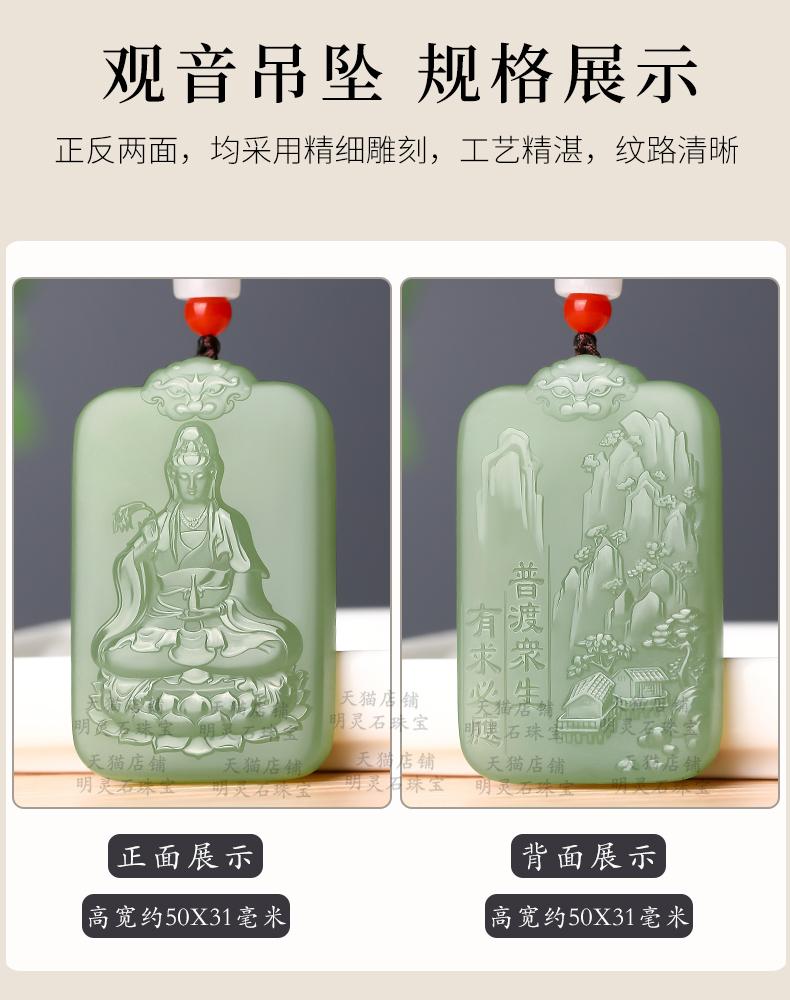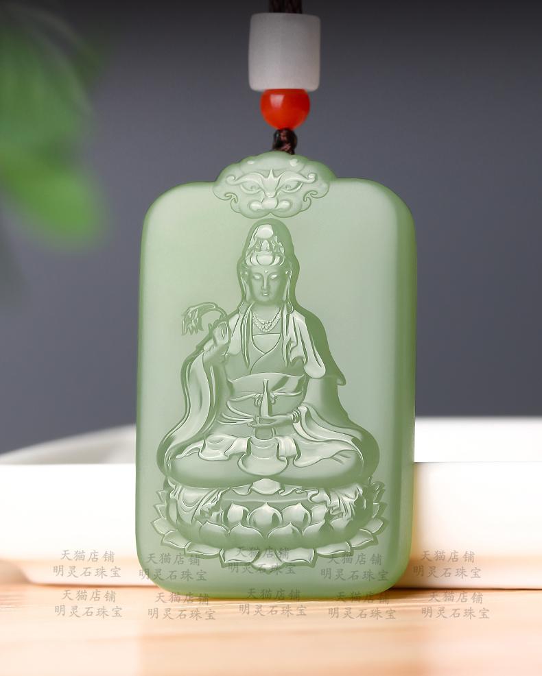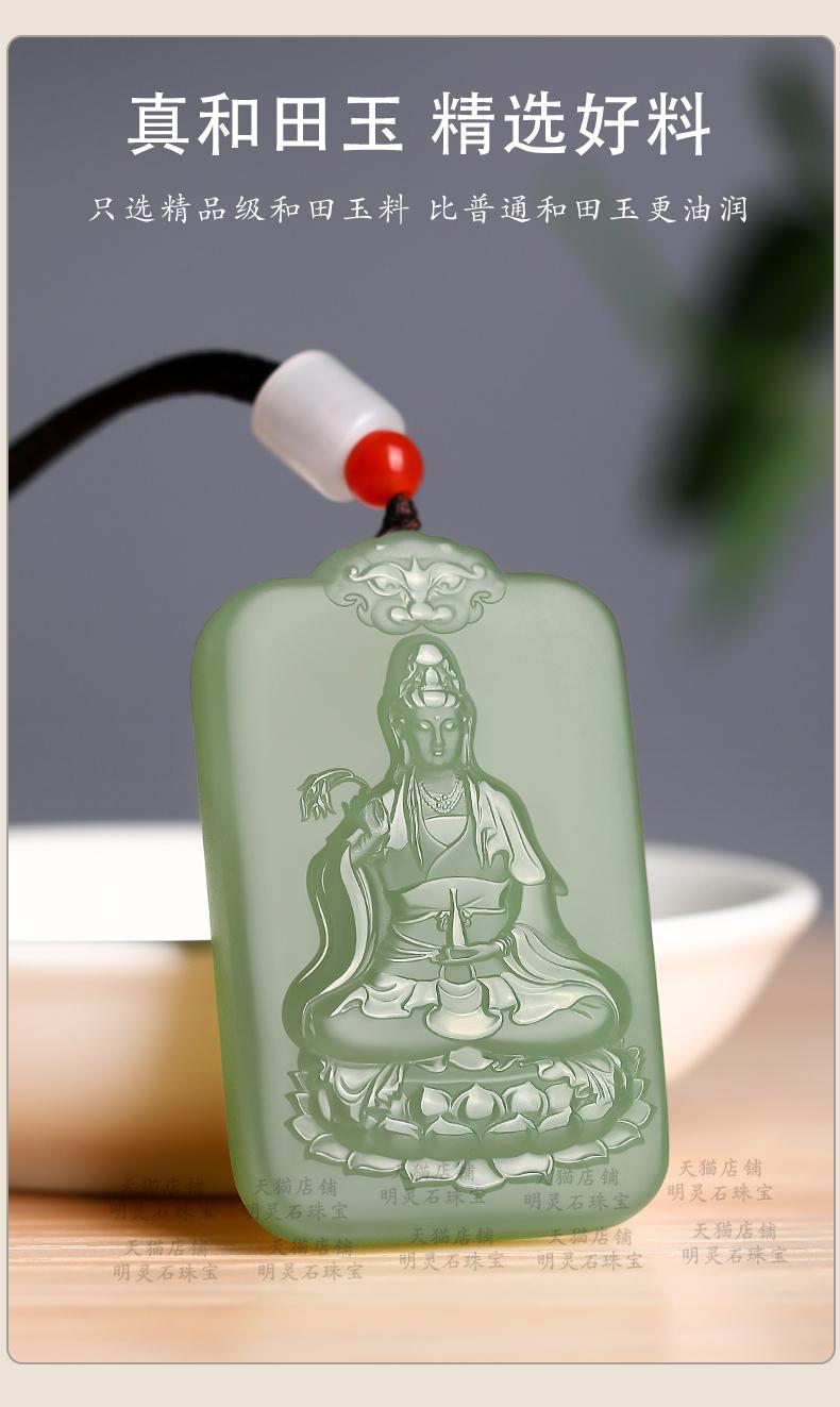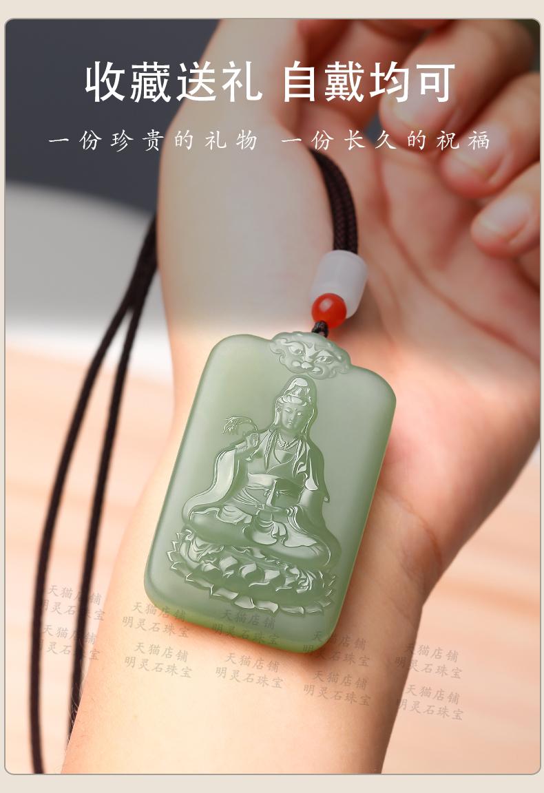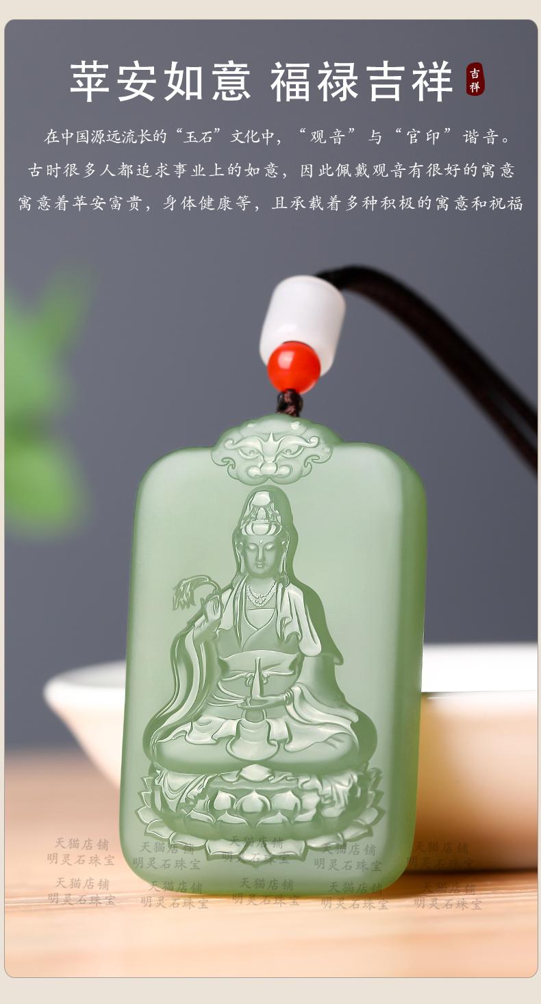 Colgante de Jade Hetian Guanyin Colgante de Jade Masculino Jade Paisaje Rama de Sauce Guanyin Bodhisattva Yu Pei Colgante Benmingnian Collar