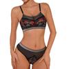 Comercio Exterior Transfronterizo Verano Superventas Nueva Ropa Interior Sexy Tentación Sexy Bordado de Labios Rojos Malla Transparente Conjunto de Dos Piezas para Mujer