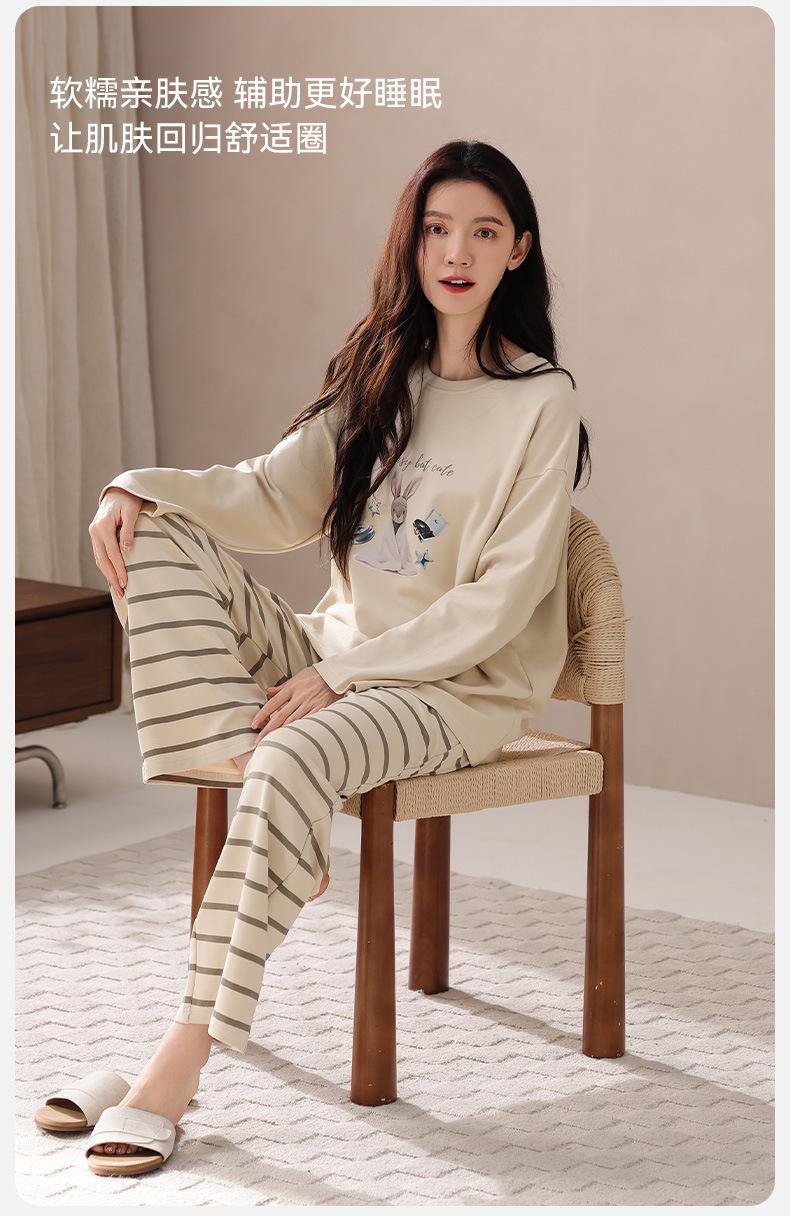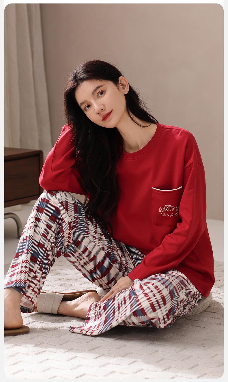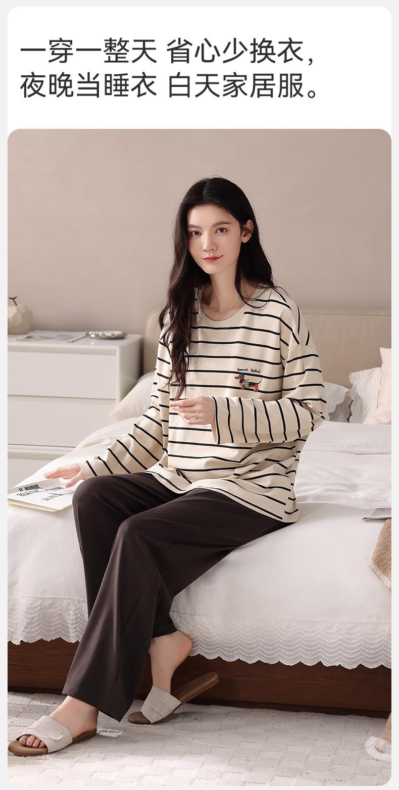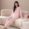 Conjunto de pijama de algodón de manga larga y pantalones largos para mujer para primavera y otoño, estilo delgado, se puede usar fuera, estilo nuevo 2025