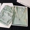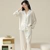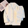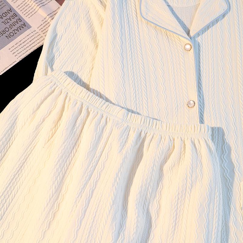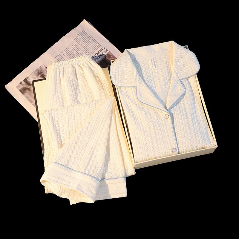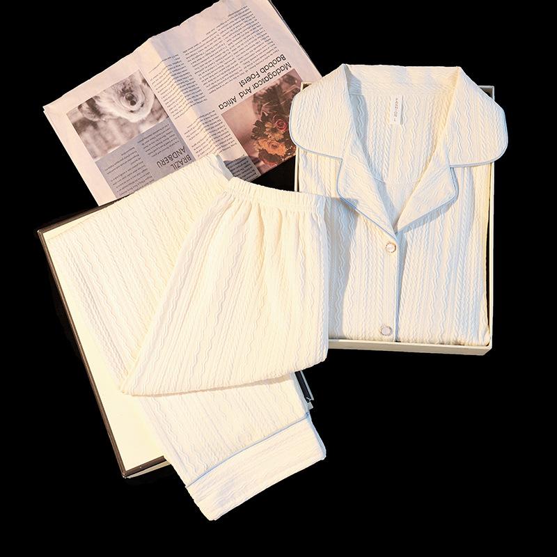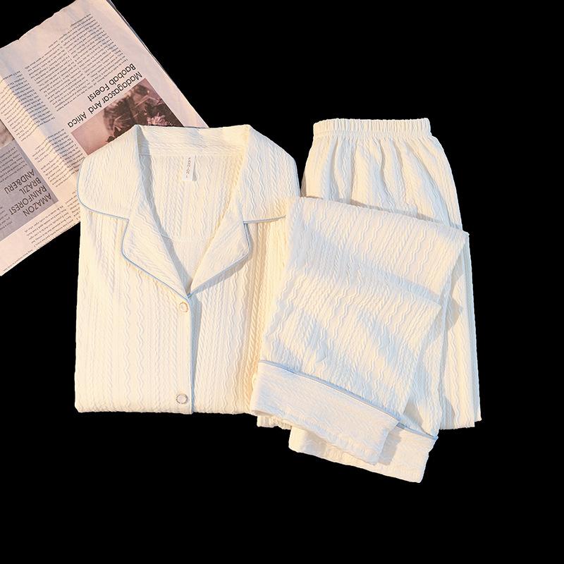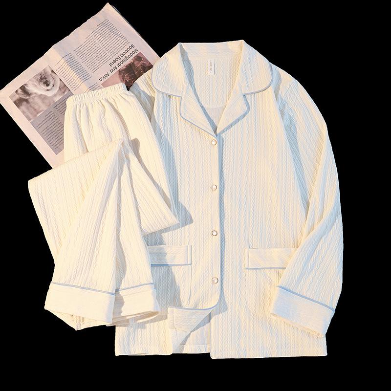 Pijama simple estilo ins versión coreana para mujer primavera y otoño nuevo jacquard imitación algodón color sólido dulce ropa para el hogar conjunto cárdigan