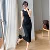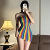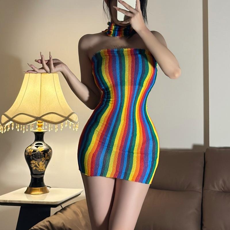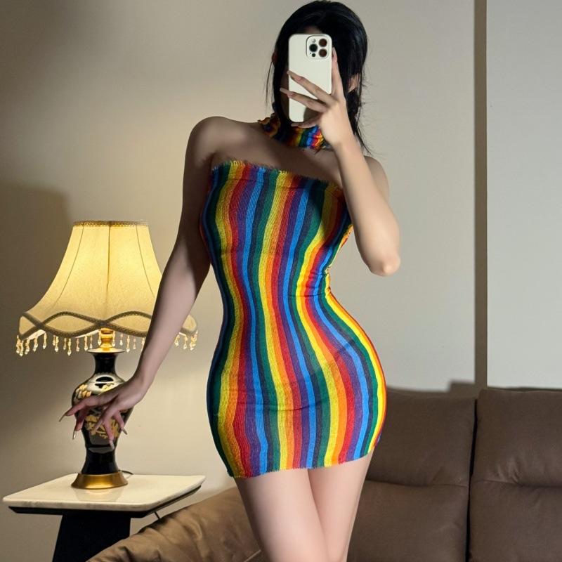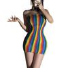 Vestido Ajustado de Punto con Rayas de Arcoíris Verano Lencería Reductora Bufanda