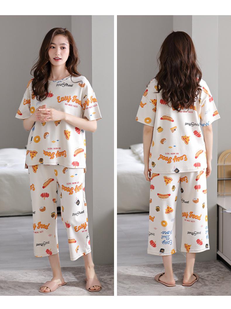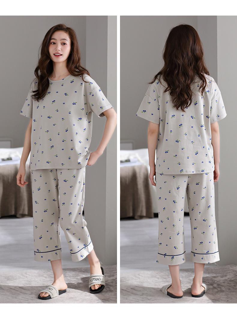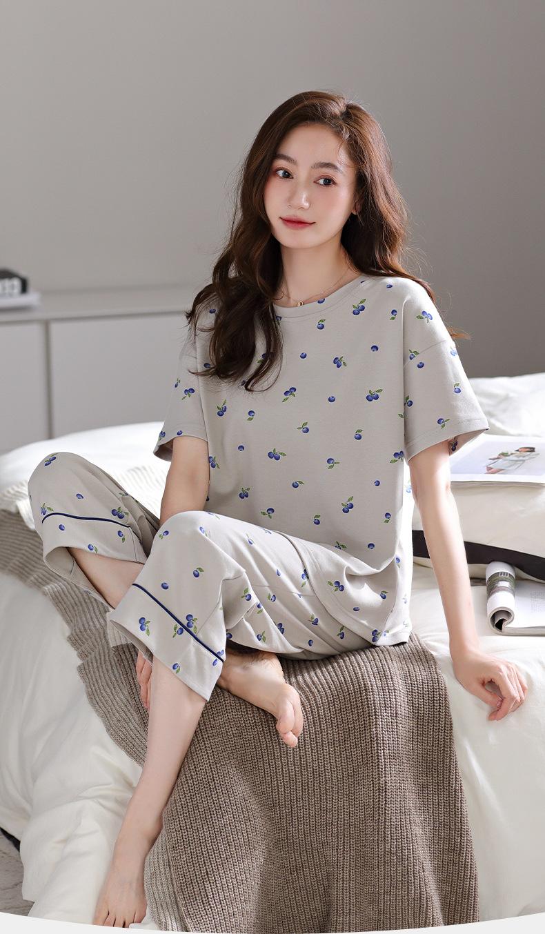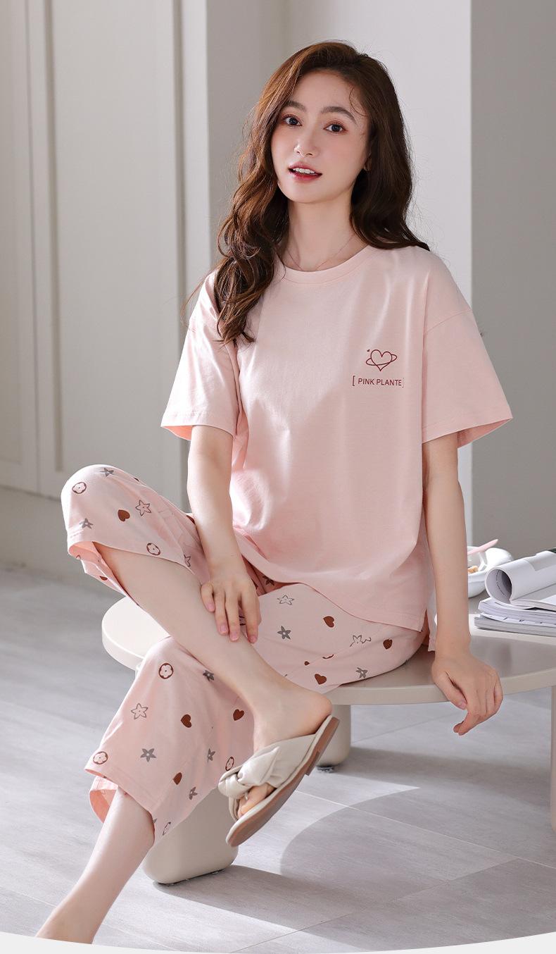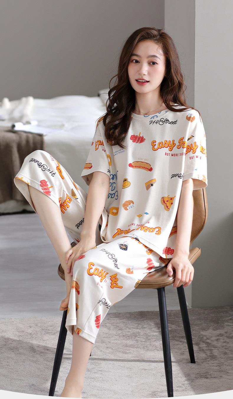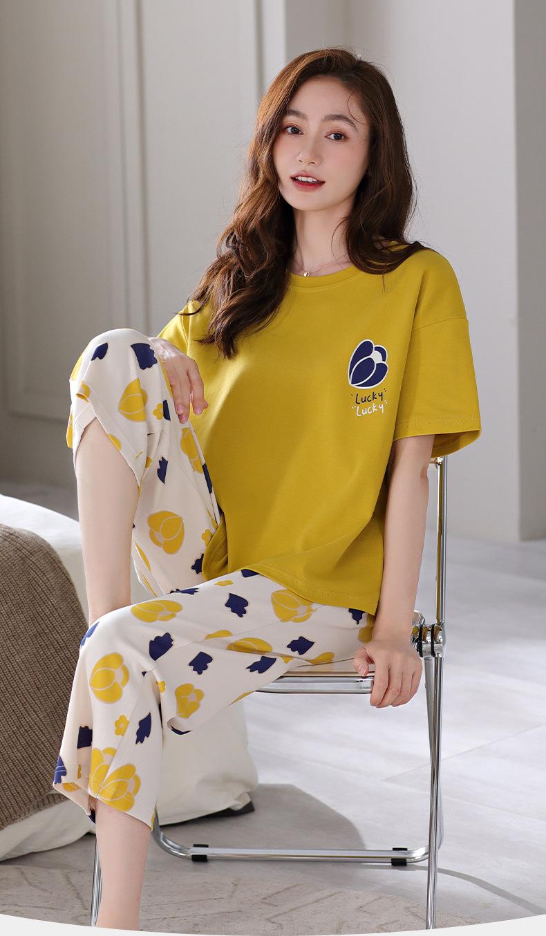 Pijama de Verano para Mujer Algodón Manga Corta Pantalón Capri Ropa de Exterior Ropa para el Hogar 2023 Nuevo Verano Algodón Fino