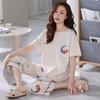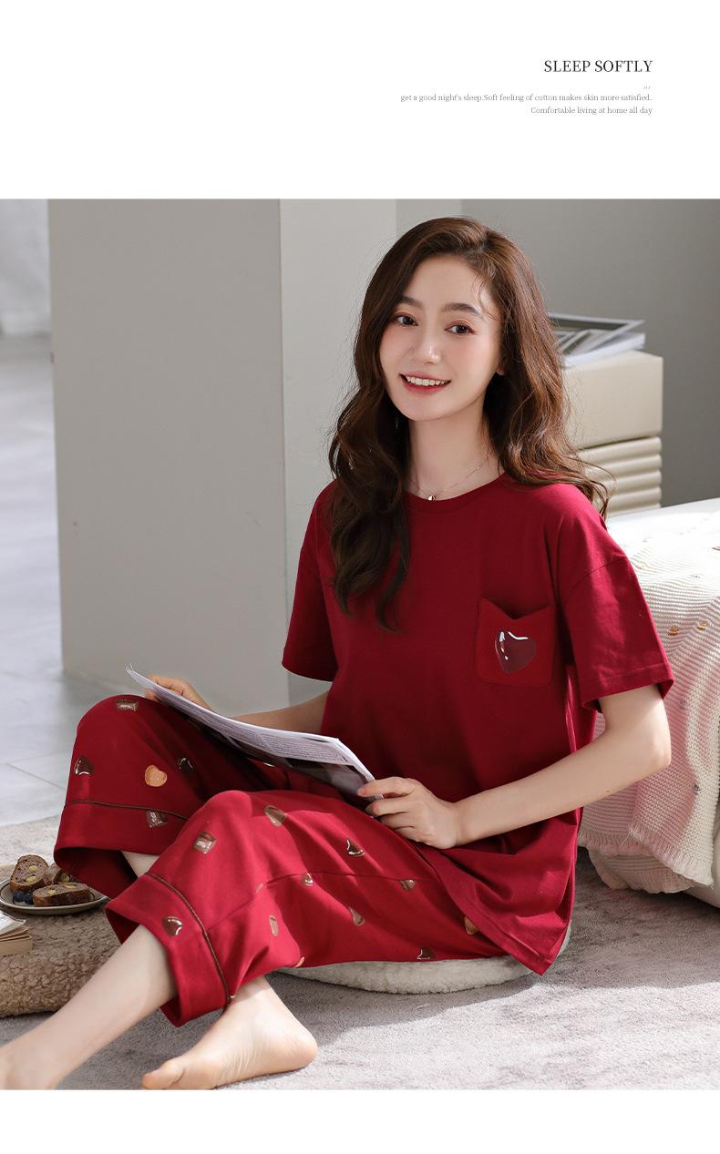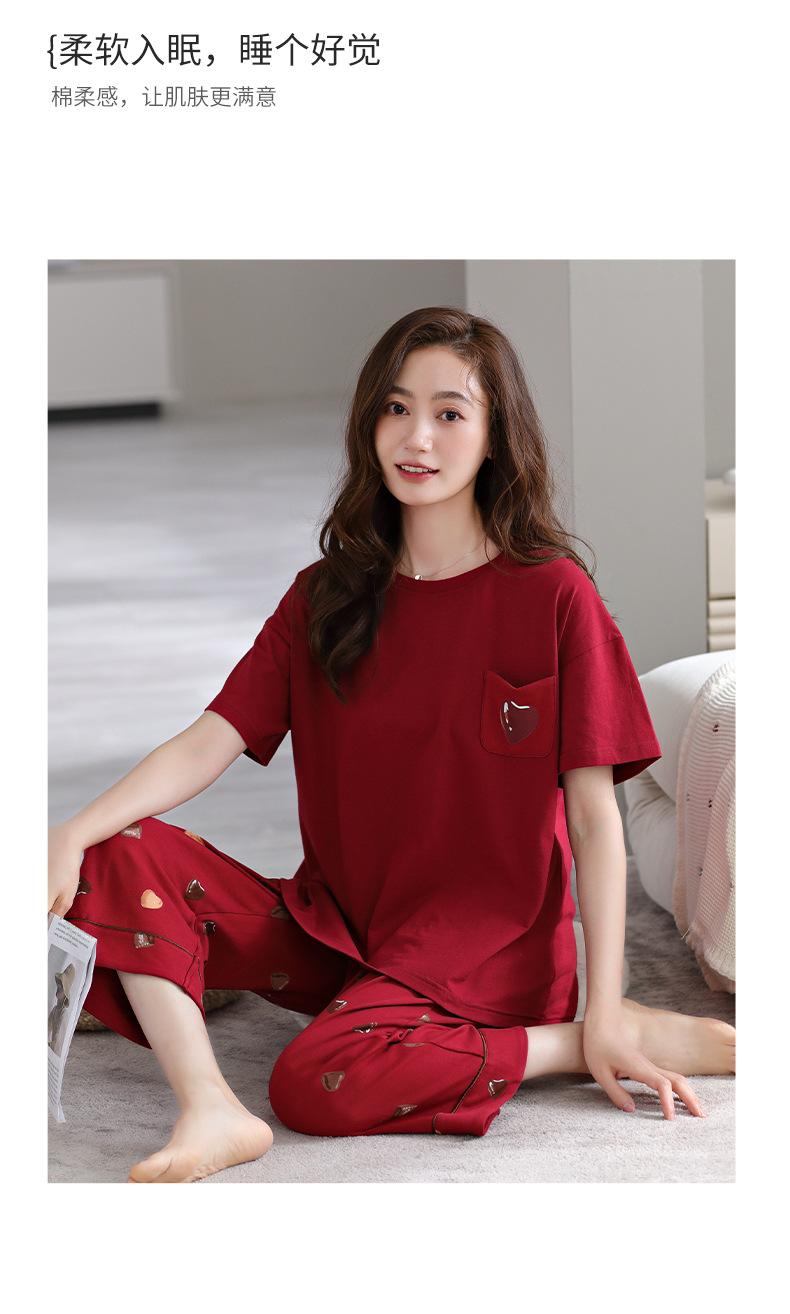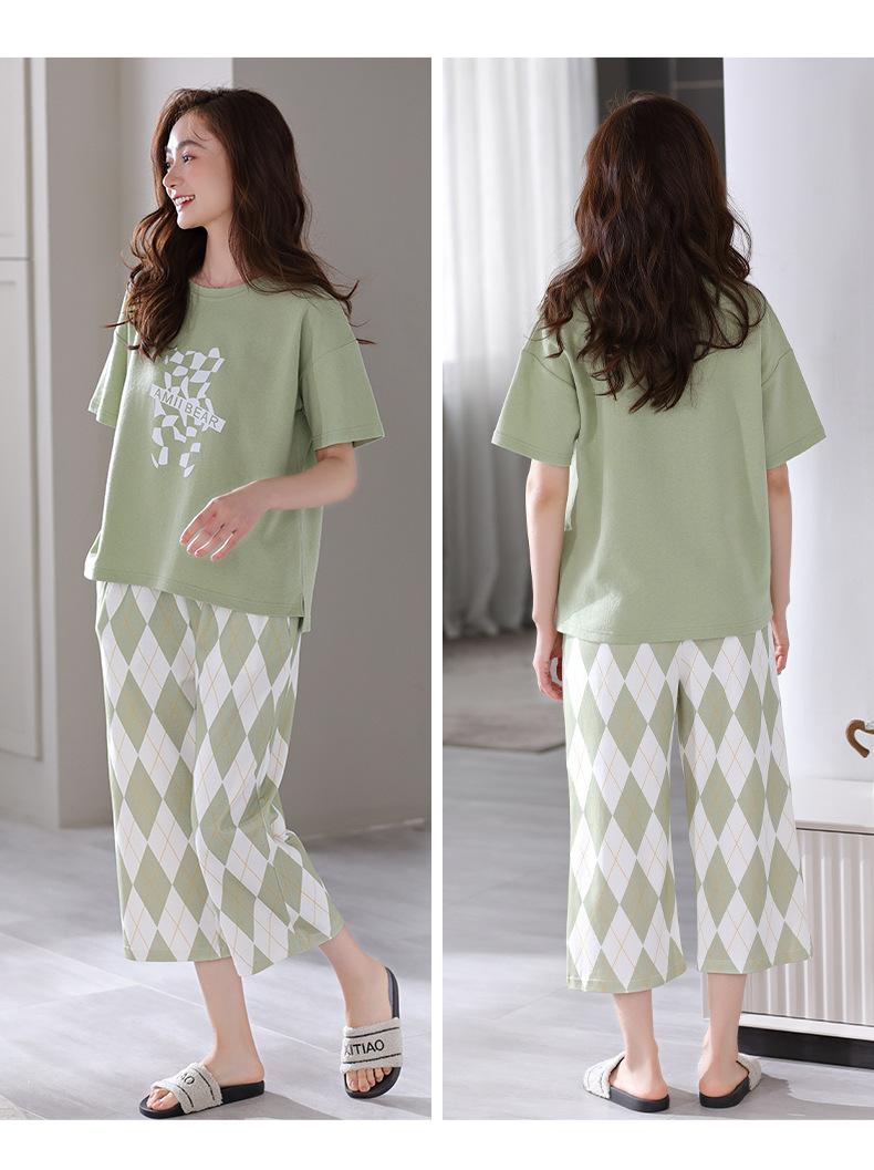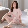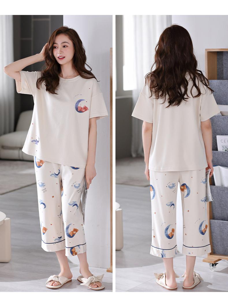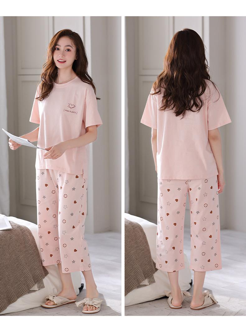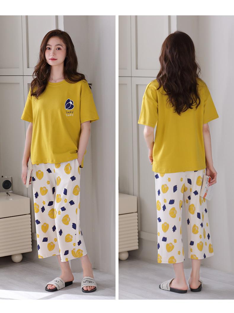 Pijama de Verano para Mujer Algodón Manga Corta Pantalón Capri Ropa de Exterior Ropa para el Hogar 2023 Nuevo Verano Algodón Fino