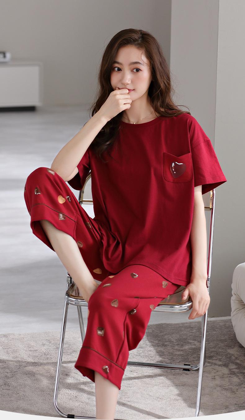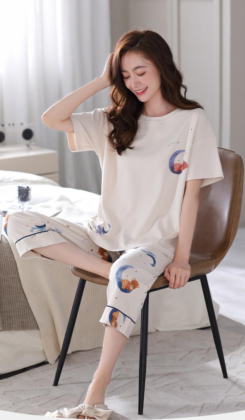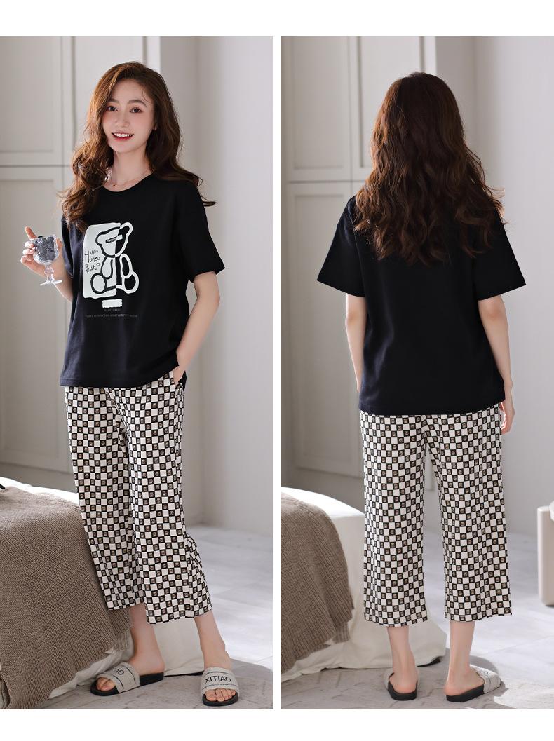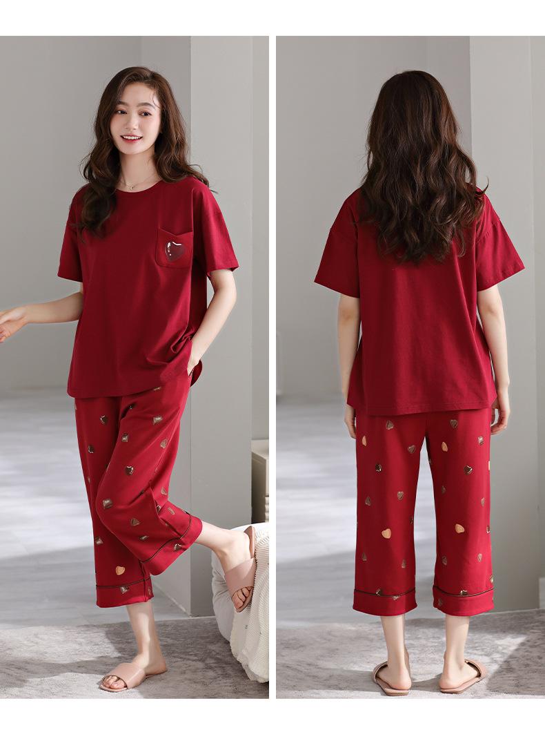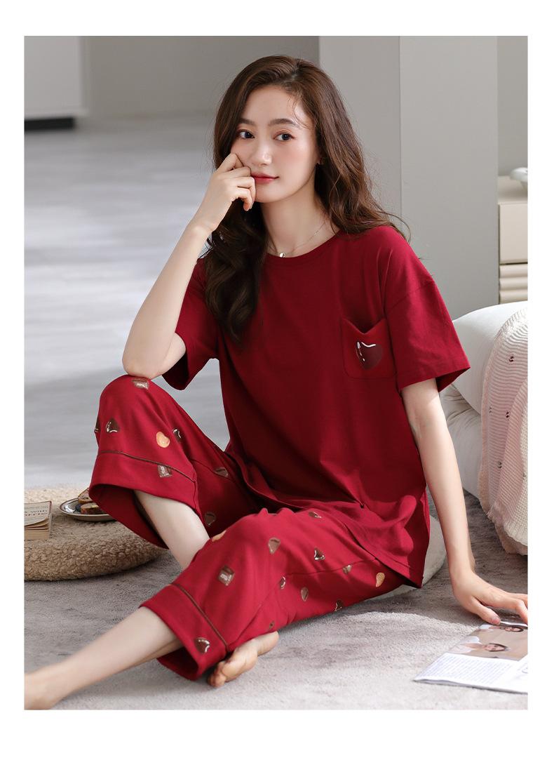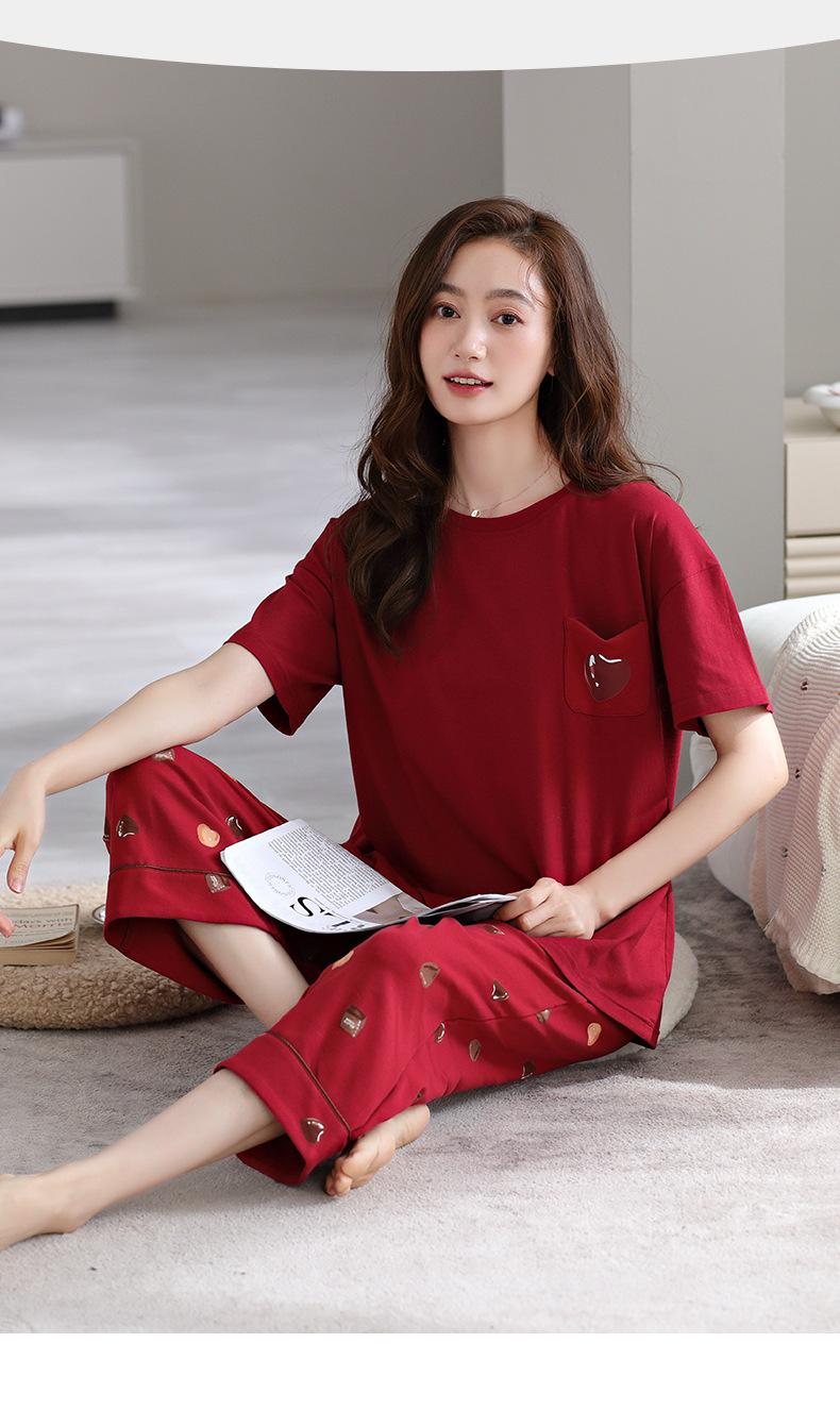 Pijama de Verano para Mujer Algodón Manga Corta Pantalón Capri Ropa de Exterior Ropa para el Hogar 2023 Nuevo Verano Algodón Fino