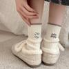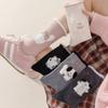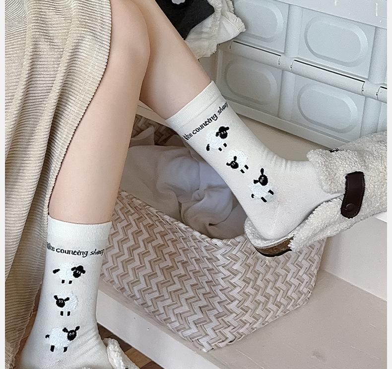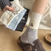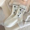 Calcetines de Mujer Algodón Puro Media Pantorrilla Otoño e Invierno Flocado Oveja Dibujos Animados Estilo Japonés Lindo Todo Algodón Absorbente de Sudor Resistente al Olor Calcetines Arrugados