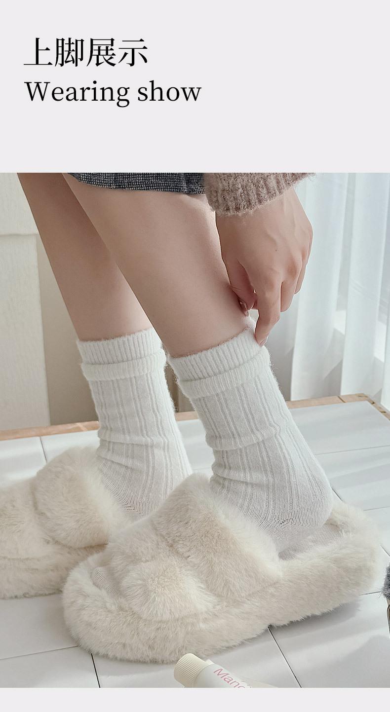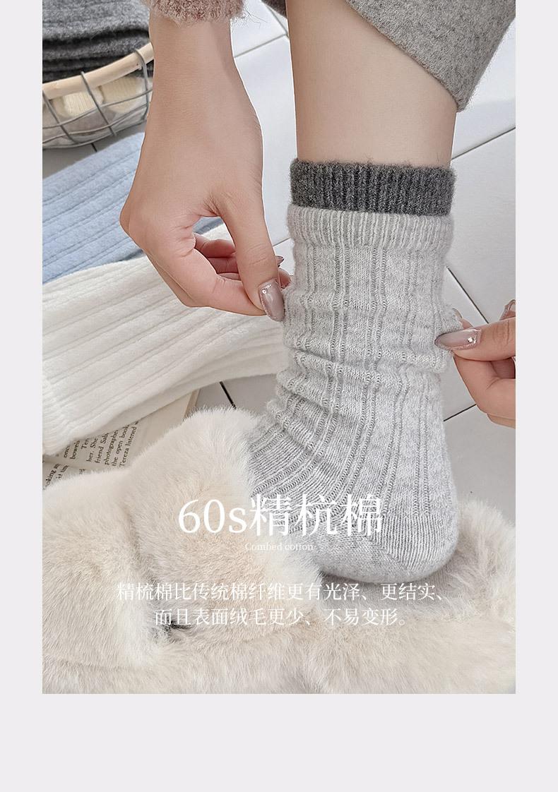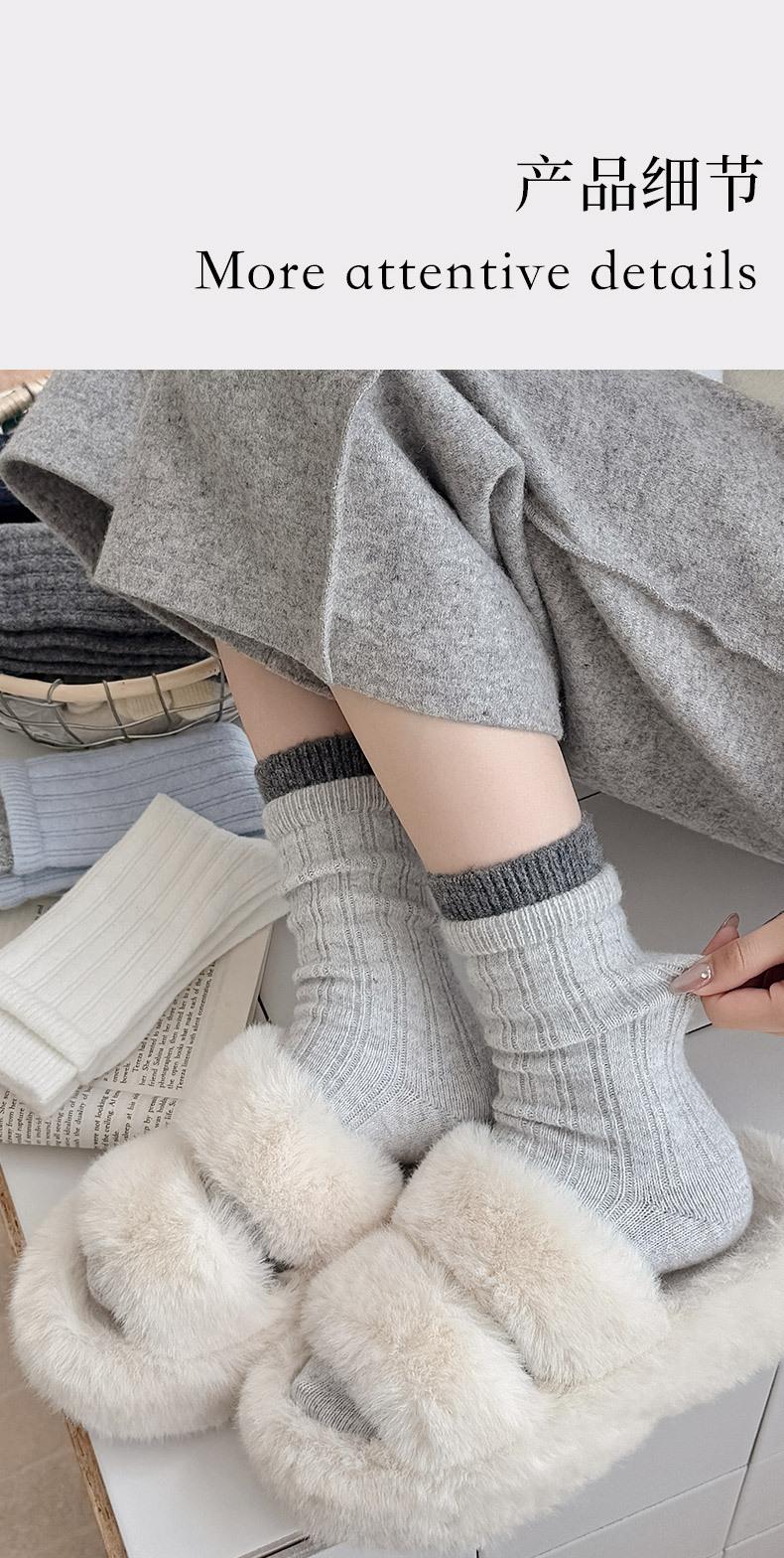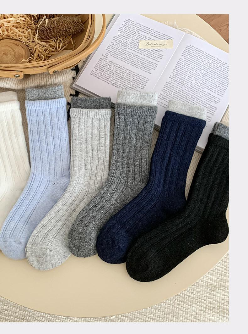 Calcetines de Lana para Mujer Otoño Invierno Calcetines Cálidos de Media Caña Almacenadores de Calor Estilo Japonés Color Sólido Doble Acanalado Invierno Extra Gruesos Cómodos Calcetines Holgados