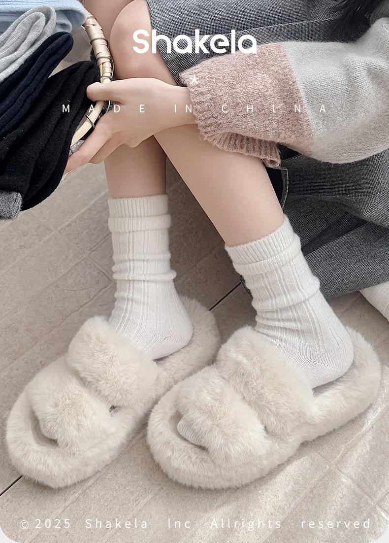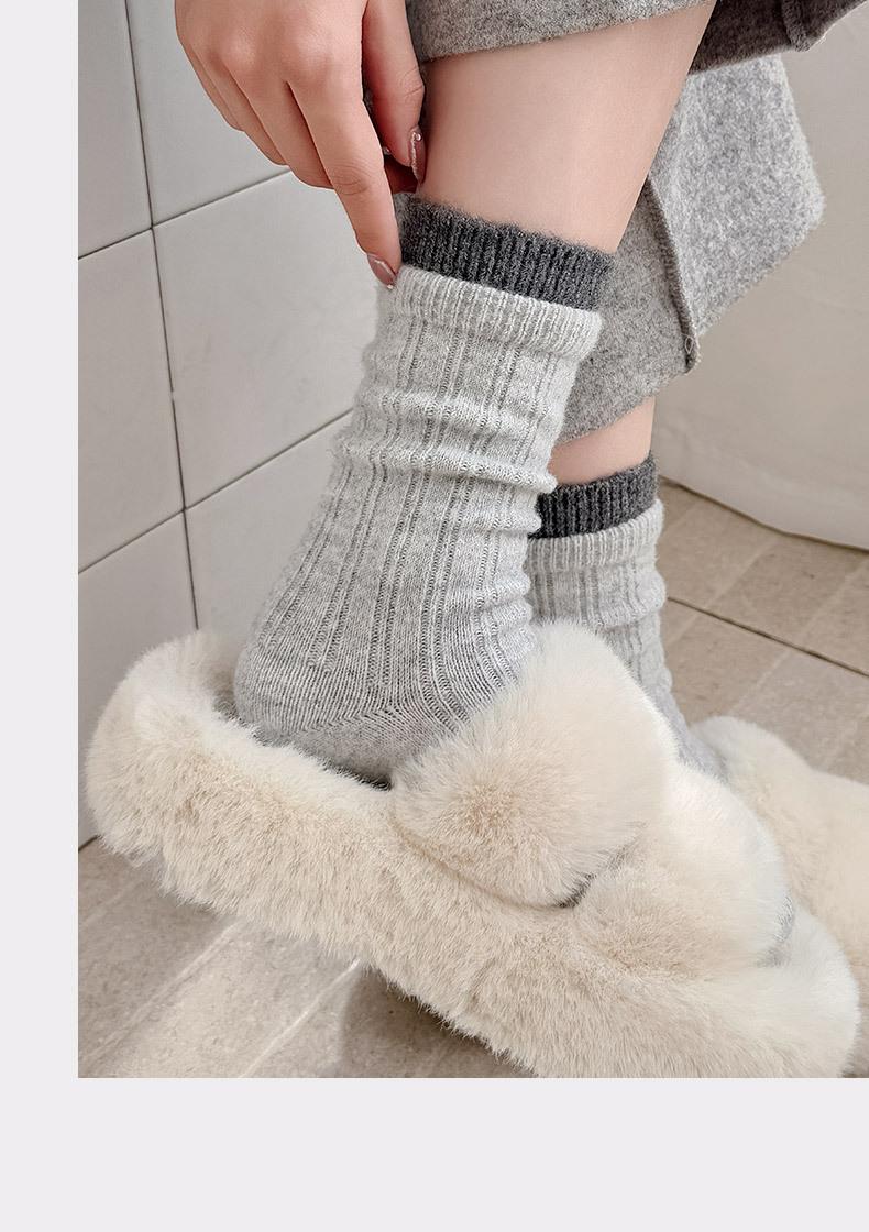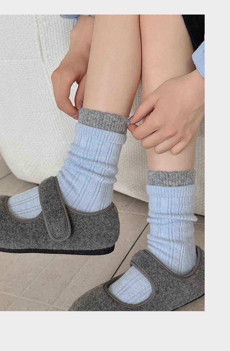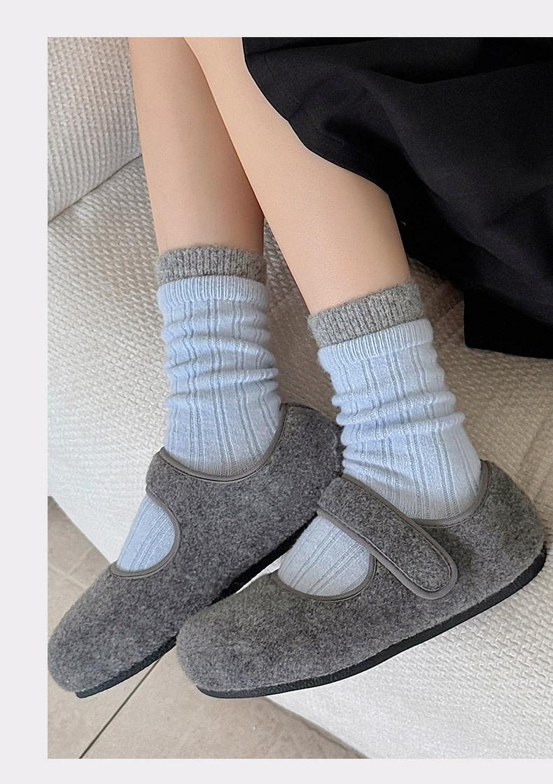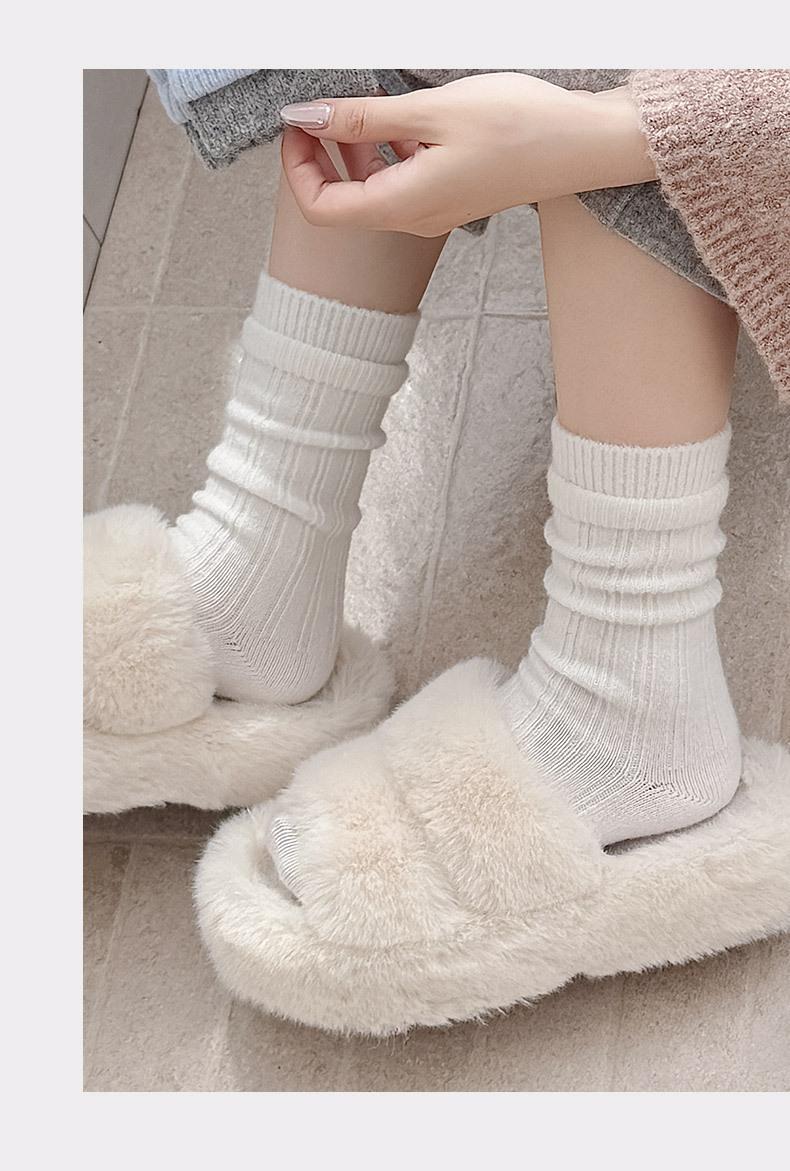 Calcetines de Lana para Mujer Otoño Invierno Calcetines Cálidos de Media Caña Almacenadores de Calor Estilo Japonés Color Sólido Doble Acanalado Invierno Extra Gruesos Cómodos Calcetines Holgados