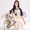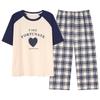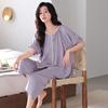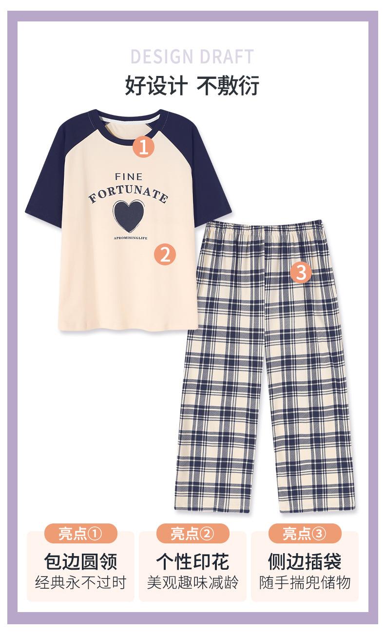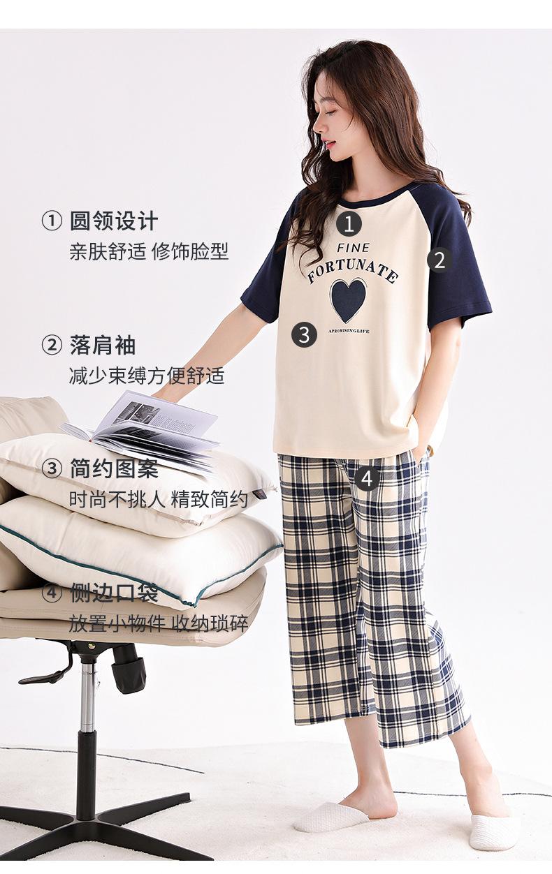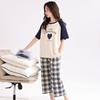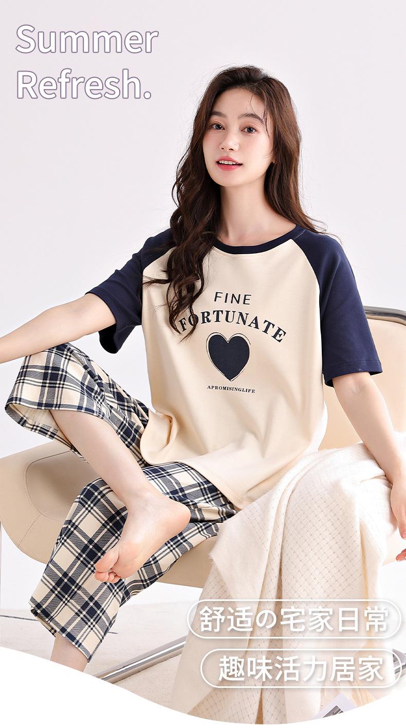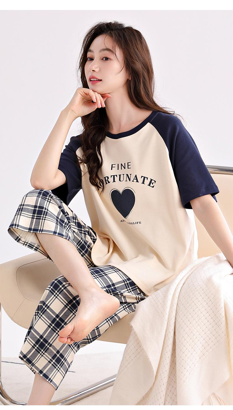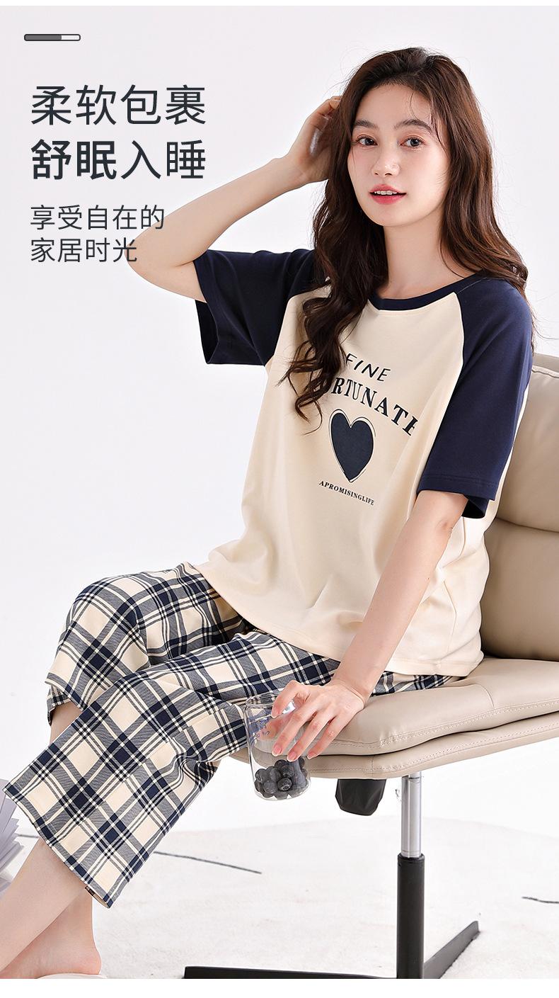Pijama Nuevo de Algodón Puro 2025 para Mujer, Verano Dulce Suelto Delgado Cuello Redondo Manga Corta Pantalón Tres Cuartos Conjunto Ropa de Dormir