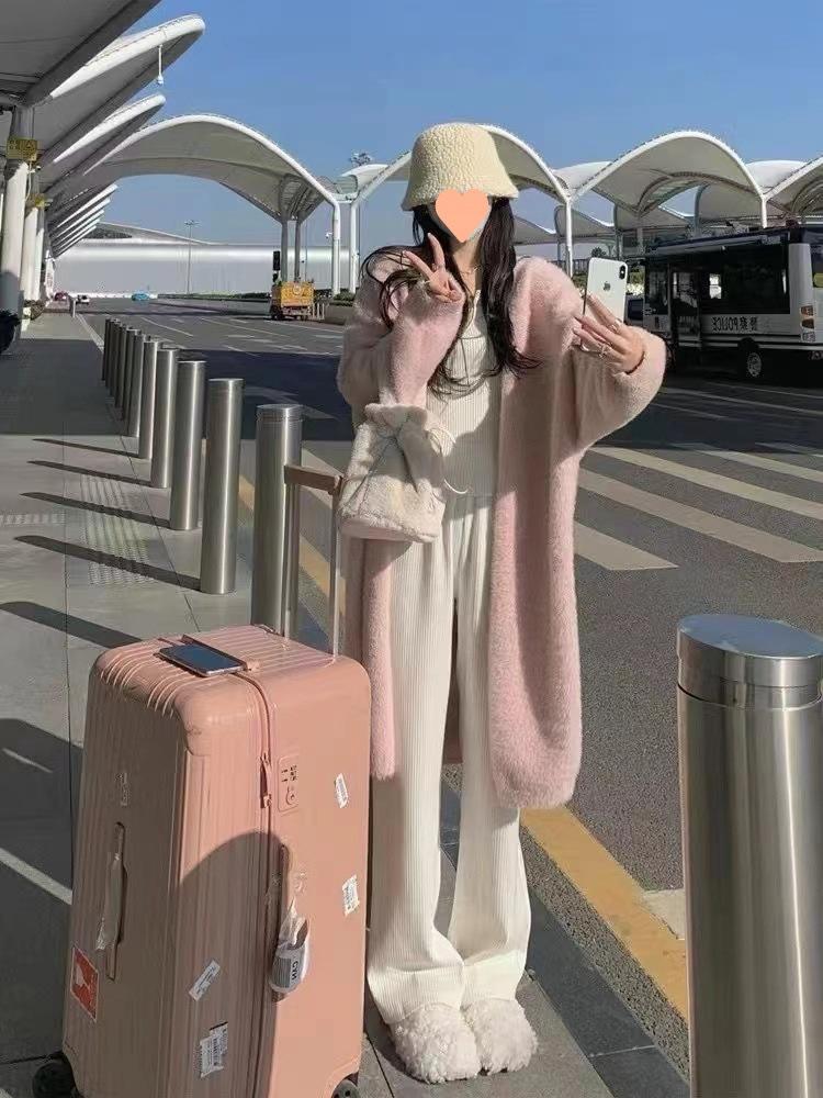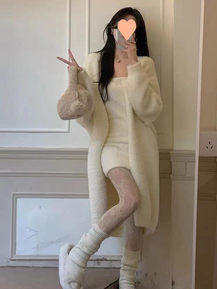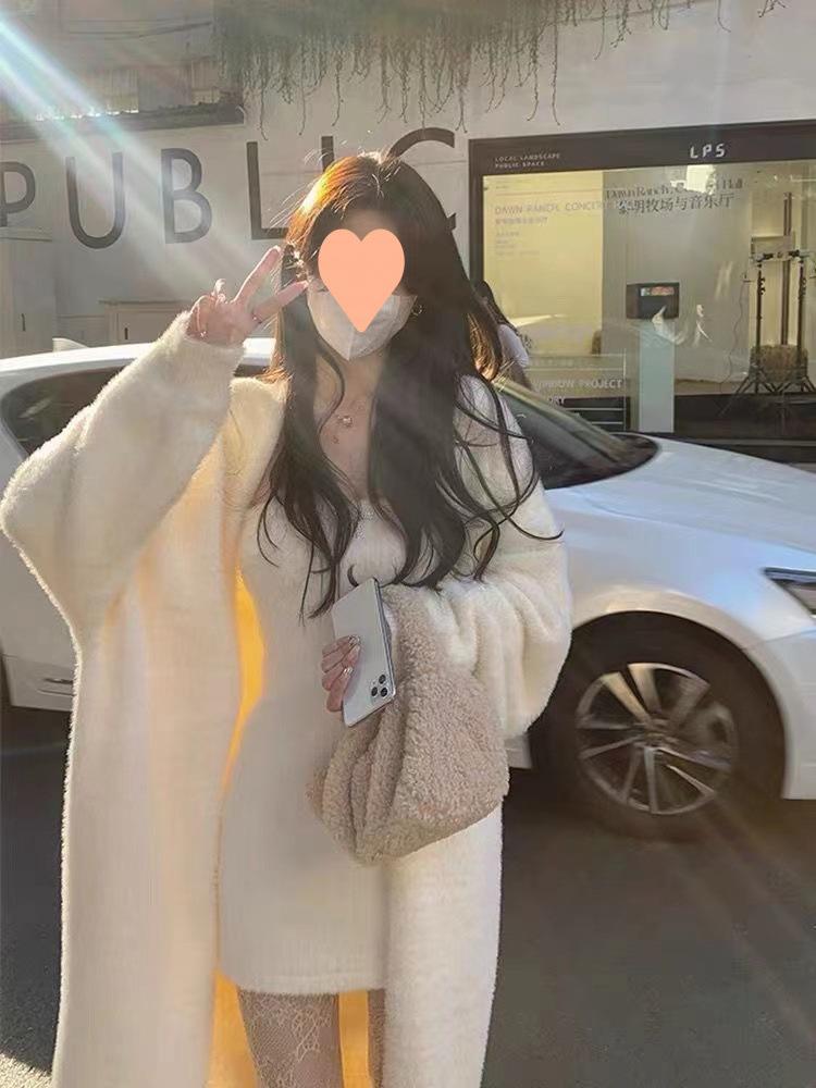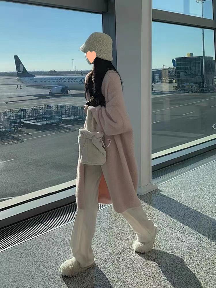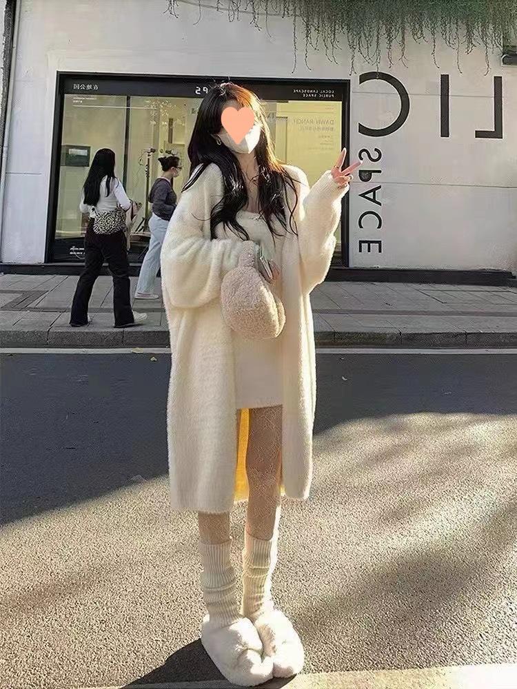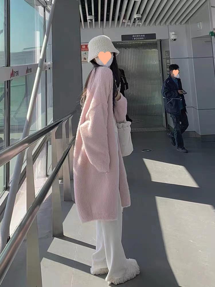 Cárdigan de Punto de Visón Sintético de Deseo Puro Grueso de Largo Medio por Encima de la Rodilla Holgado Perezoso Otoño/Invierno 2025 para Mujer