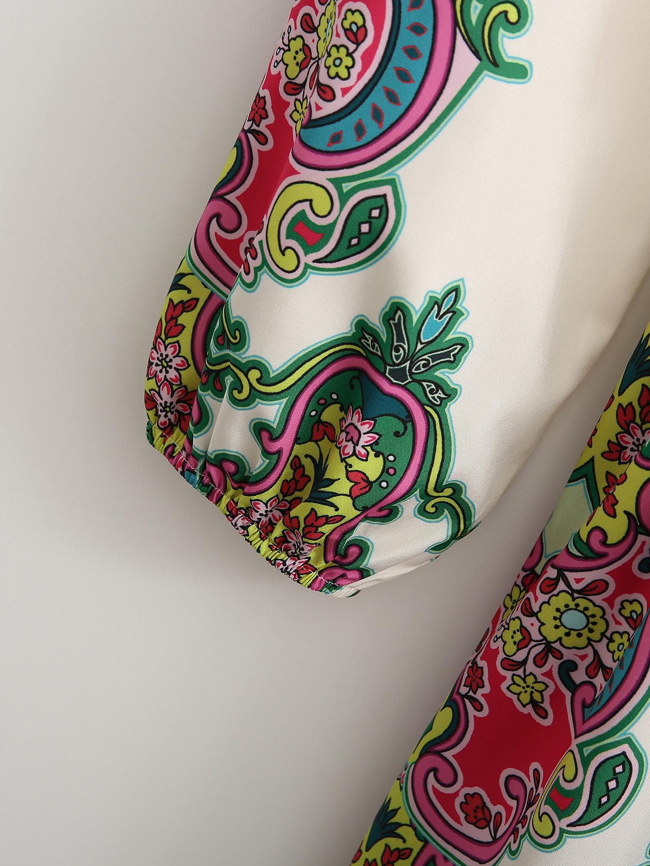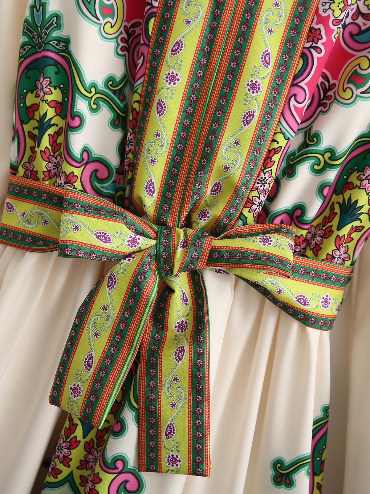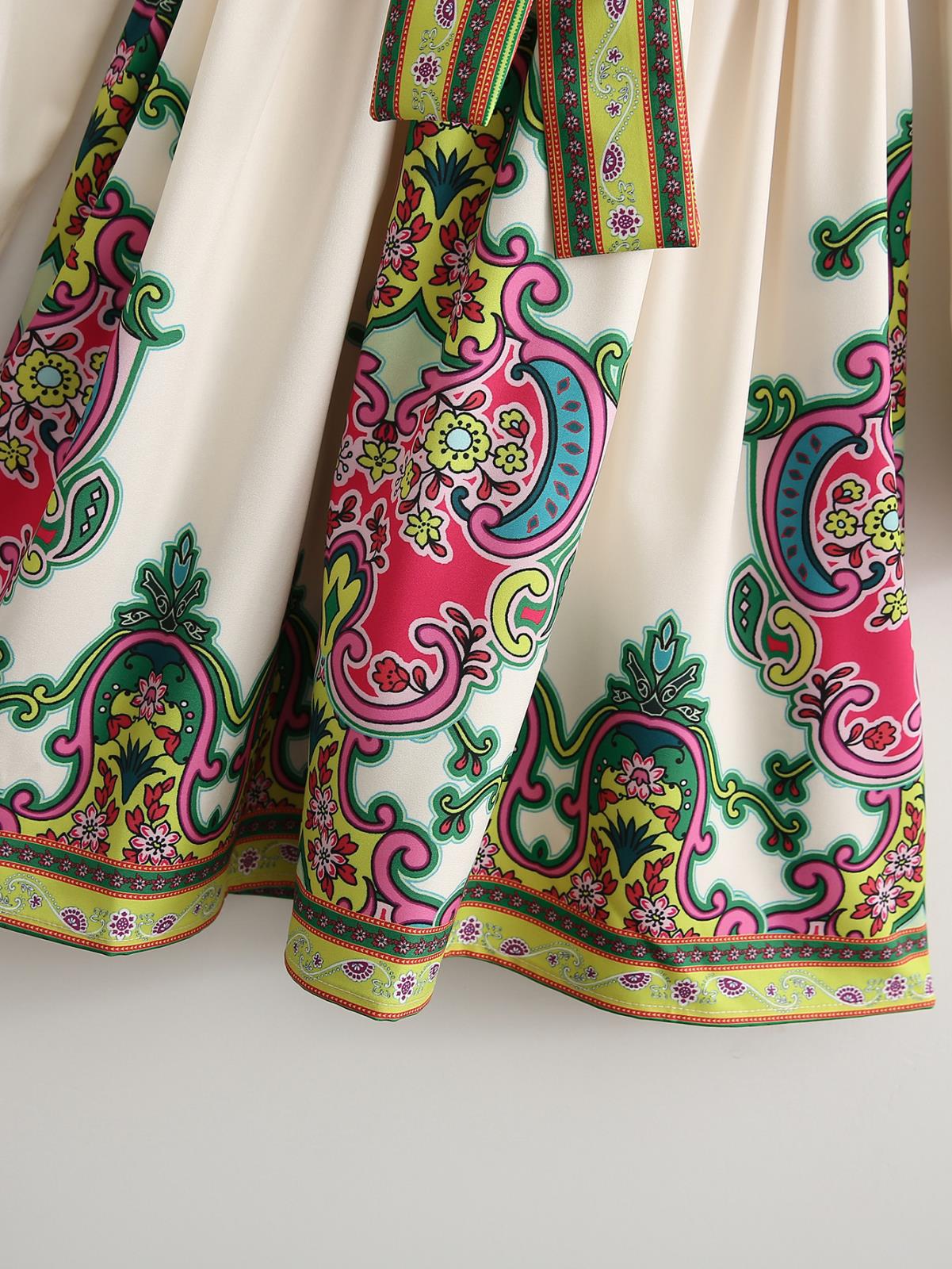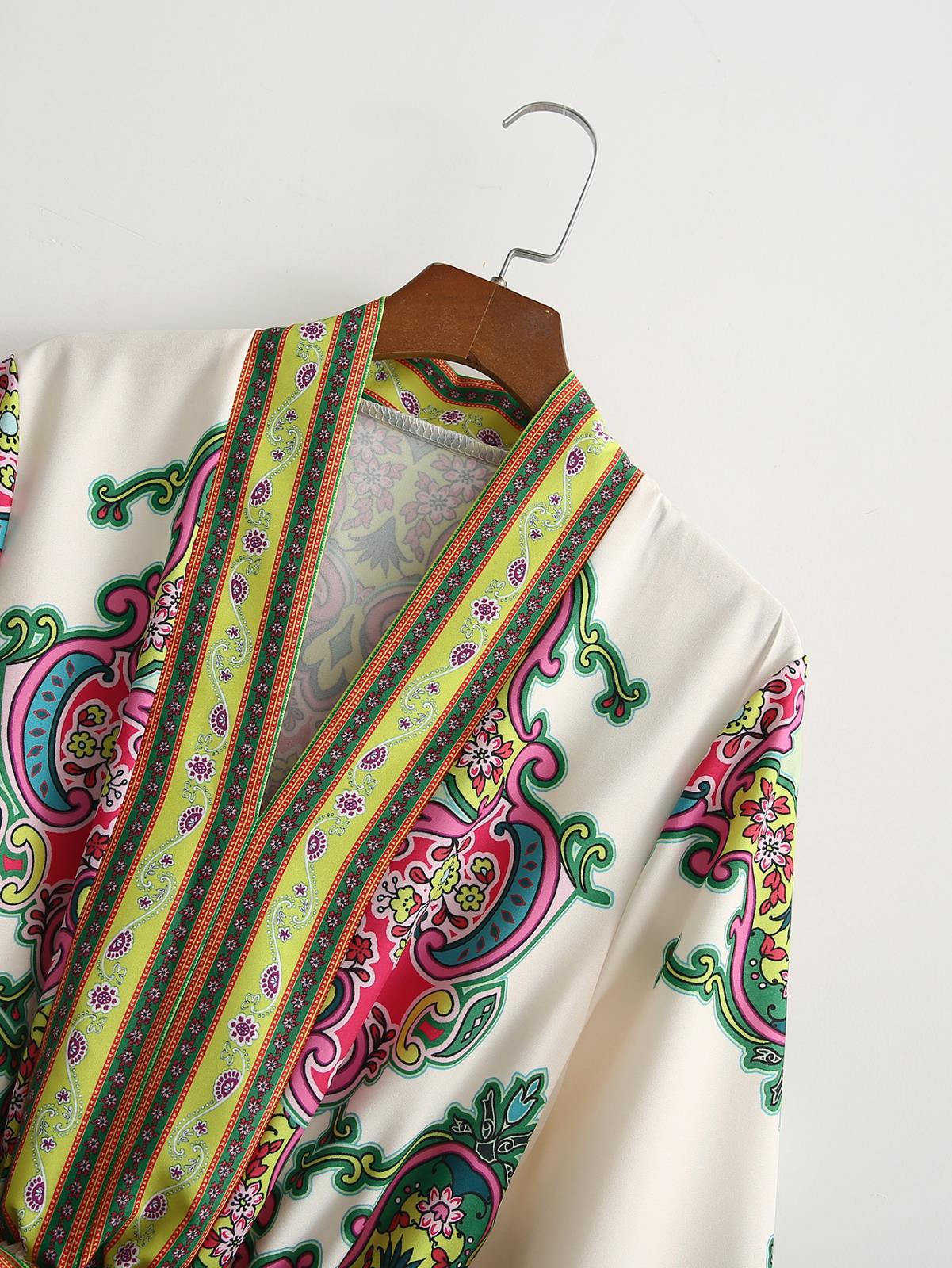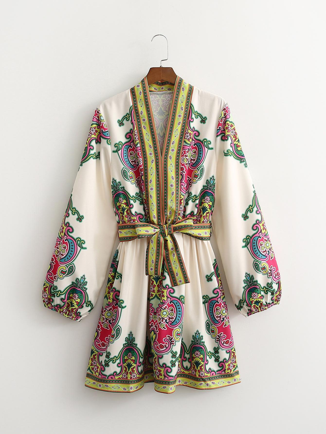 Vestido Floral de Manga Larga con Cuello en V para Mujer de Estilo Europeo y Americano Nuevo 2024