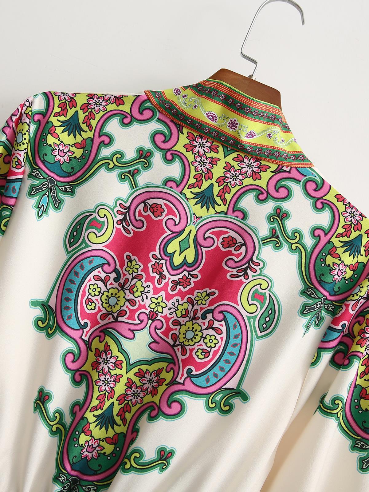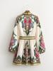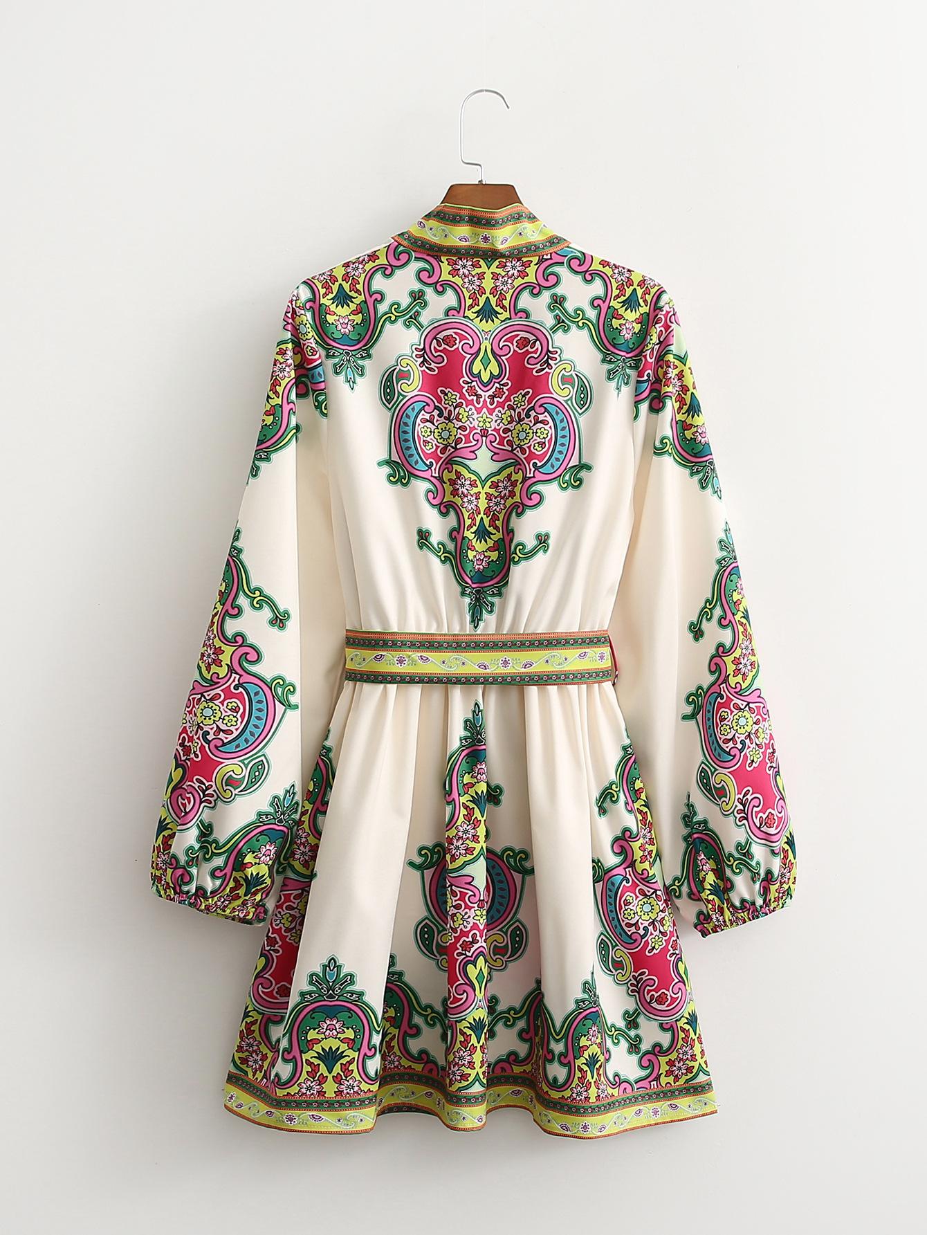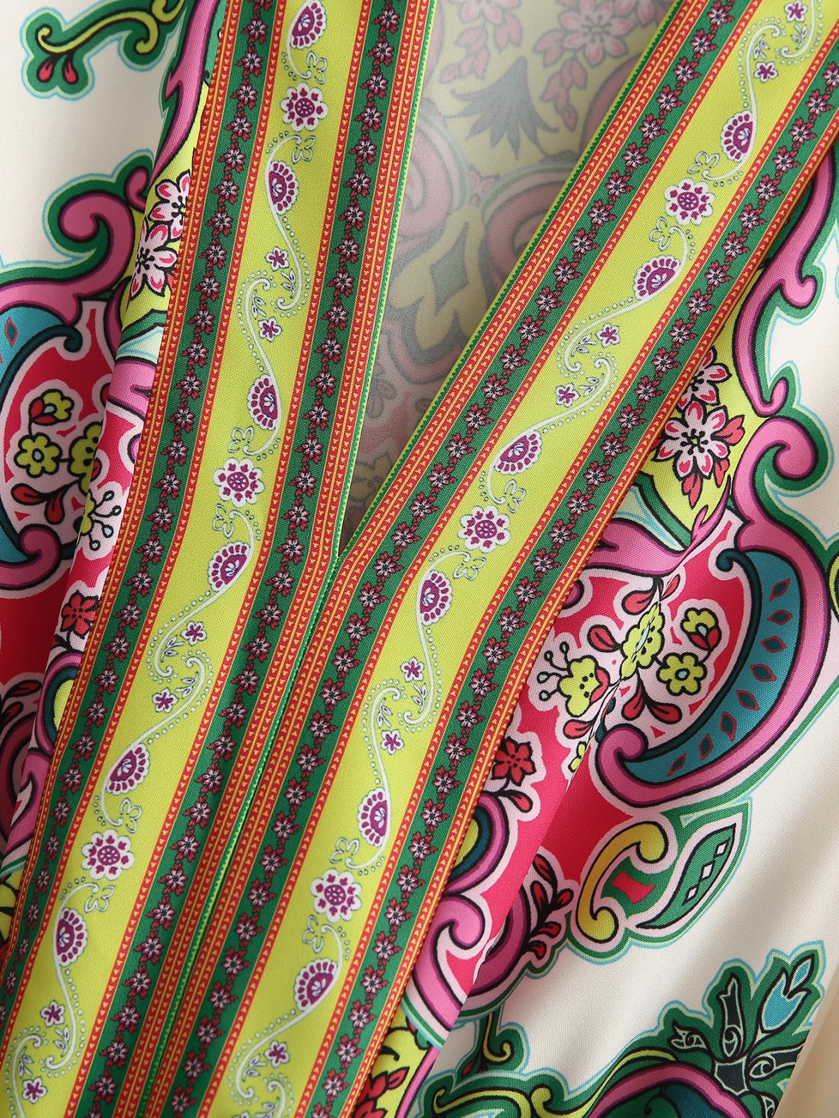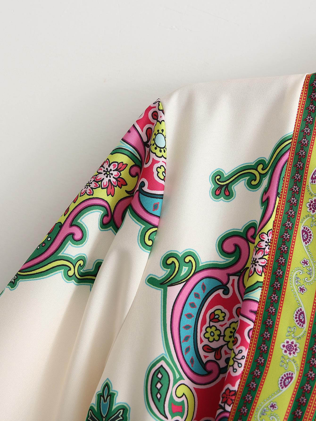 Vestido Floral de Manga Larga con Cuello en V para Mujer de Estilo Europeo y Americano Nuevo 2024