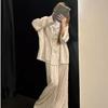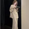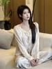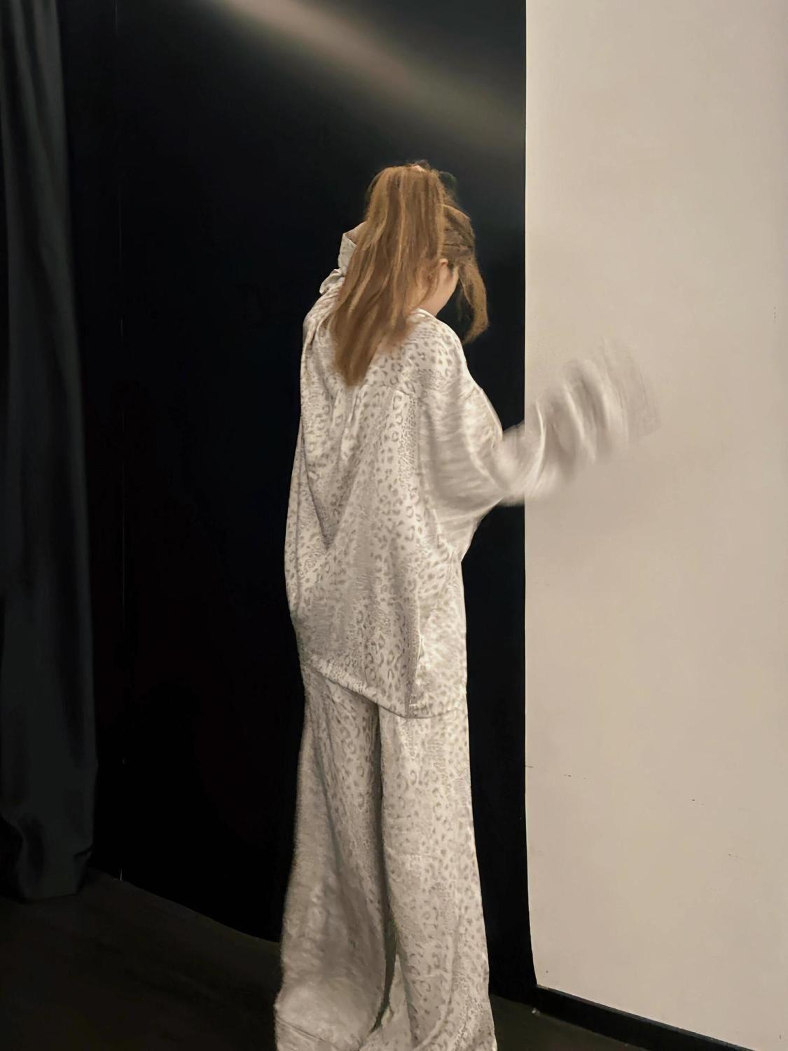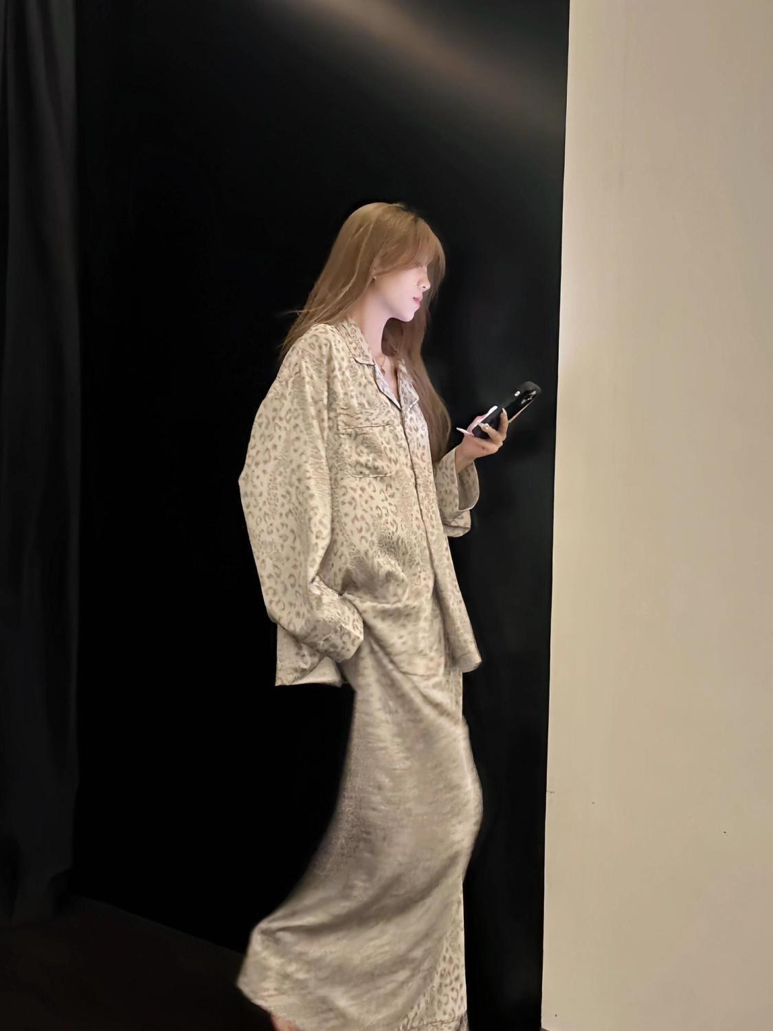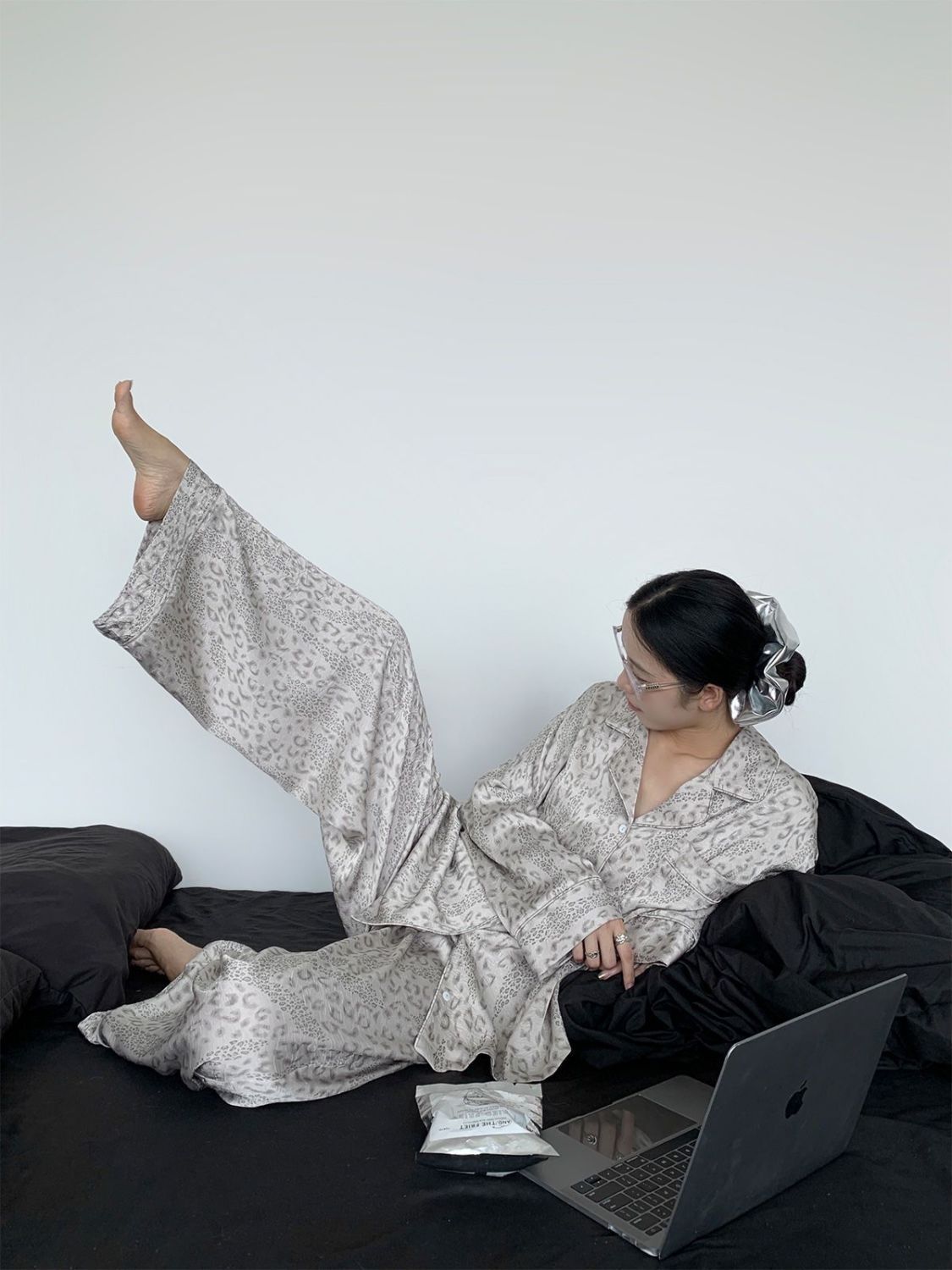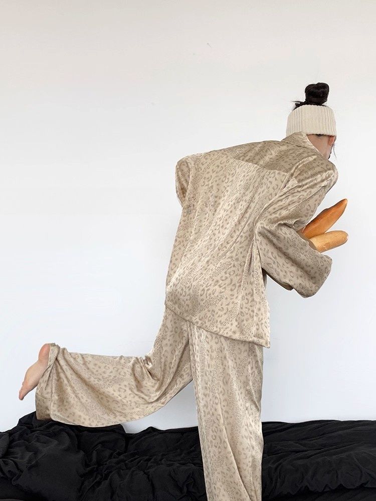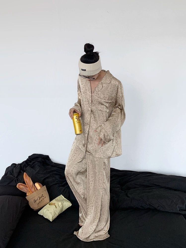 Pijama de Seda de Hielo de Alta Densidad para Otoño e Invierno con Estampado de Leopardo y Dulce Temperamento para Mujer, Conjunto que se Puede Usar Fuera de Casa