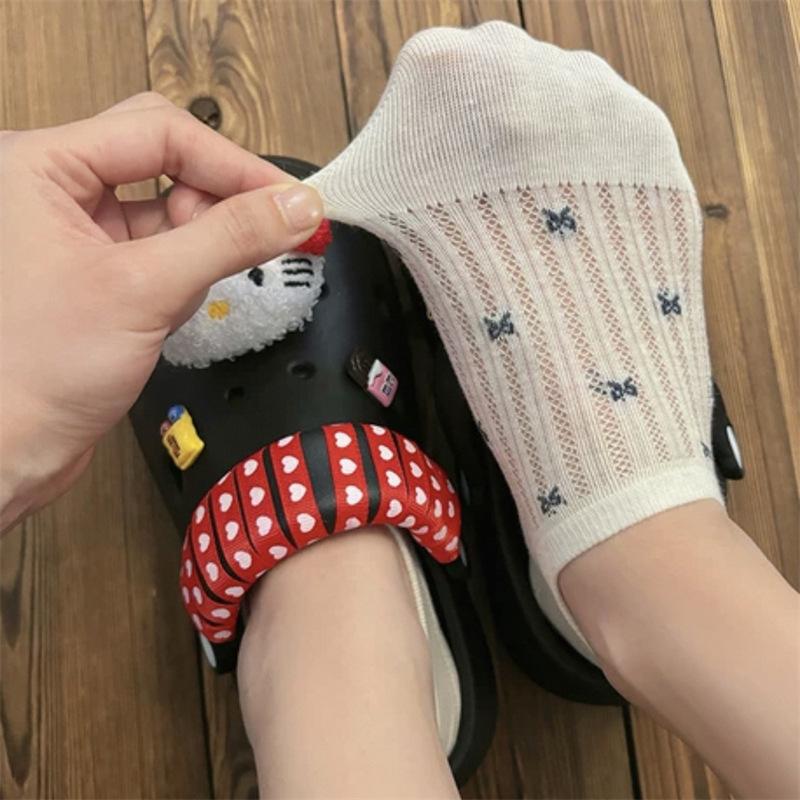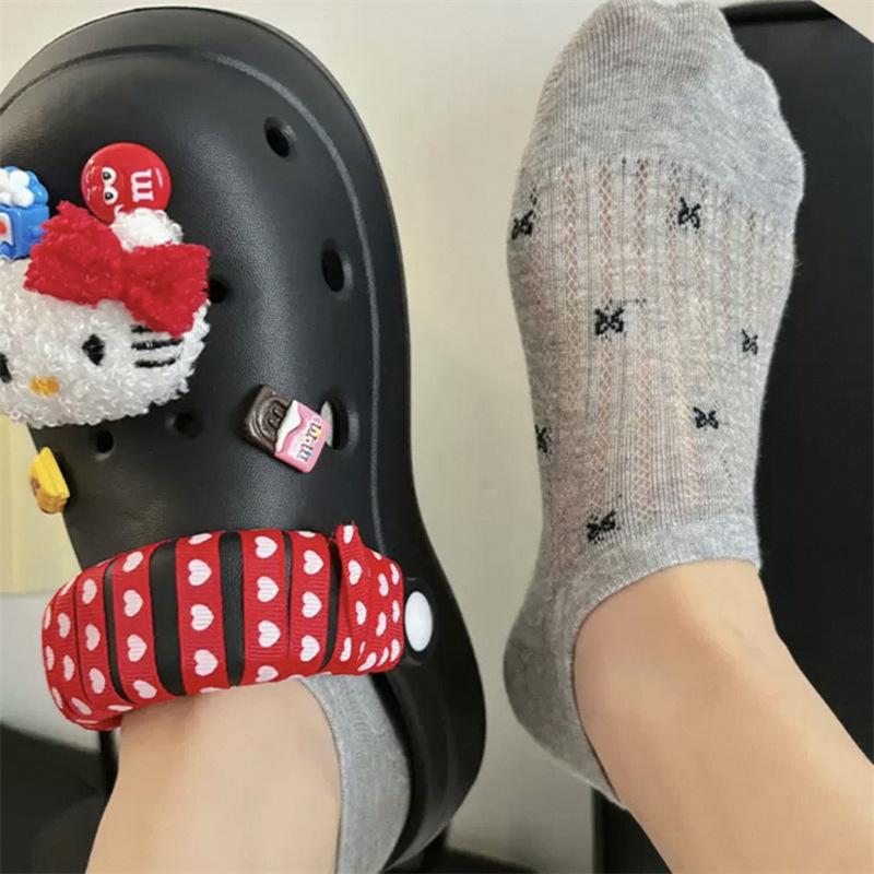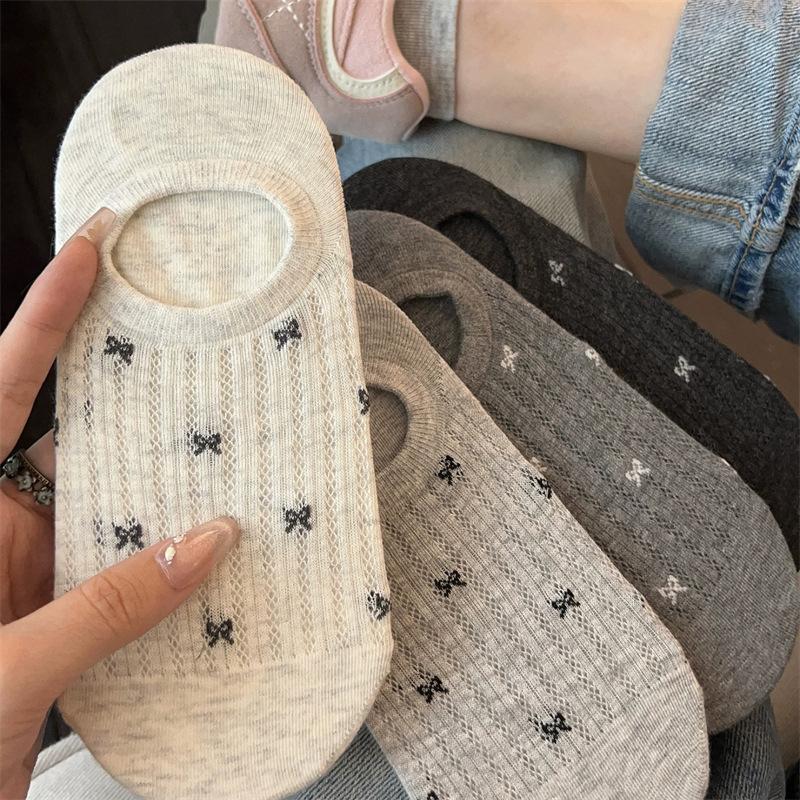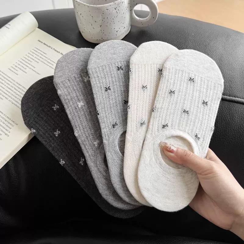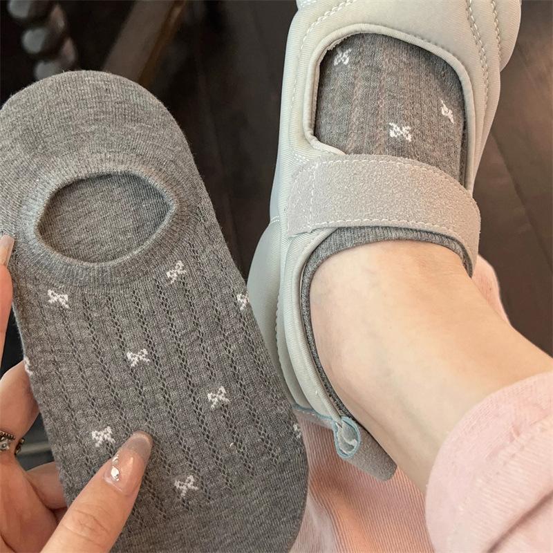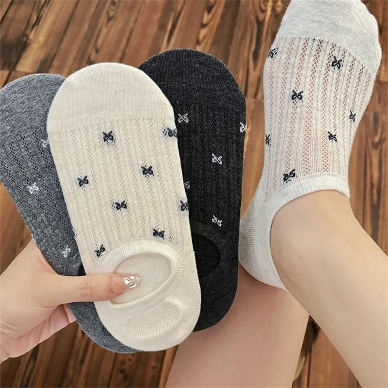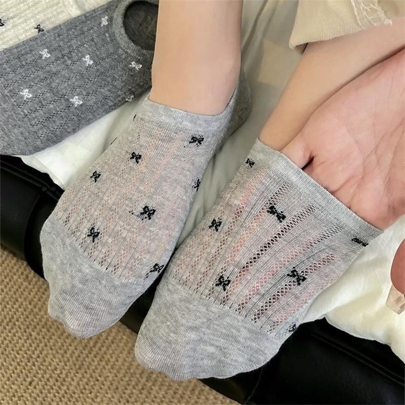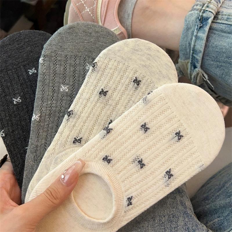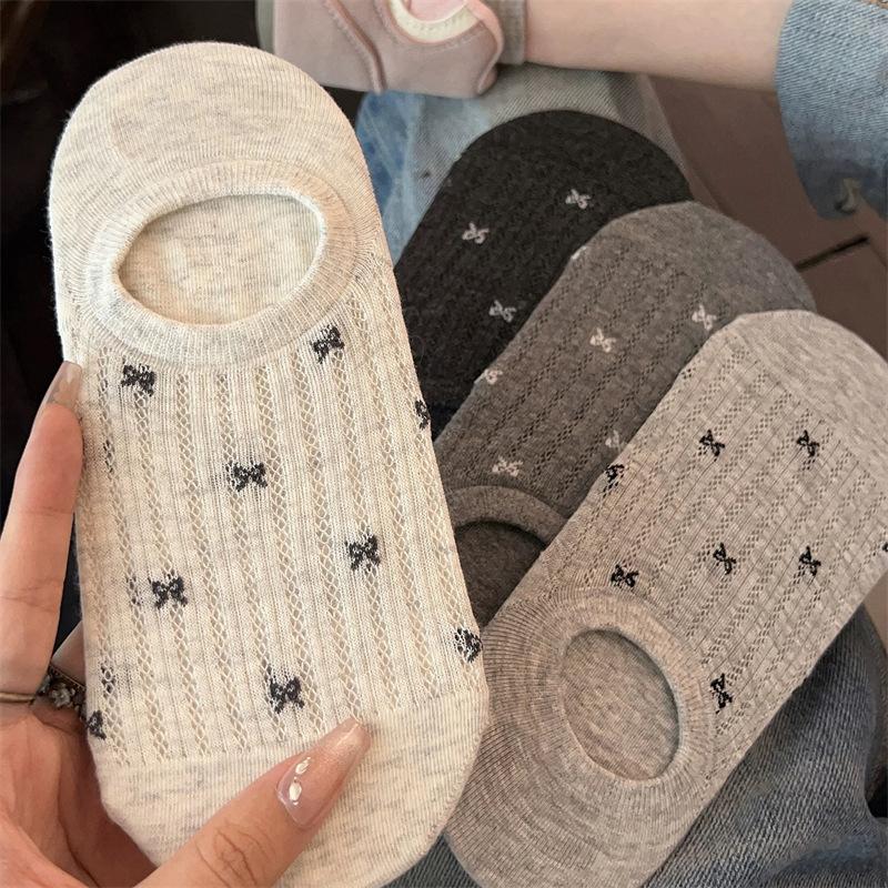 Calcetines de Malla con Lazo para Barco para Mujer Algodón Transpirable Verano Delgados Corte Bajo Poco Profundos Calcetines Cortos Calcetines de Talón Antideslizante para Mujer