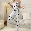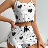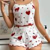 Verano nuevo Europeo y Americano 2024 diseño tejido de rayas con estampado de amor dulce short de tirantes pijama de deseo puro para mujer