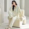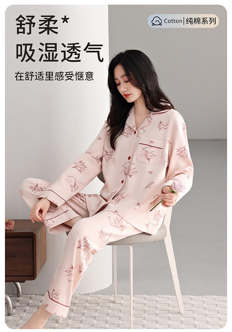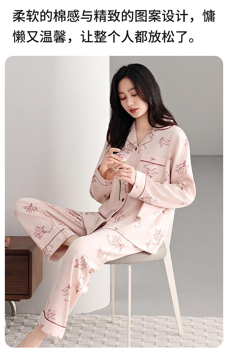 Pijamas de Mujer Estilo Primavera y Otoño 2025 Nuevo Estilo Algodón Puro Manga Larga Otoño Floral Cárdigan de Alta Gama Ropa de Casa de Algodón para Mujer