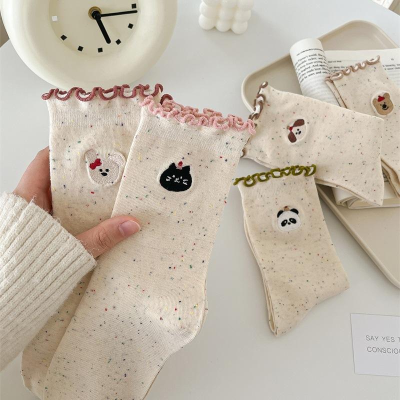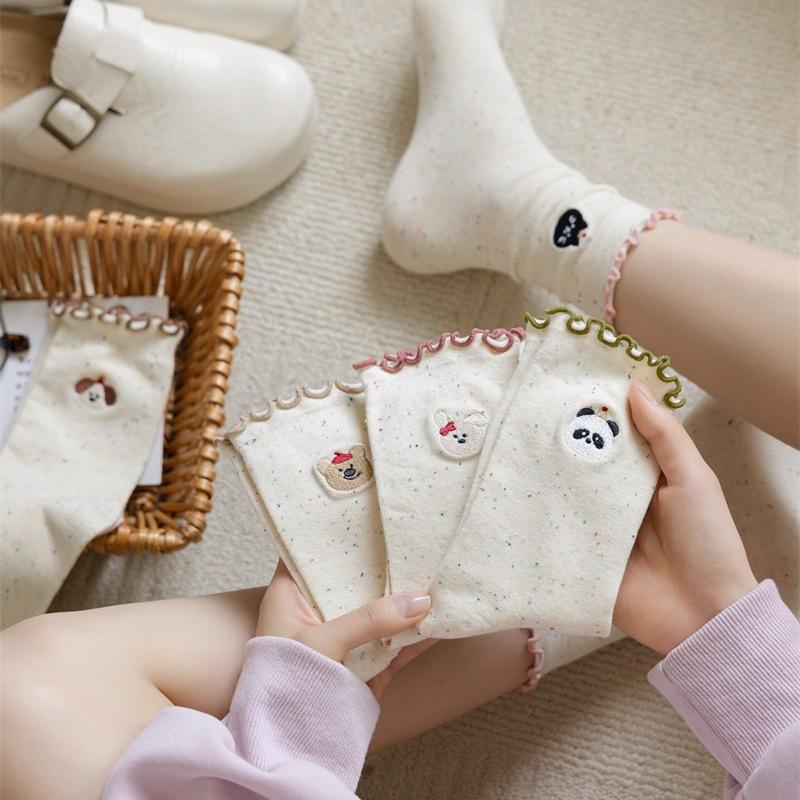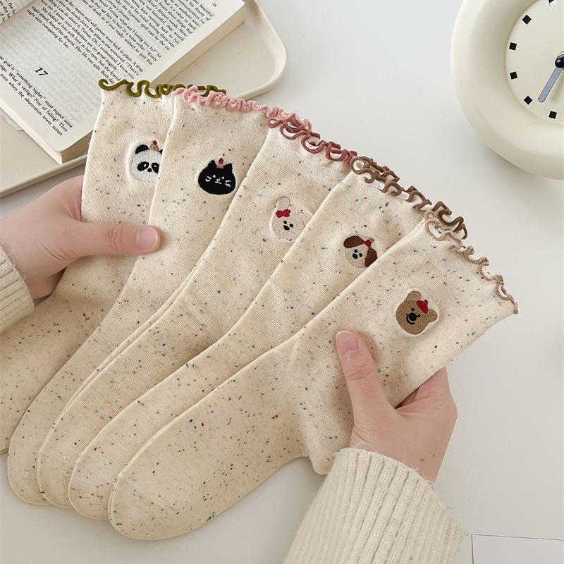 Compra Calcetines de Dibujos Animados con Orejas de Madera para Niños Calcetines de Tubo Medio Apilados Hilo de Punto Lindo Animal Bordado Primavera Otoño e Invierno Calcetines de Estudiante al por mayor en Joom.pro