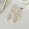 Calcetines de Dibujos Animados con Orejas de Madera para Niños Calcetines de Tubo Medio Apilados Hilo de Punto Lindo Animal Bordado Primavera Otoño e Invierno Calcetines de Estudiante