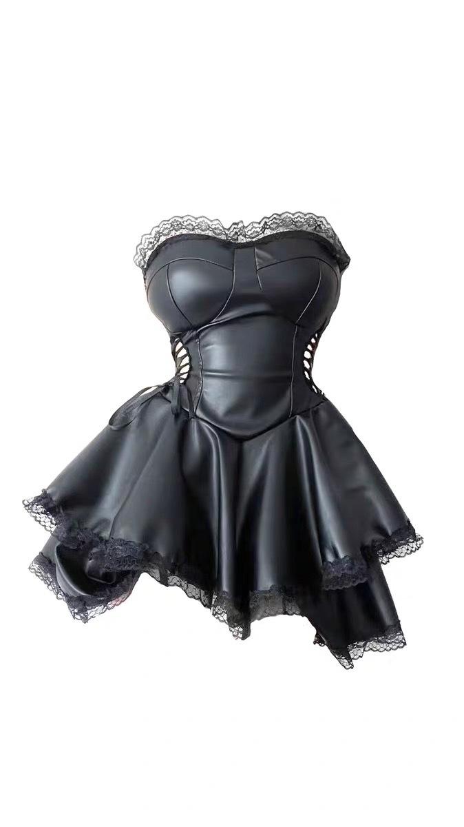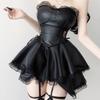 Xi Yun Lencería Vestido Bodycon Sexy para Mujer con Recorte Lateral en la Cintura, Encaje Patchwork sin Tirantes