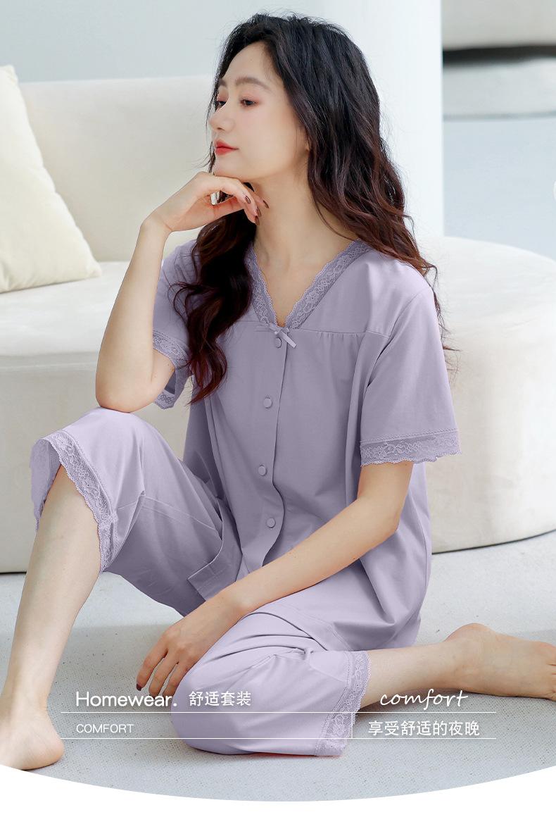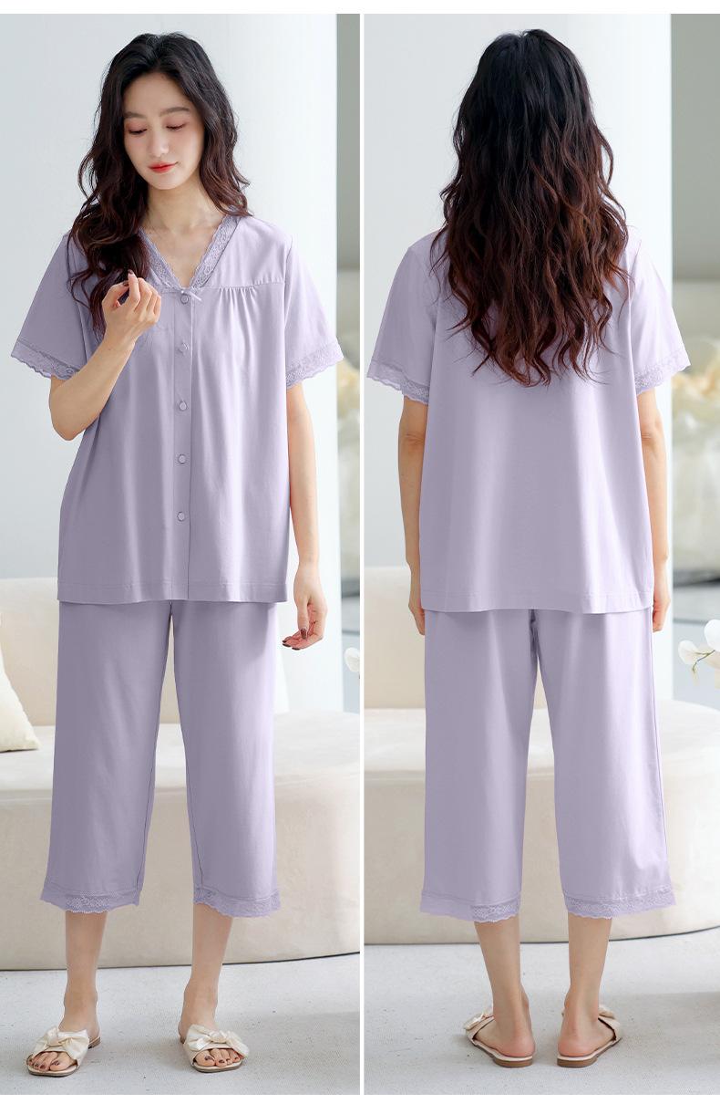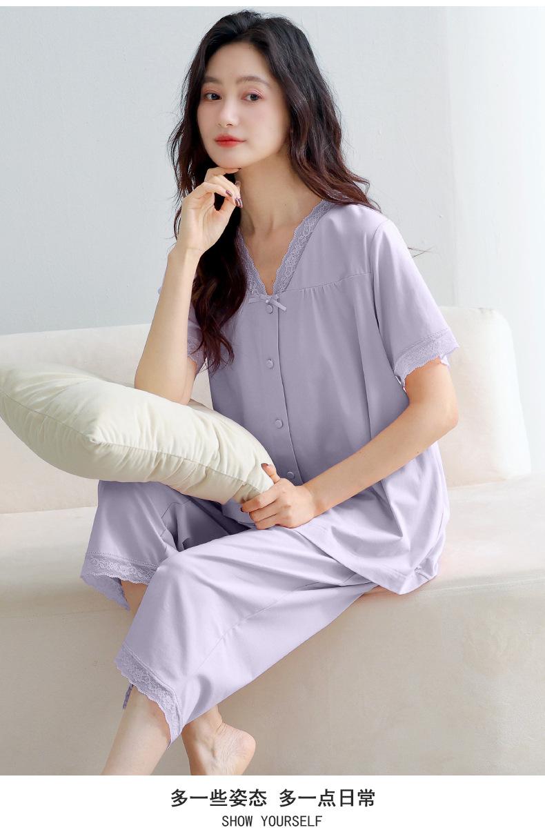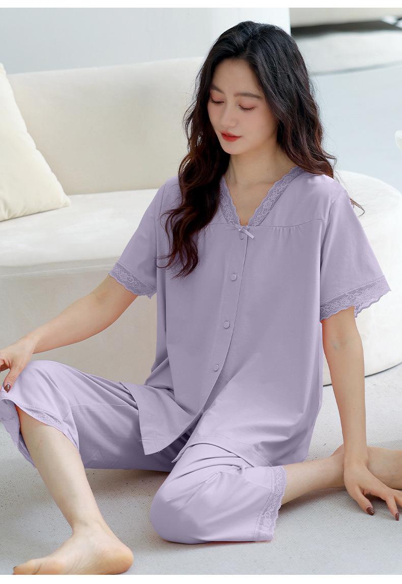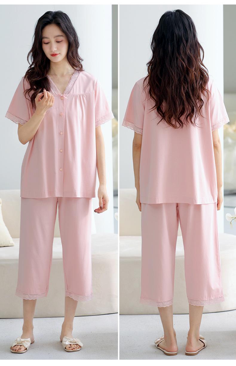 Pijamas para Mujer Verano Manga Corta Pantalones Recortados Algodón Puro Delgadas Verano Nuevo Manga Media Señoras Conjunto Ropa de Casa para Madre