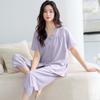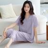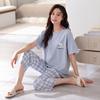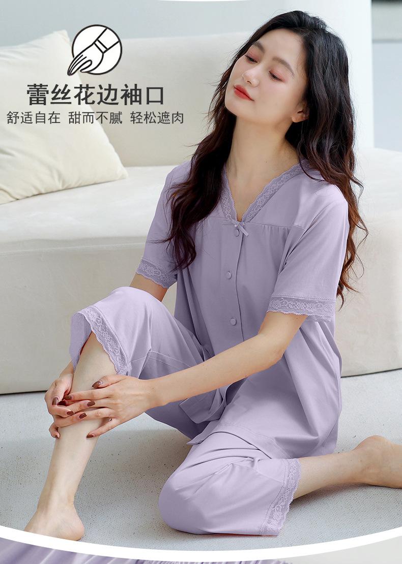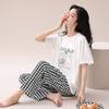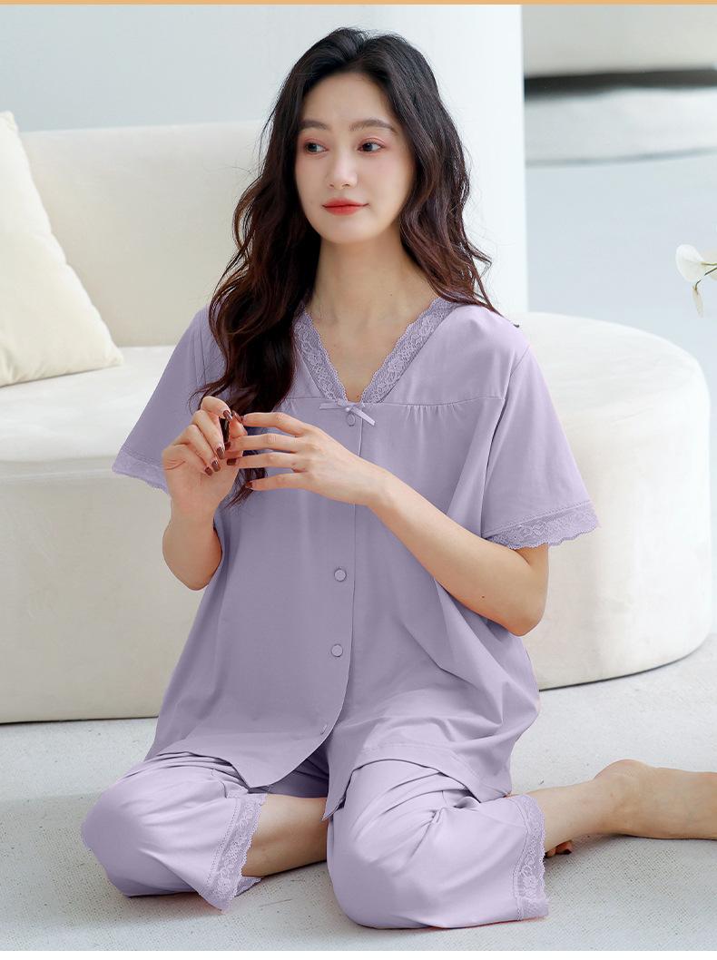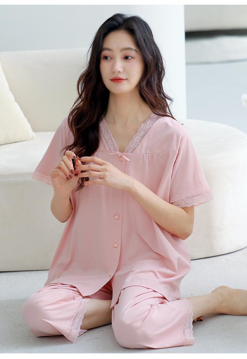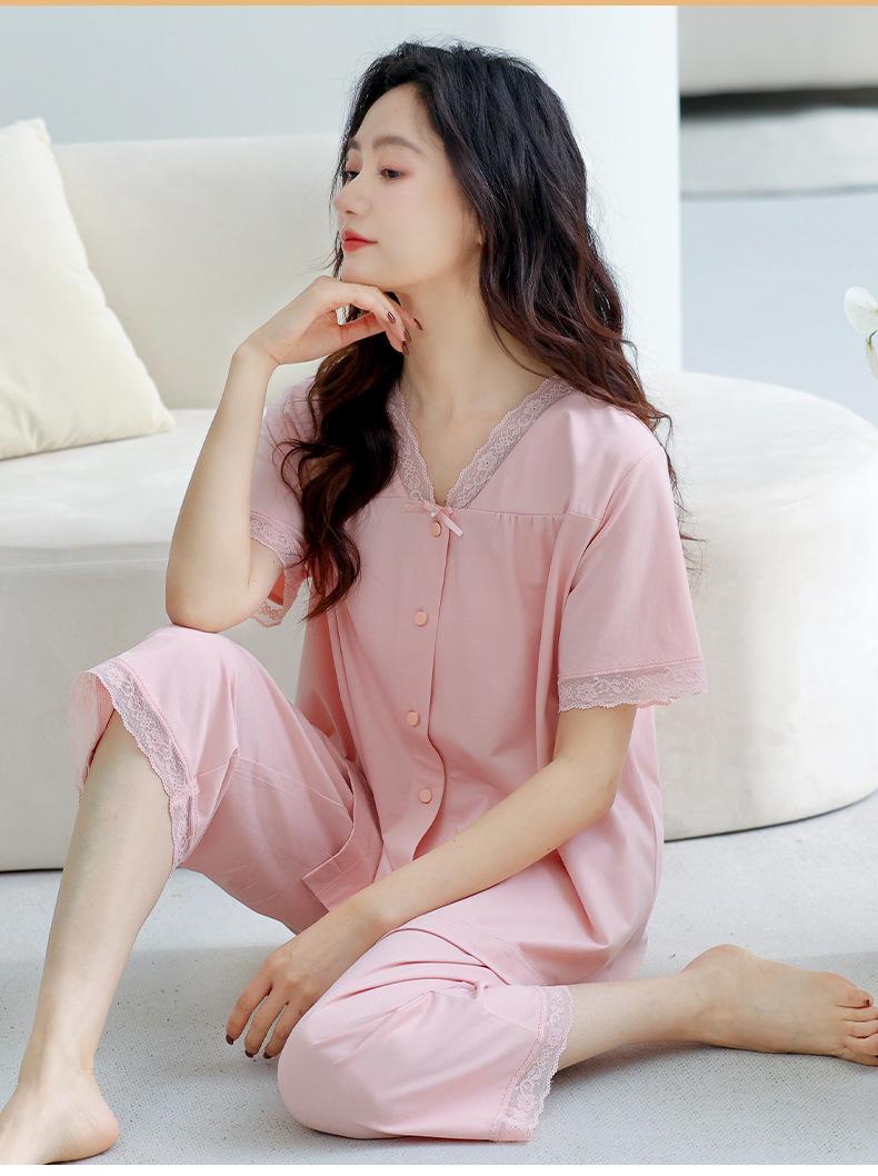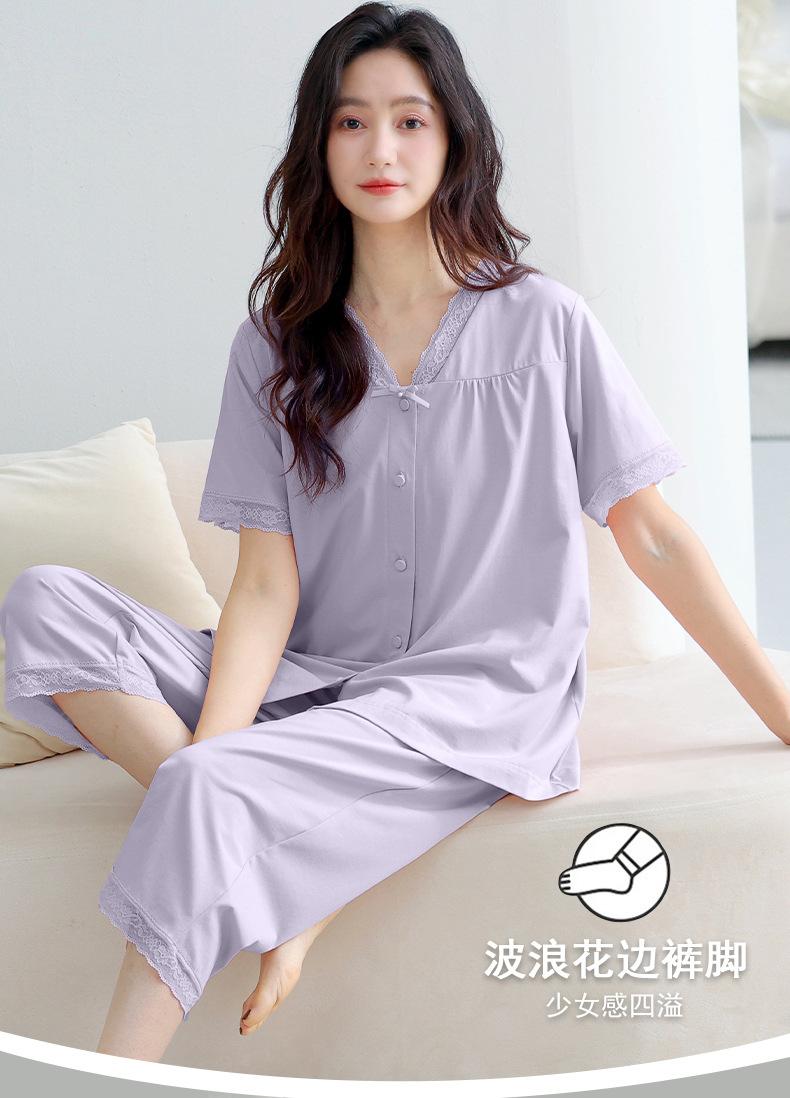 Pijamas para Mujer Verano Manga Corta Pantalones Recortados Algodón Puro Delgadas Verano Nuevo Manga Media Señoras Conjunto Ropa de Casa para Madre