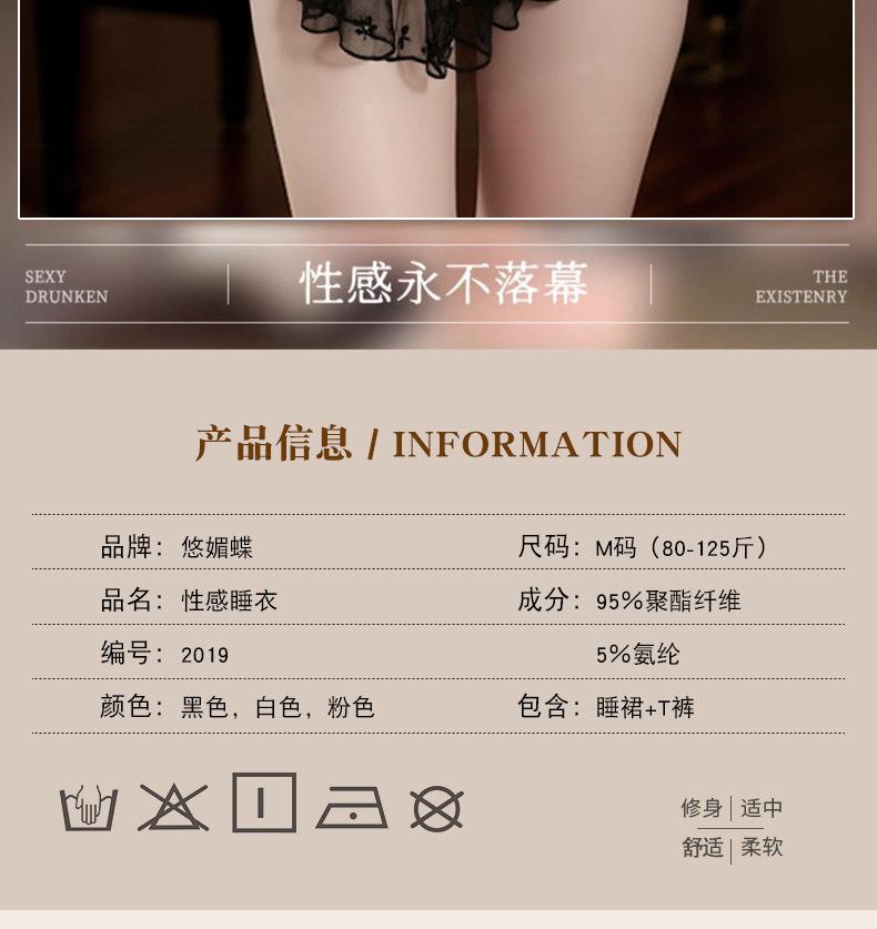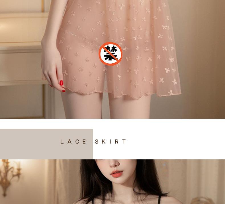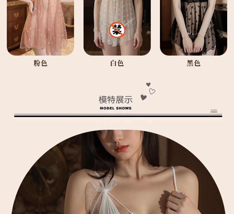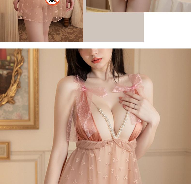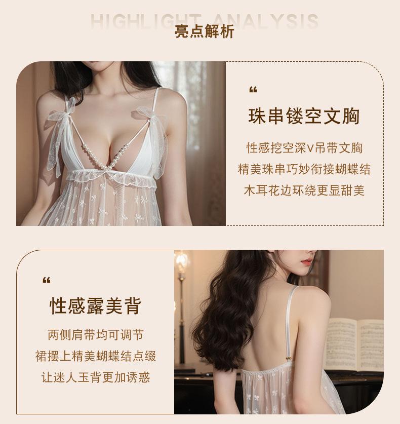 Pijama Camisola Sexy Nueva para Mujer Encaje Lazo Volante Vestido Puro Deseo con Perla Lencería Transparente