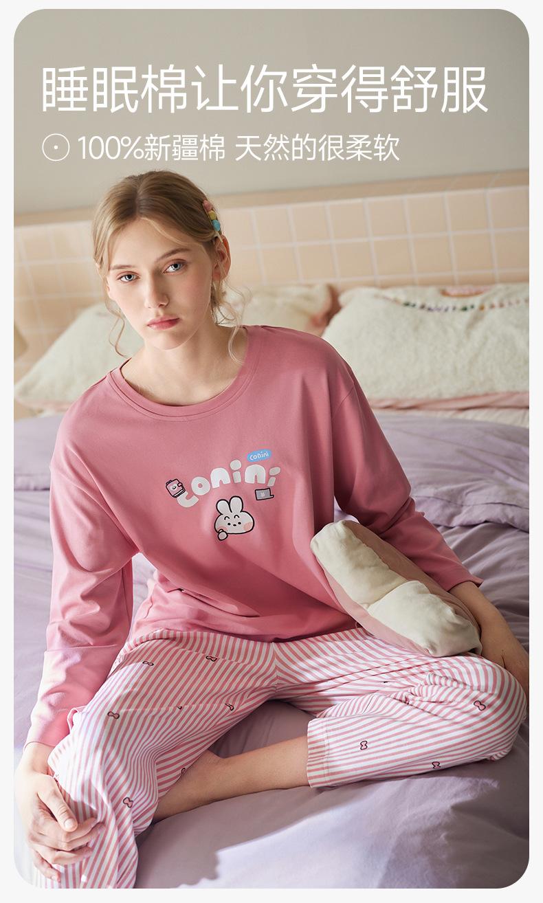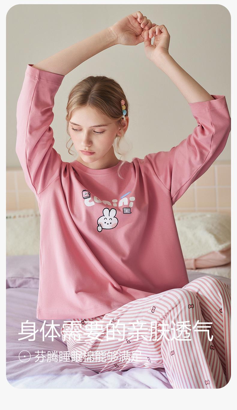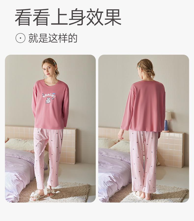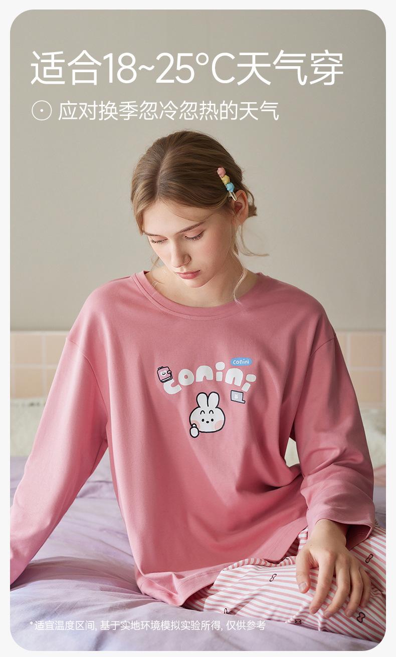 Fenteng [Algodón para Dormir Antiestático] Pijama de Algodón Puro para Mujer Otoño/Primavera Manga Larga Lindo Casual Ropa de Casa para Mujer