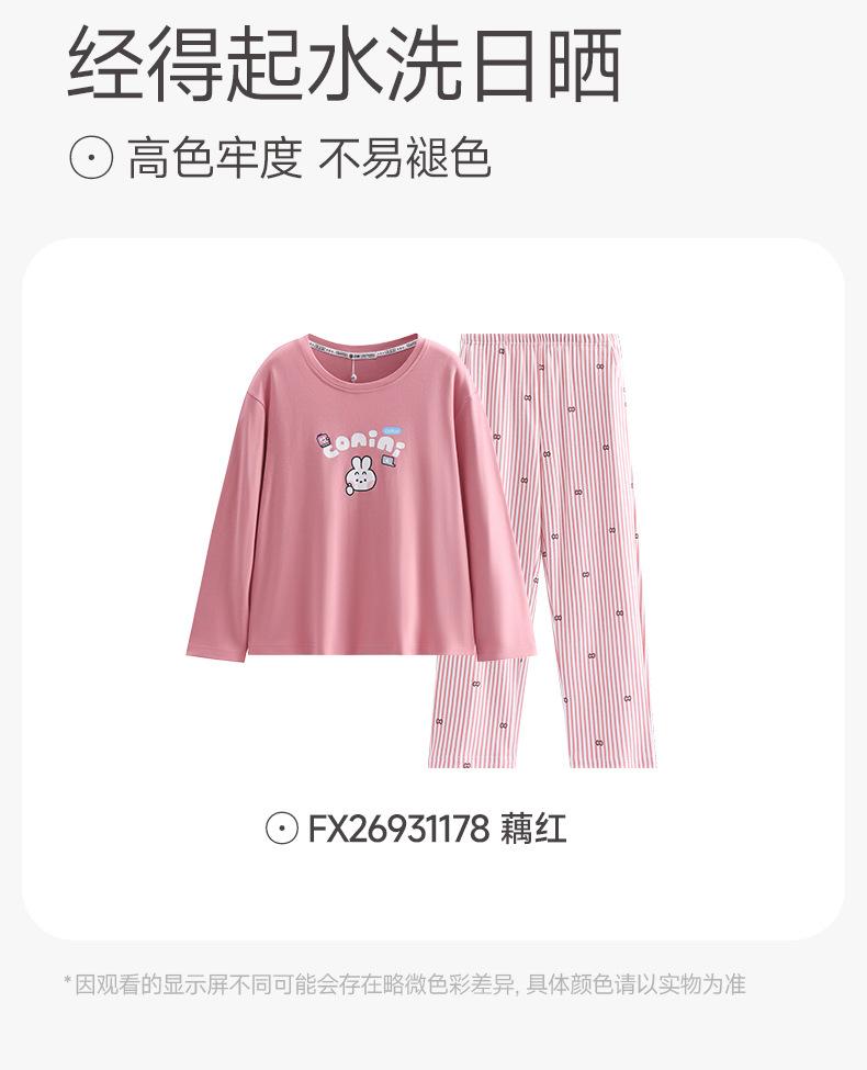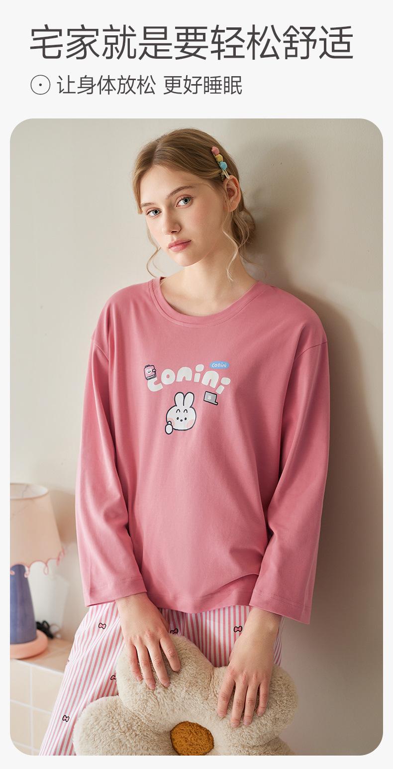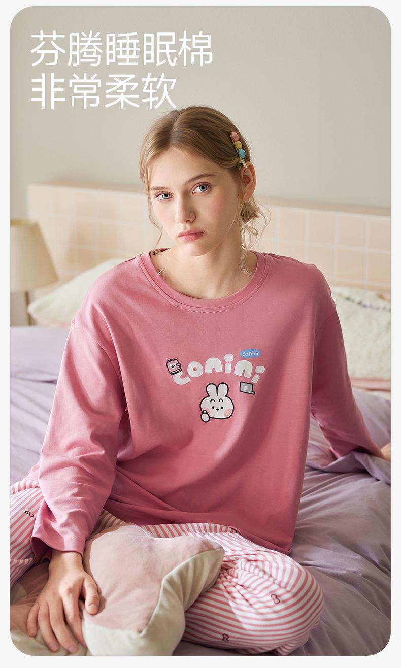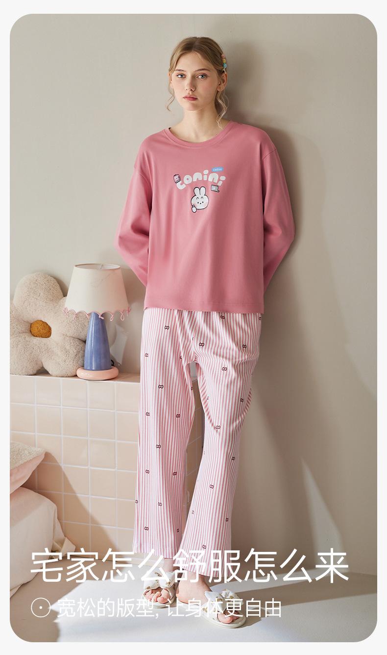 Fenteng [Algodón para Dormir Antiestático] Pijama de Algodón Puro para Mujer Otoño/Primavera Manga Larga Lindo Casual Ropa de Casa para Mujer