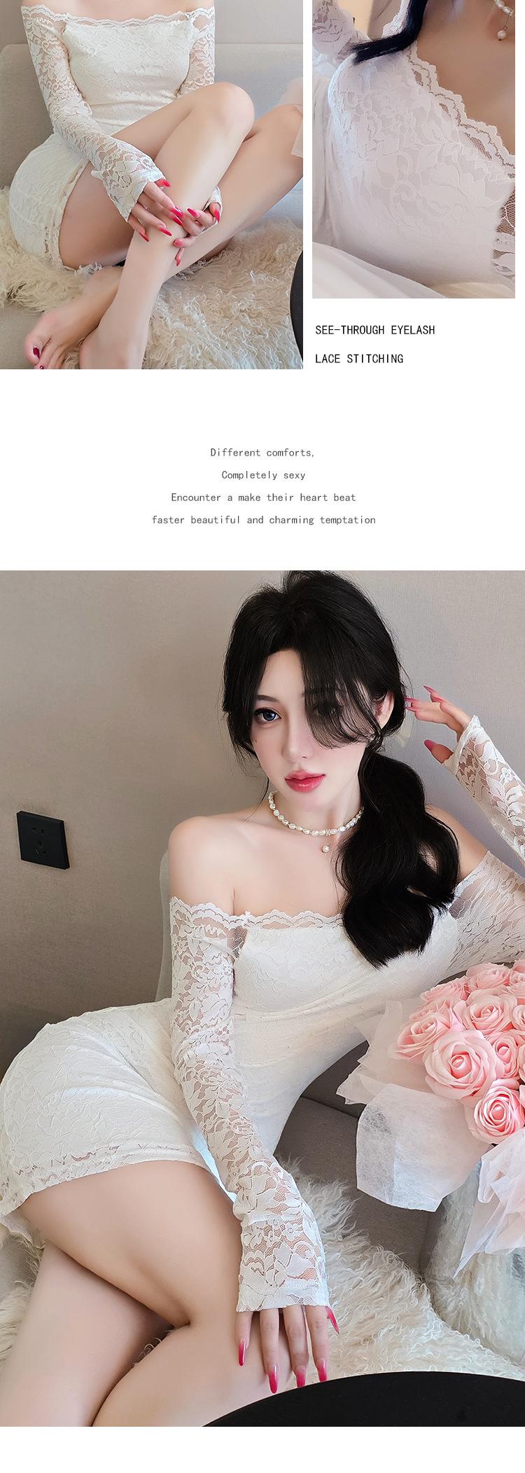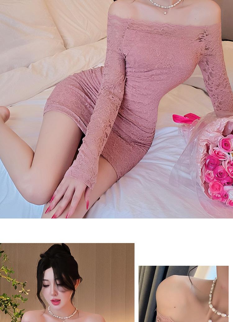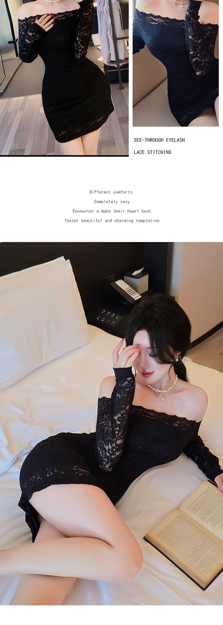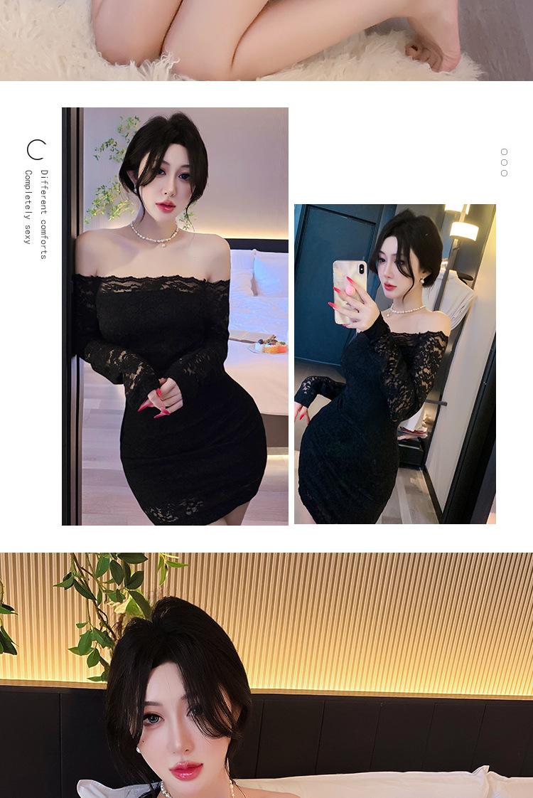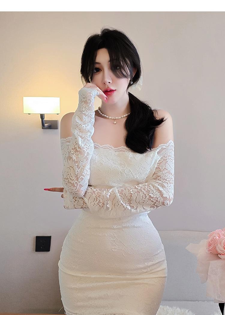 Lencería de Noche Larga Estilo Deseo Puro Encaje Temperamento Vestido de Un Hombro Sexy Bodycon Vestido Ajustado a la Cadera 1562