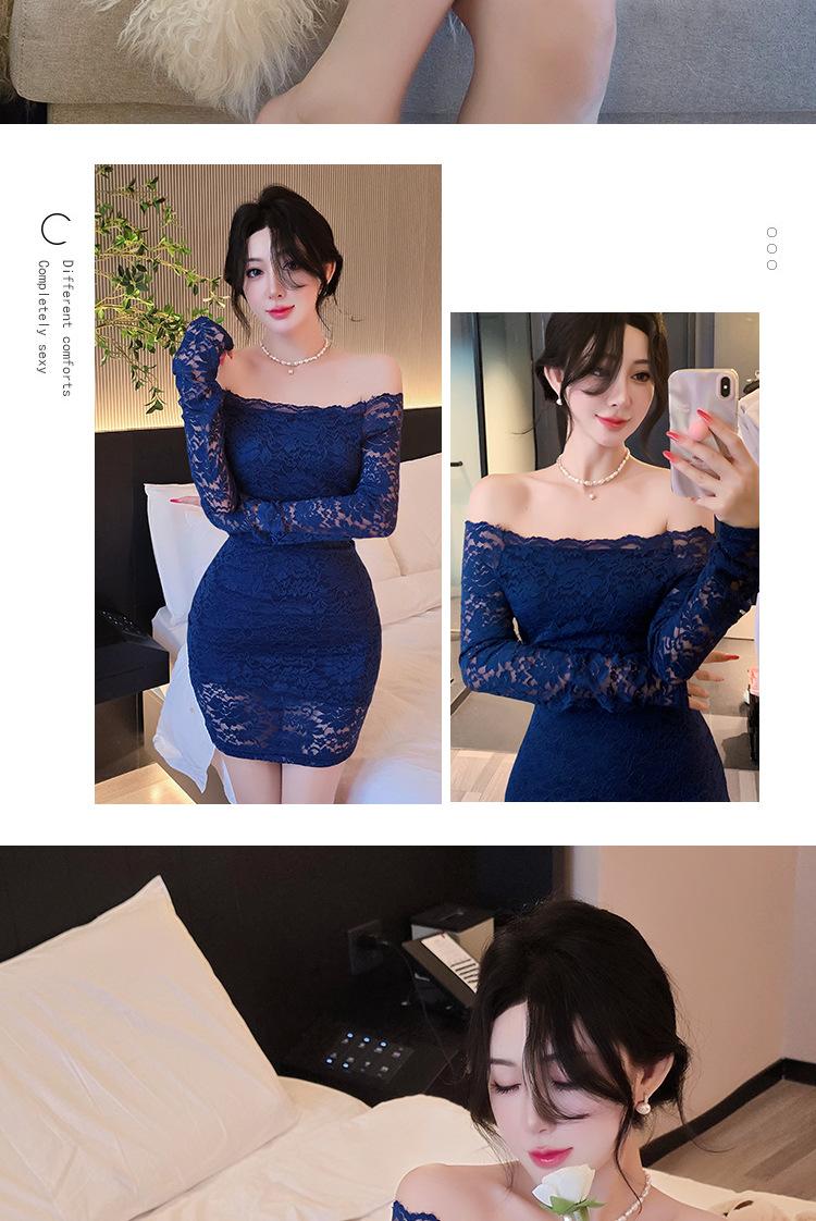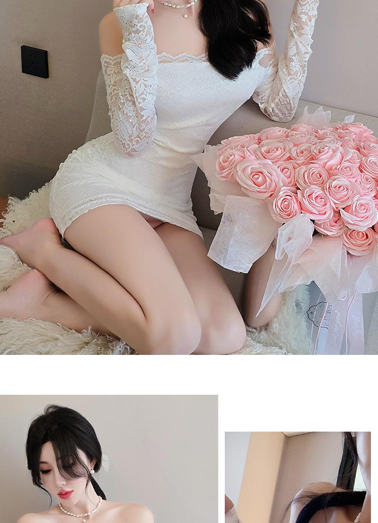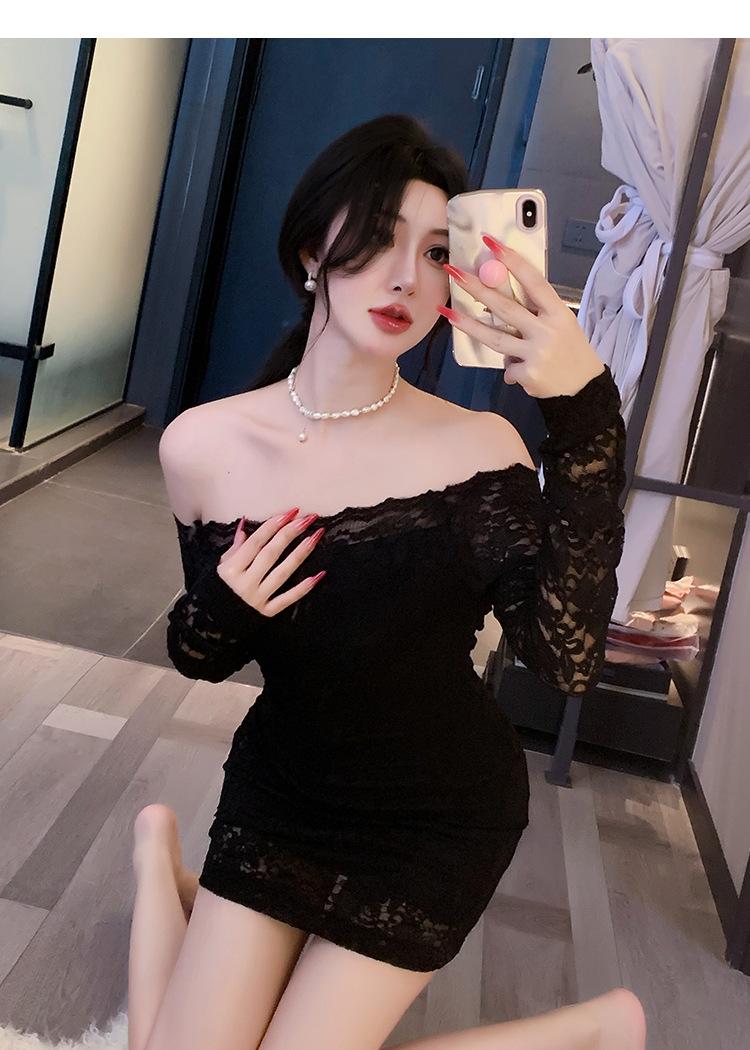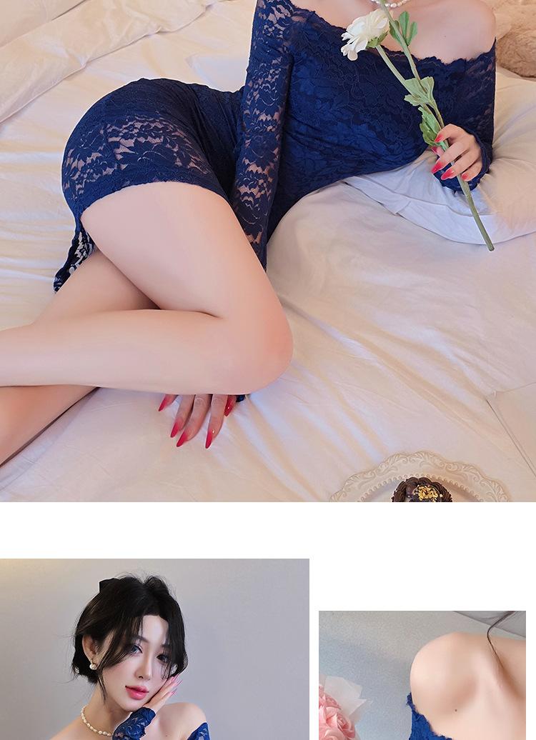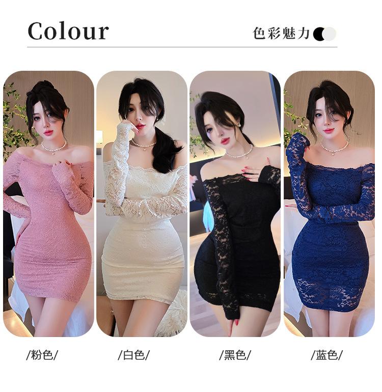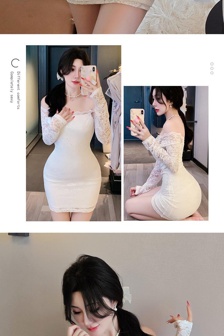 Lencería de Noche Larga Estilo Deseo Puro Encaje Temperamento Vestido de Un Hombro Sexy Bodycon Vestido Ajustado a la Cadera 1562